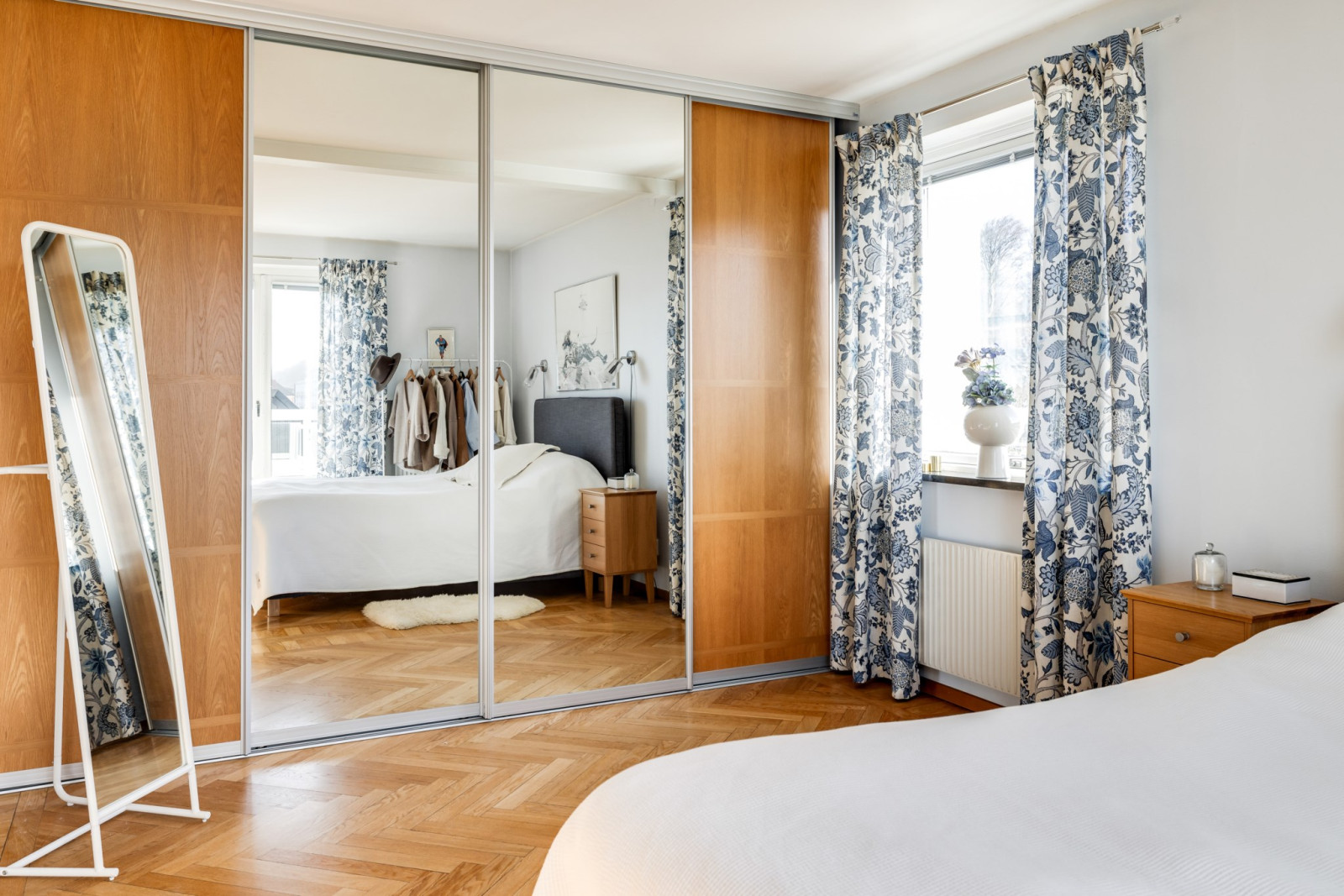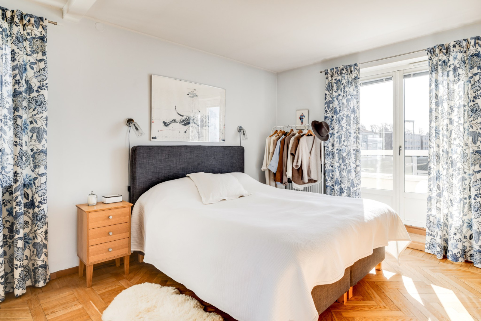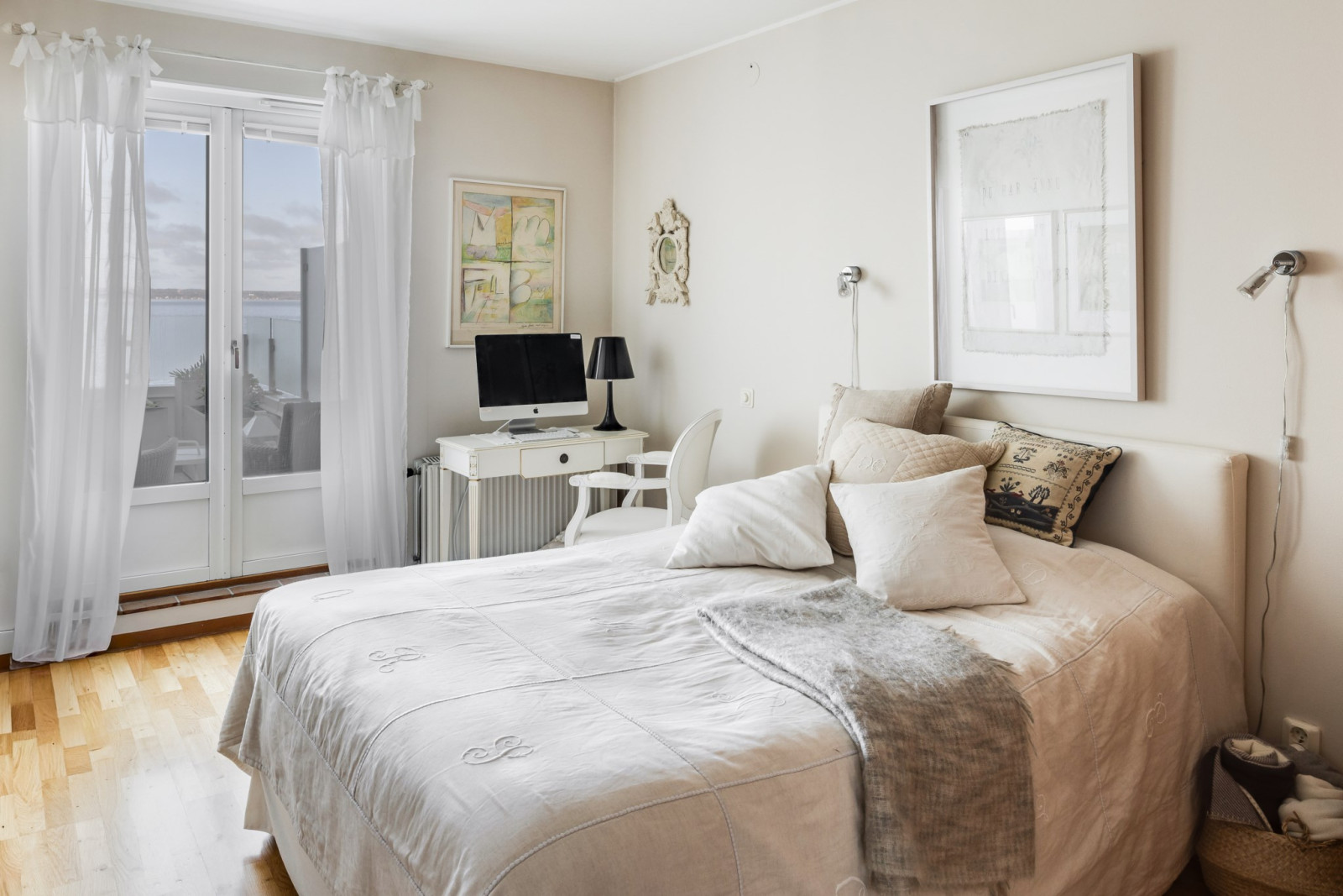 Vakna upp till magisk utsikt i detta sovrum med utgång till balkong i nordvästläge. Ekparkettgolv och garderober.
