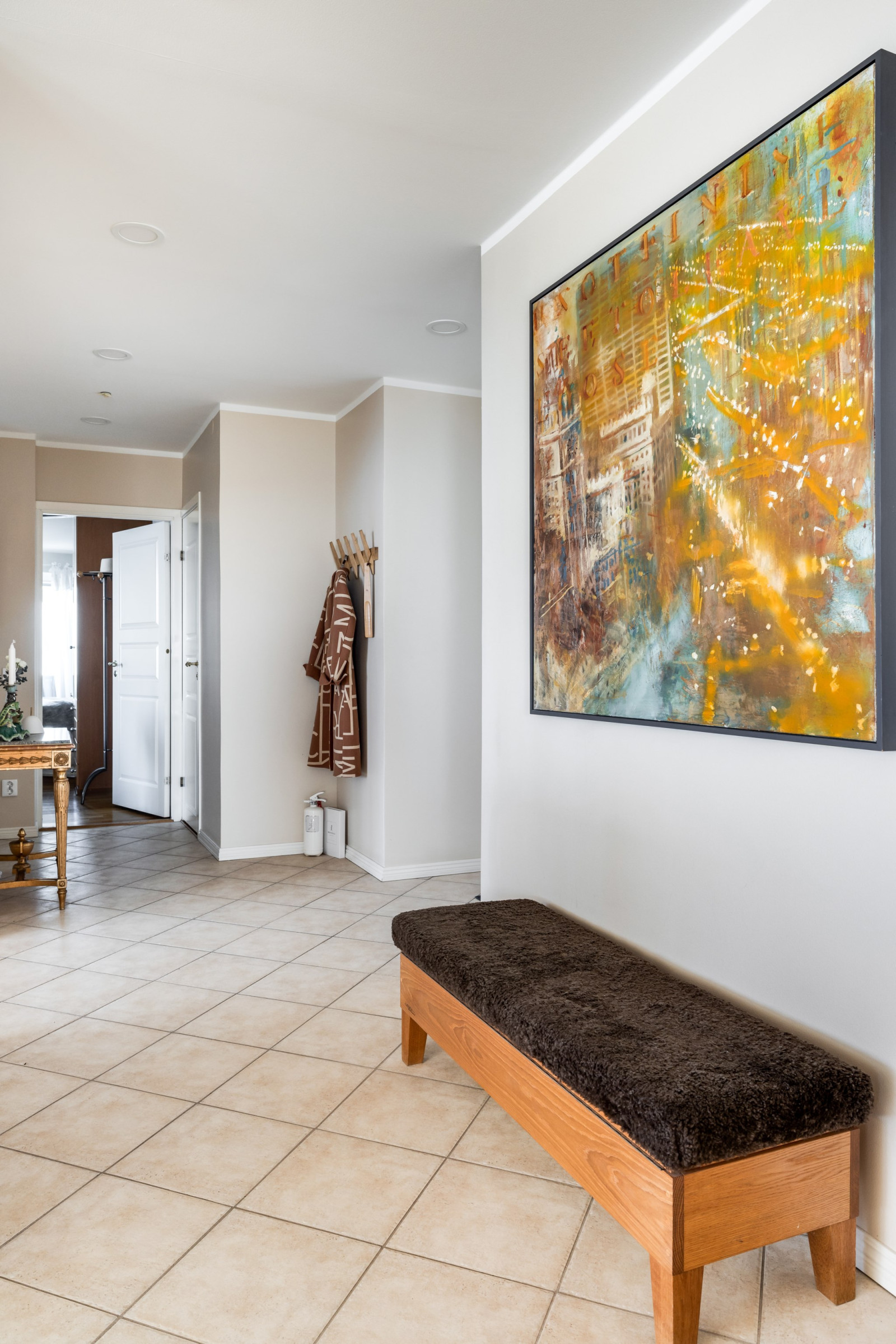 Sundsutsikt redan i hallen! Klinkergolv och garderob, samt inre hall med klädkammare.