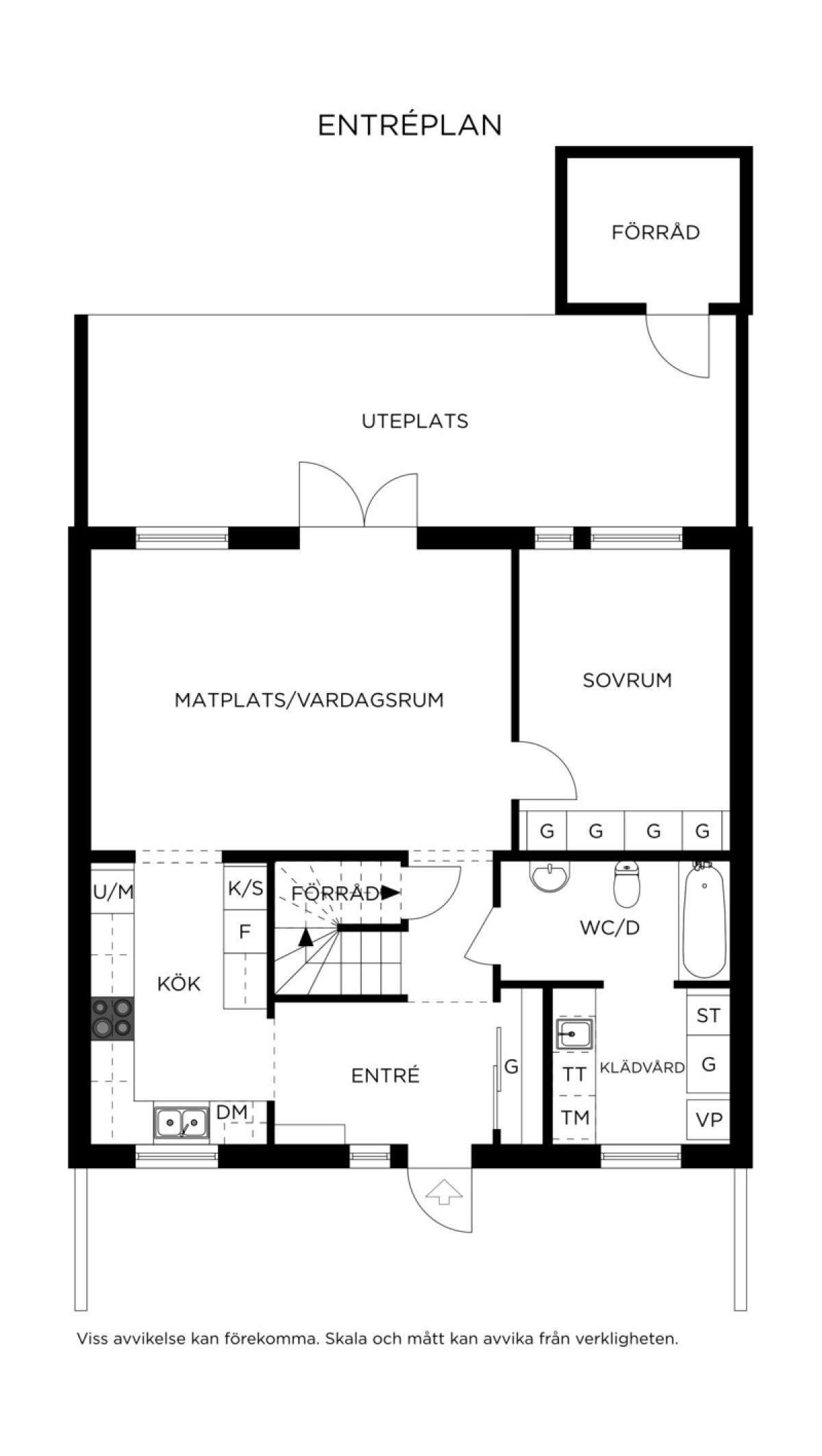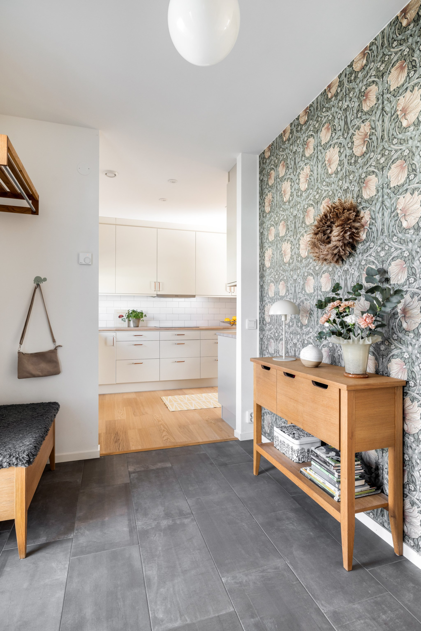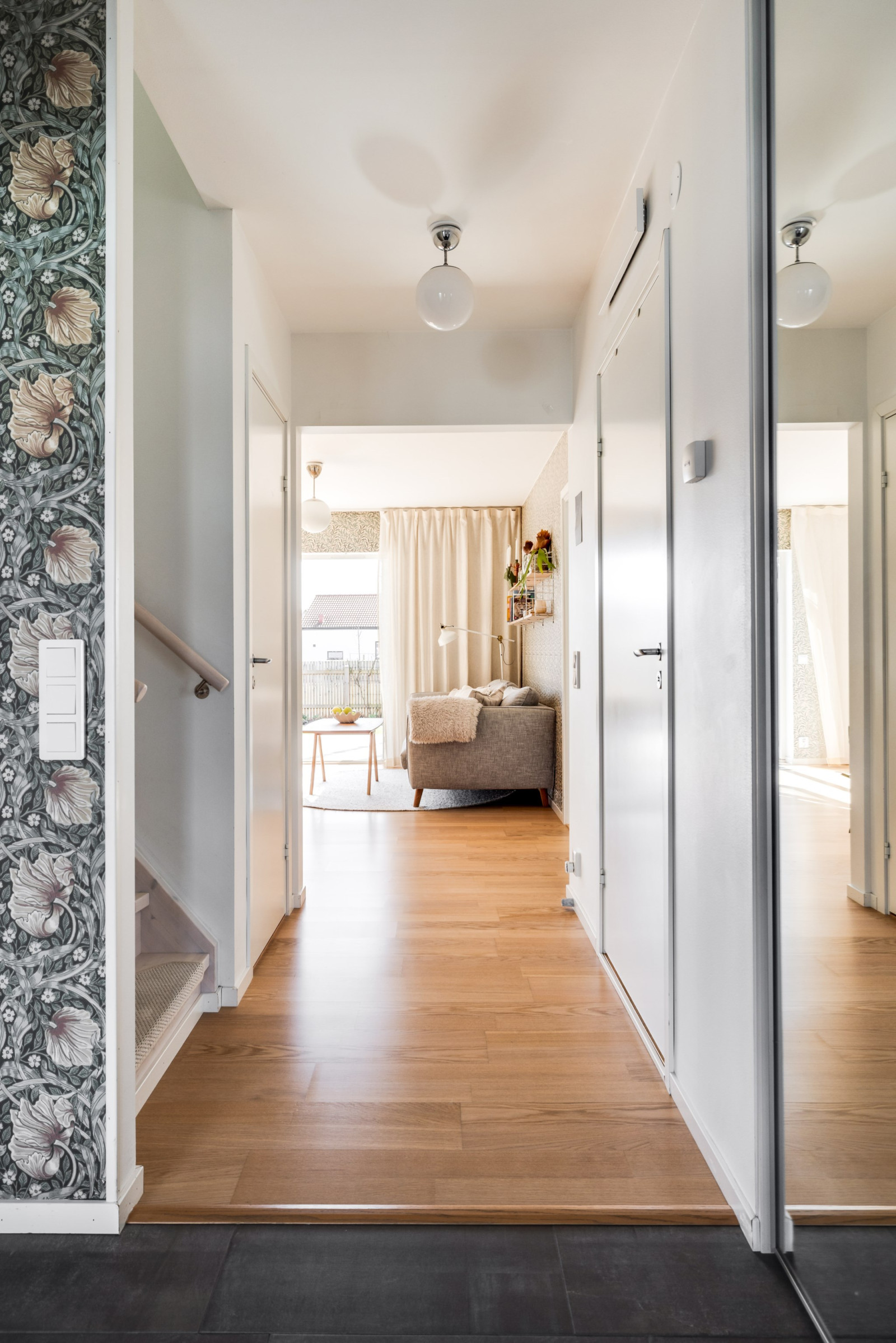 Välkomnande entré med slittåligt klinkergolv. Bra med yta för ytterkläder och trappa till ovanplanet.
