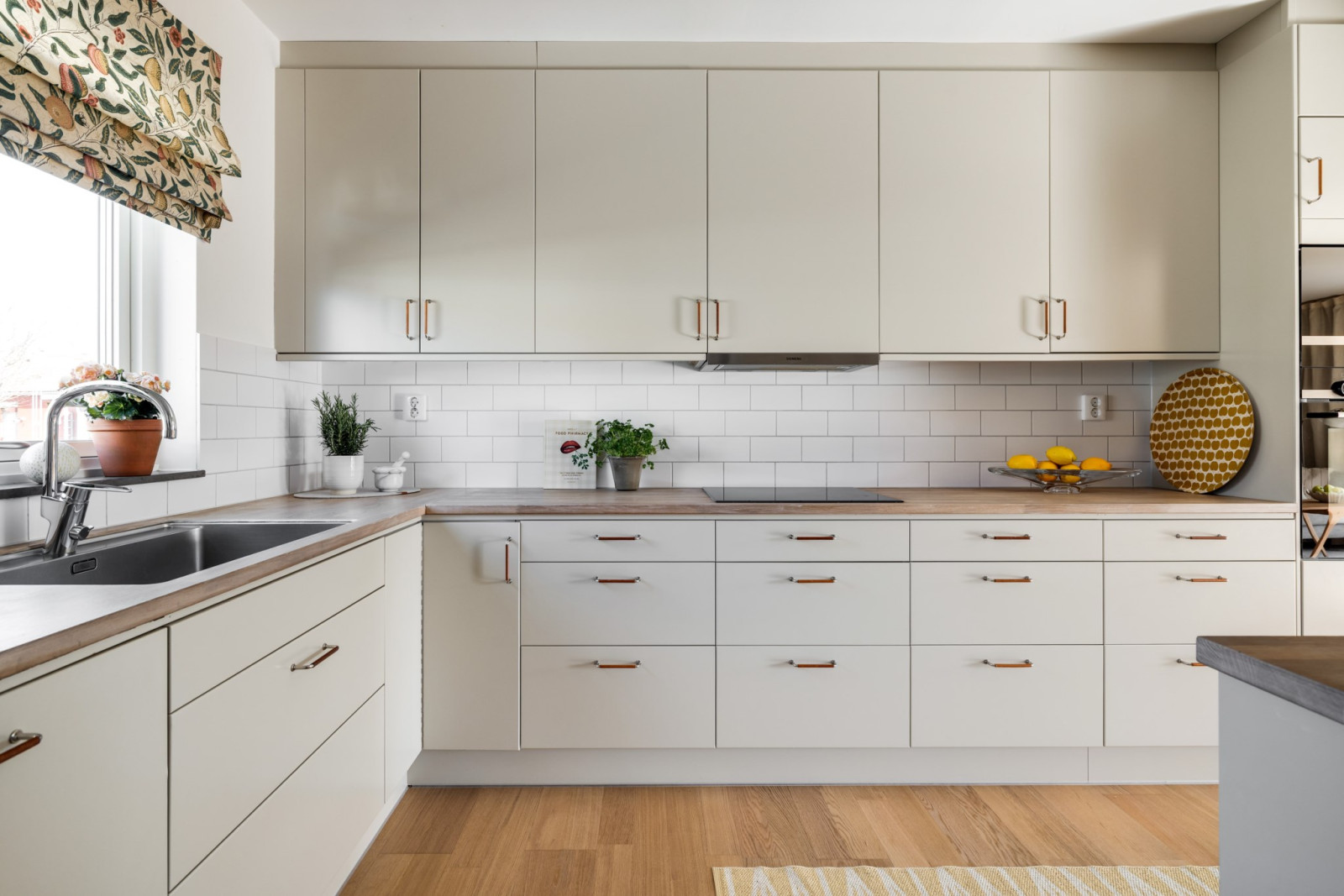 Trevligt och välplanerat kök med inredning från Ballingslöv. Påkostat från början med flera tillval i form av belysning, bänkskiva, handtag och integrerad diskmaskin. Utrustat med induktionshäll, spisfläkt, inbyggd ugn och micro, kyl, frys och integrerad diskmaskin.