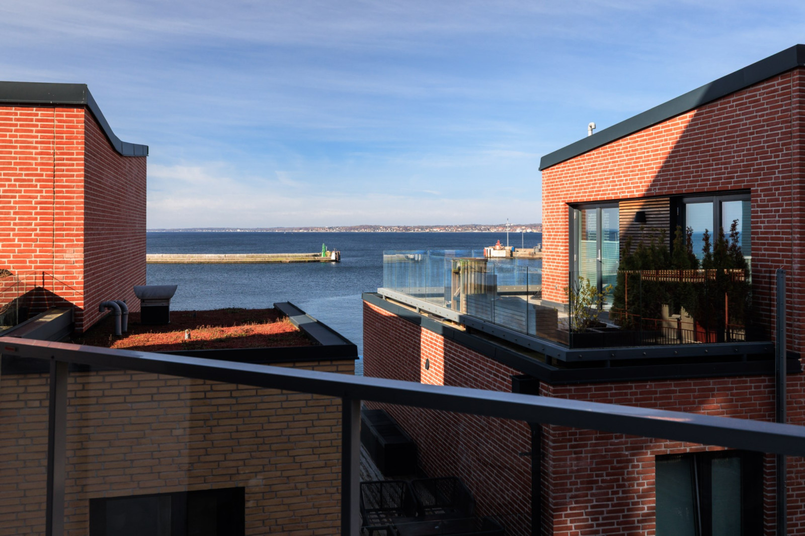 Gemensam innergård med planteringar, gångytor, cykelparkering, cykelhus, växthus/samlingsplats, gräsytor samt gemensam takterrass i hus 1 med utegym.
