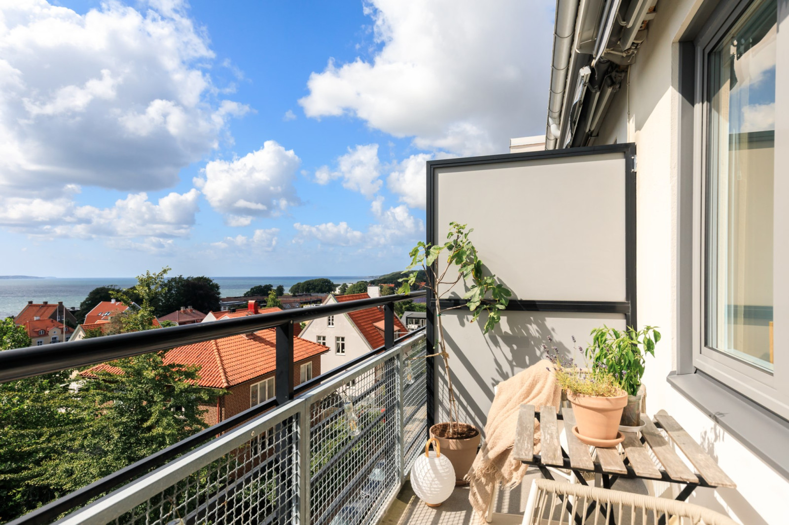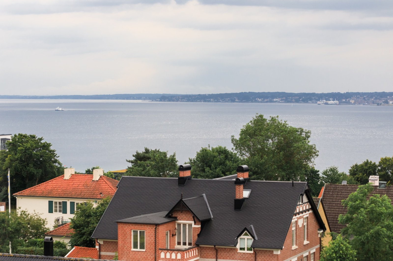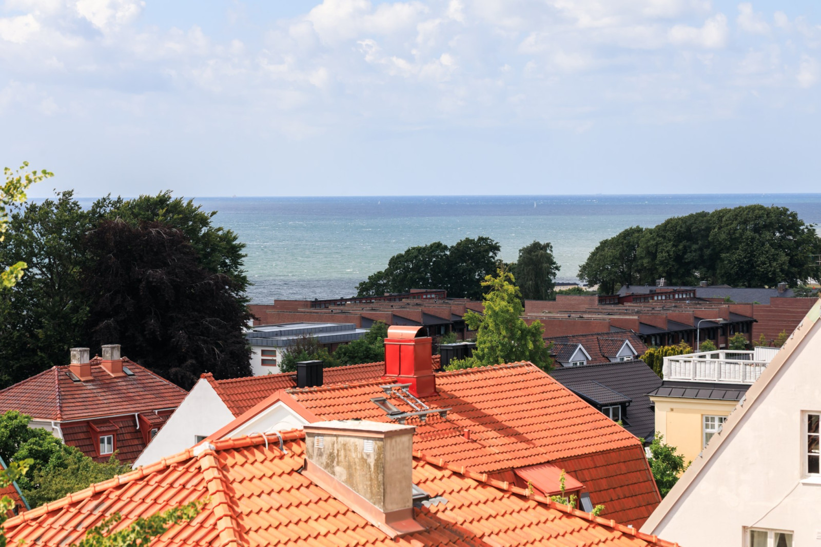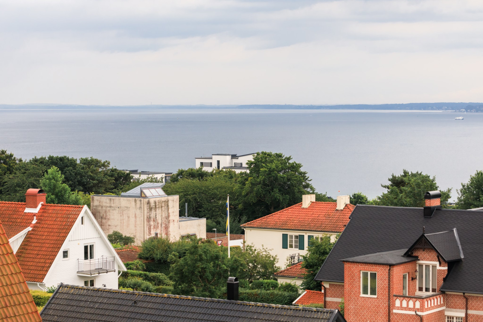 Modert planerat med kök och sällskapsyta i öppen planlösning. Nuvarande ägare har flyttat köket till rummet som har fiskbensparkett och plats för både soffgrupp och matplats. Skåpsinredning från Ikea med modern maskinpark. Stora fönster med panoramautsikt över Öresund! Utgång till balkong i västerläge, med samma härliga vy, samt markis.