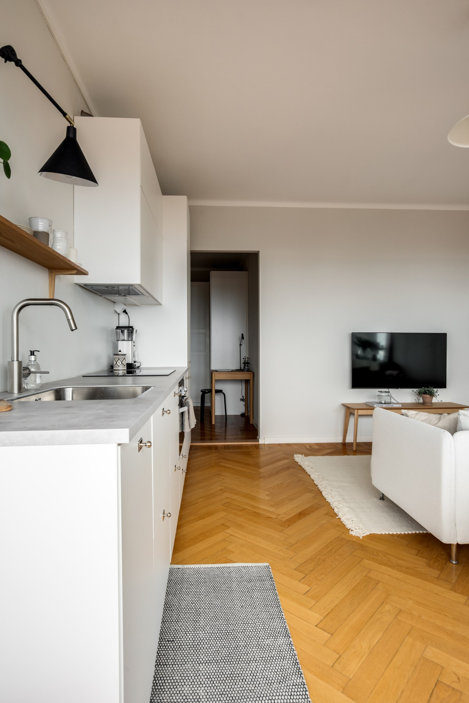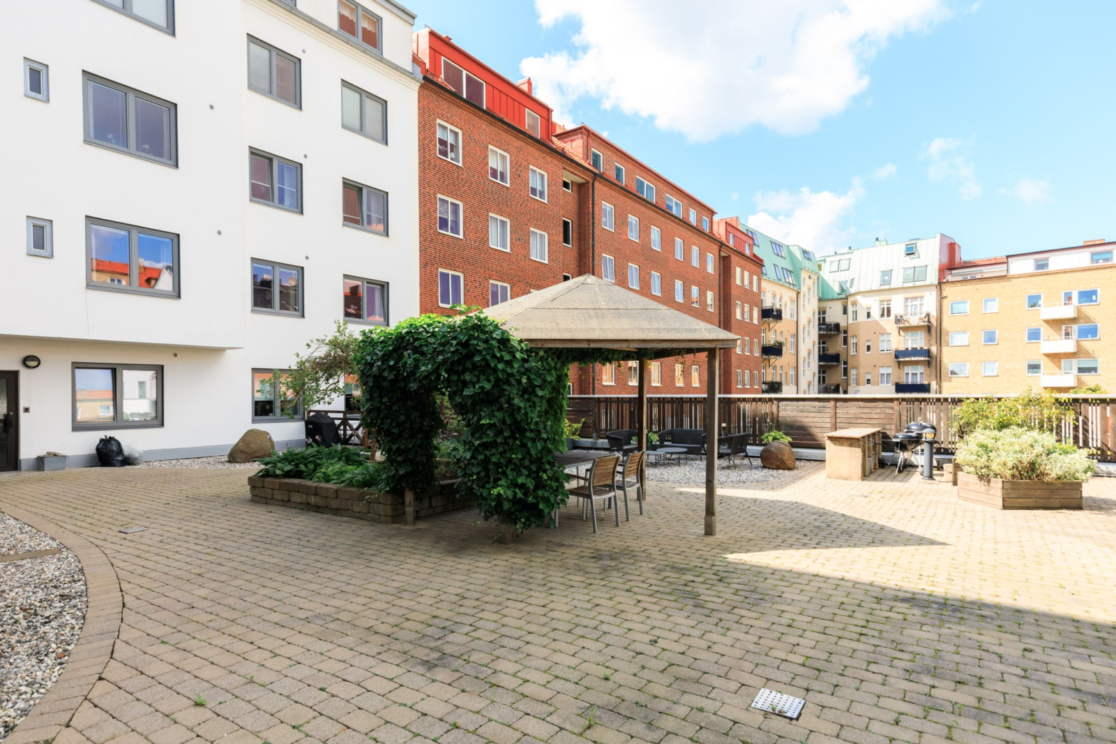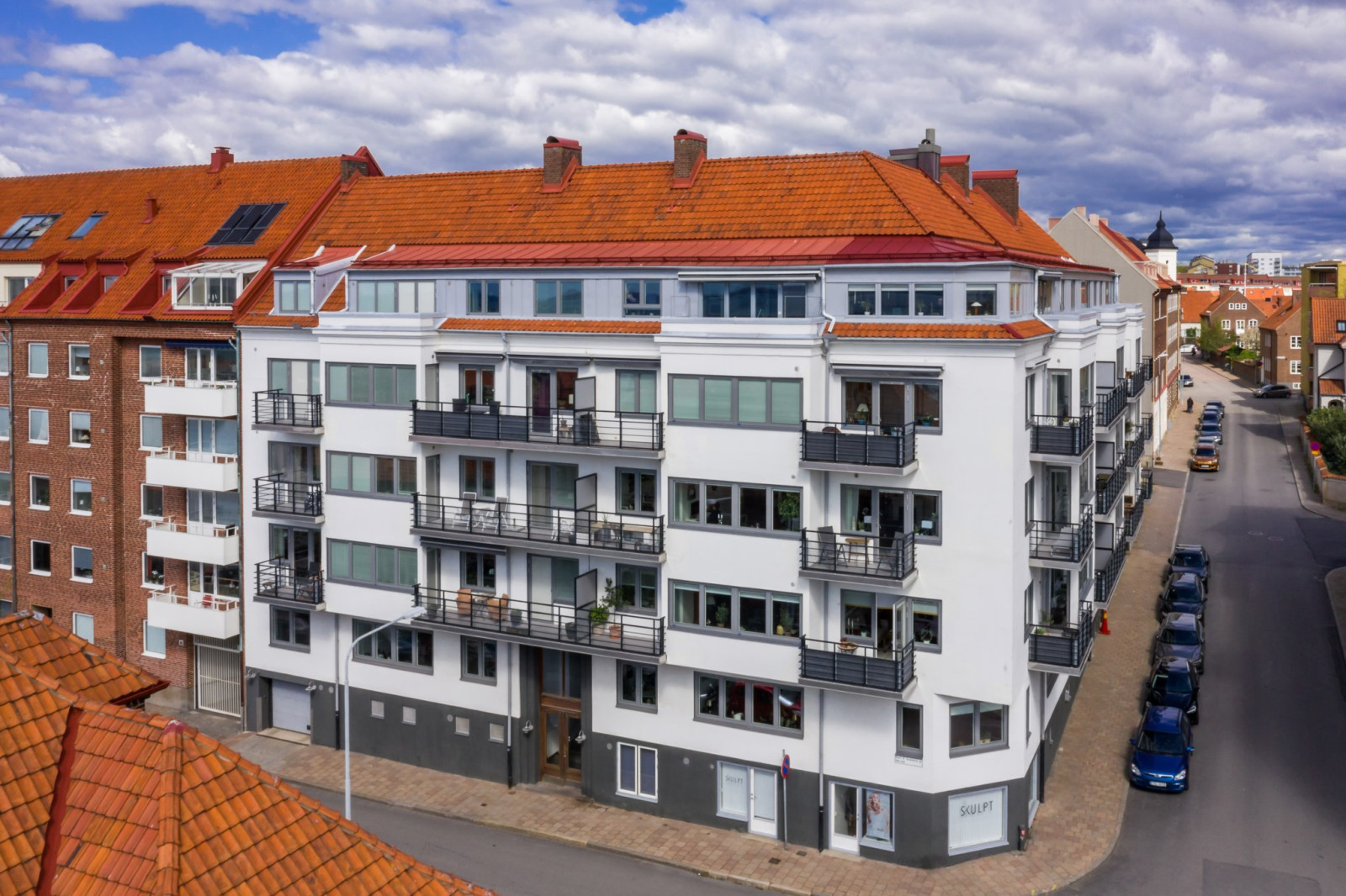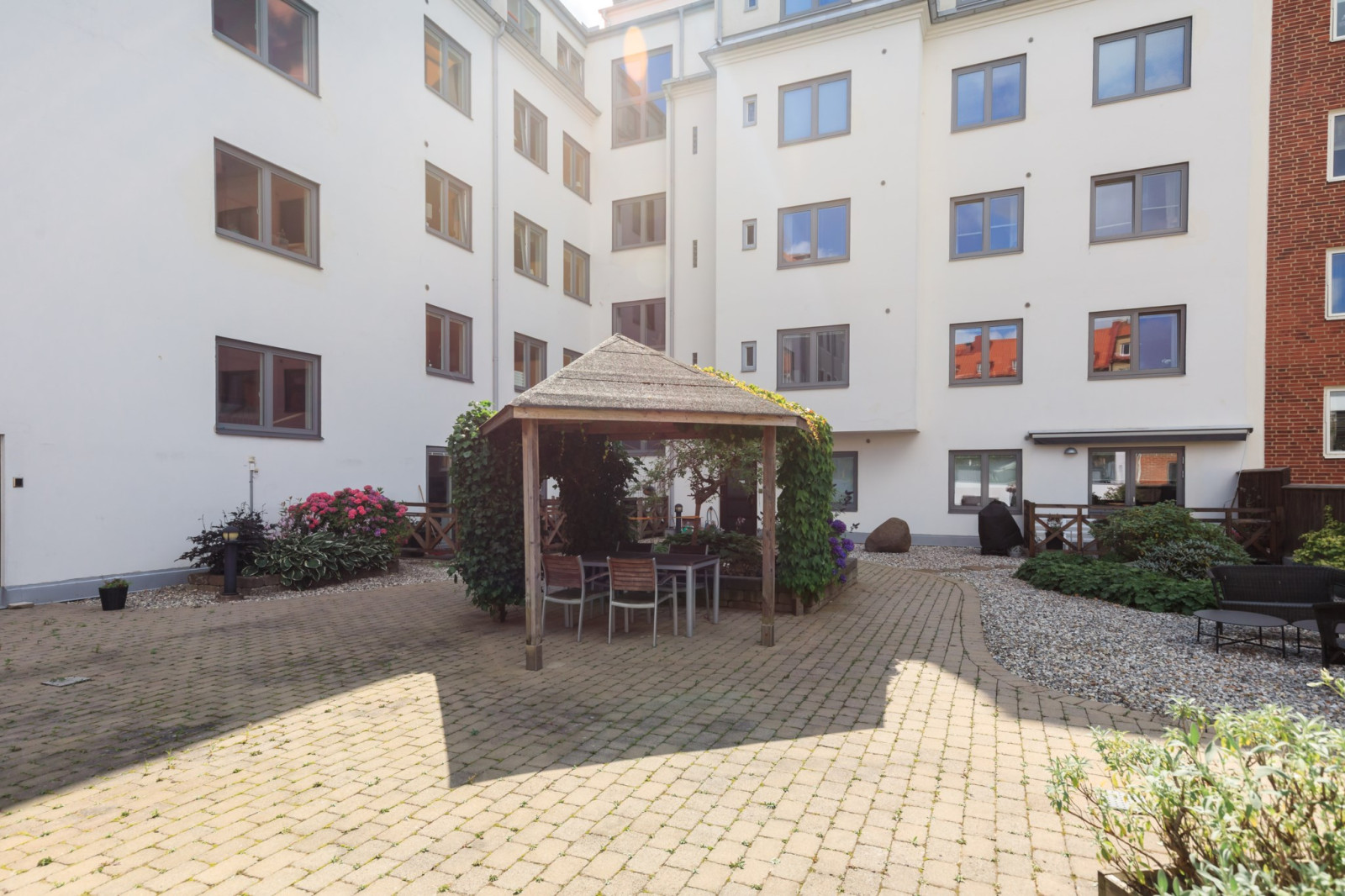 Modert planerat med kök och sällskapsyta i öppen planlösning. Nuvarande ägare har flyttat köket till rummet som har fiskbensparkett och plats för både soffgrupp och matplats. Skåpsinredning från Ikea med modern maskinpark. Stora fönster med panoramautsikt över Öresund! Utgång till balkong i västerläge, med samma härliga vy, samt markis.