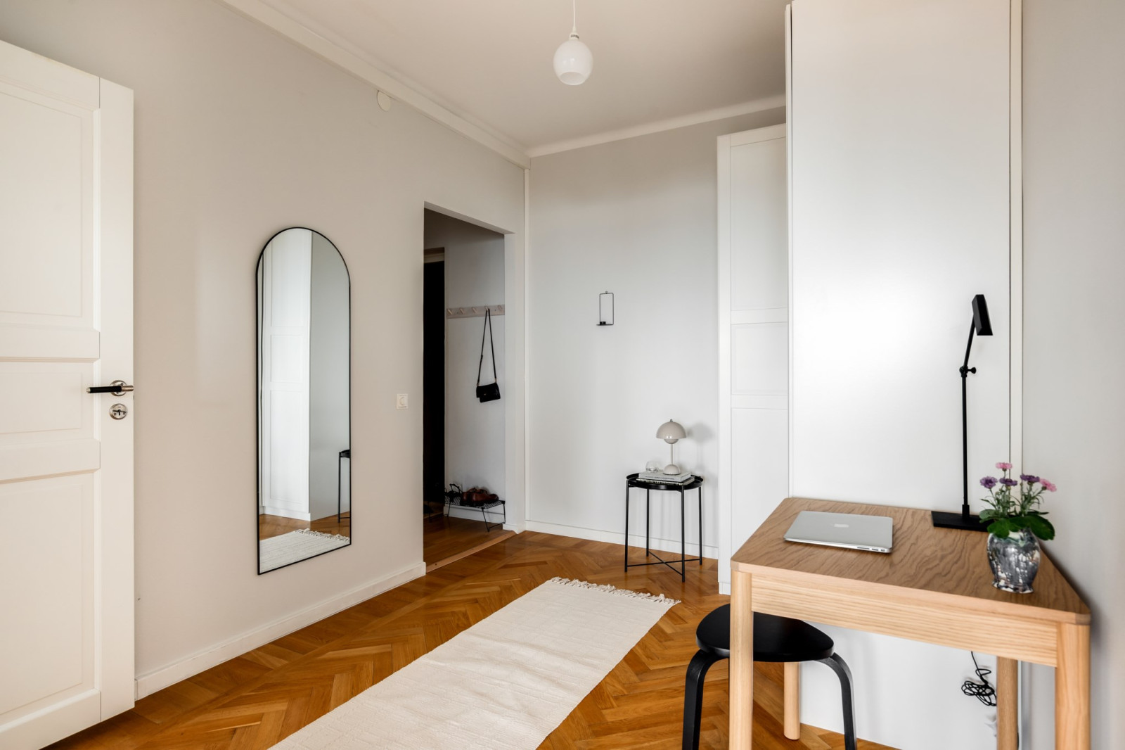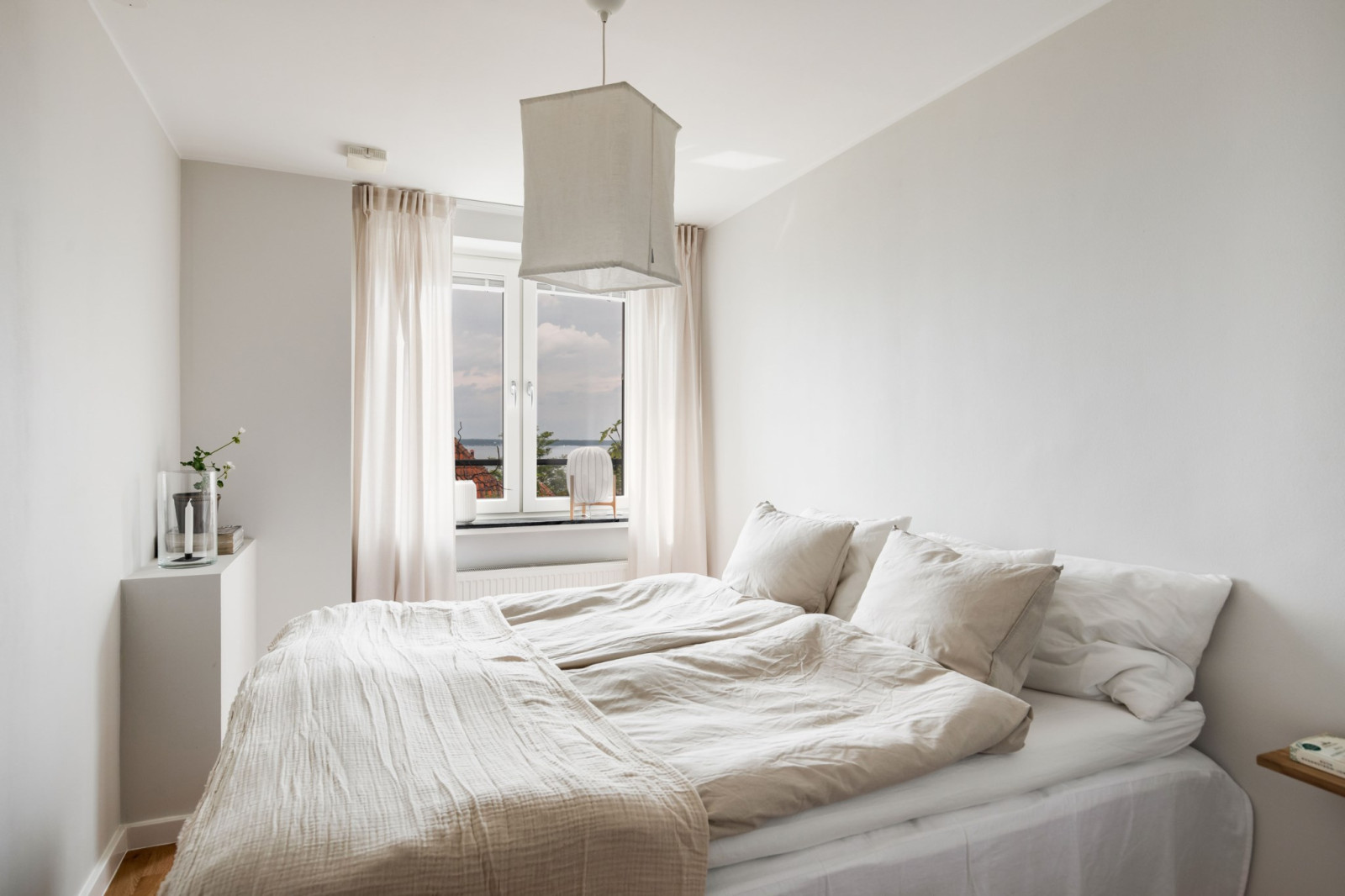 Fint sovrum i det som tiidigare varit kök. Stort fönster med panoramautsikt! Nylagt ekparkettgolv.