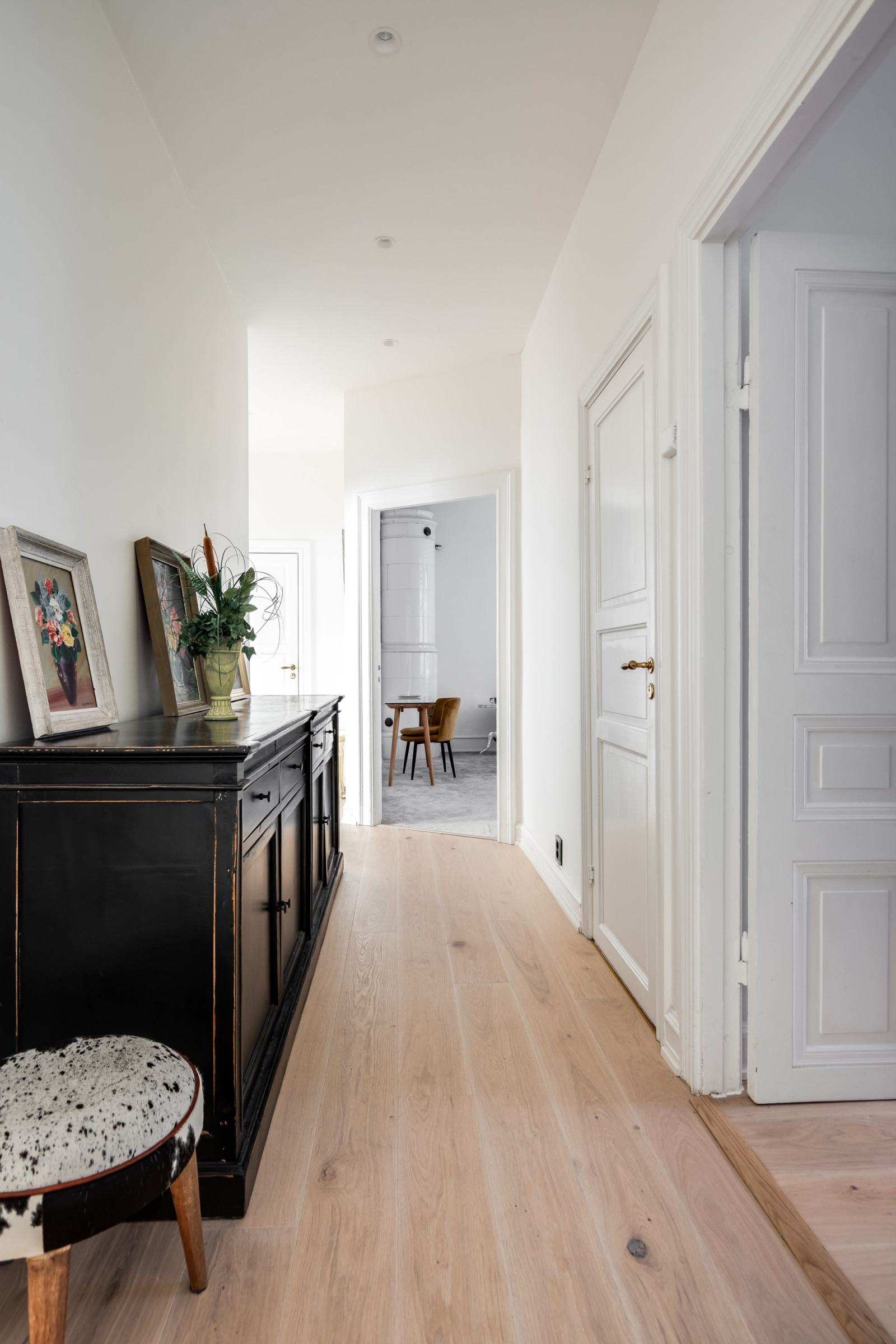 med vitlaserad 1-stavsparkett och plats att hänga av ytterkläder