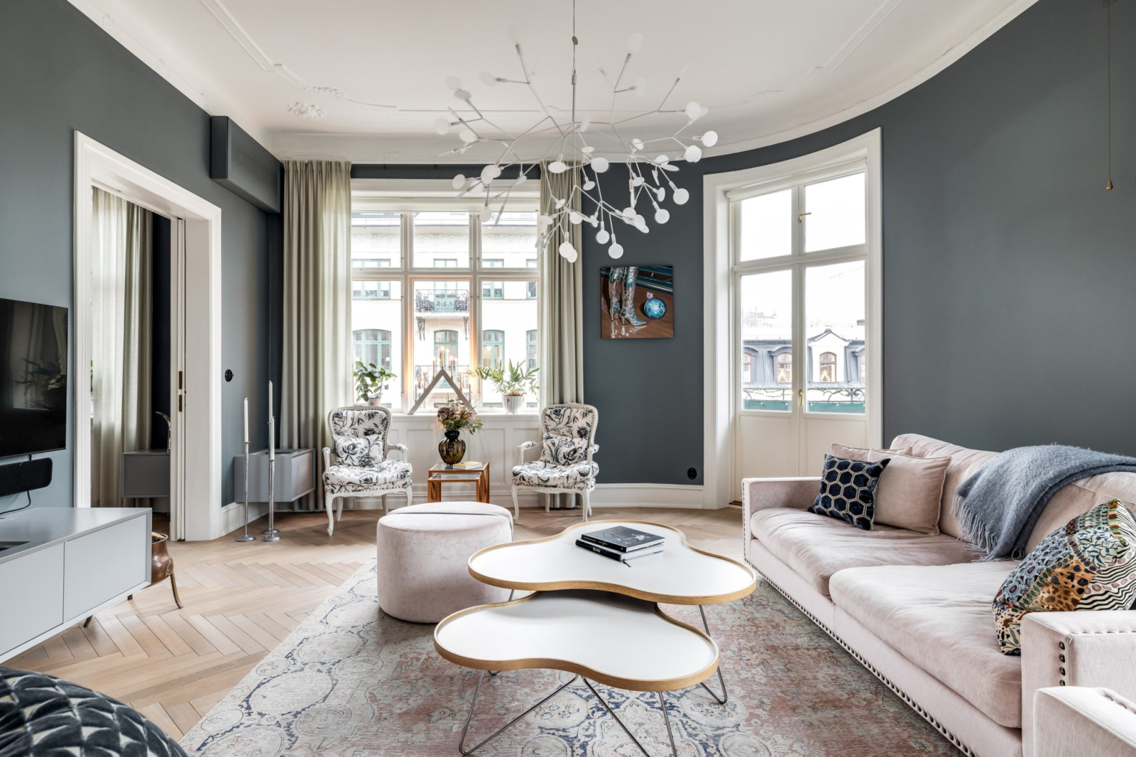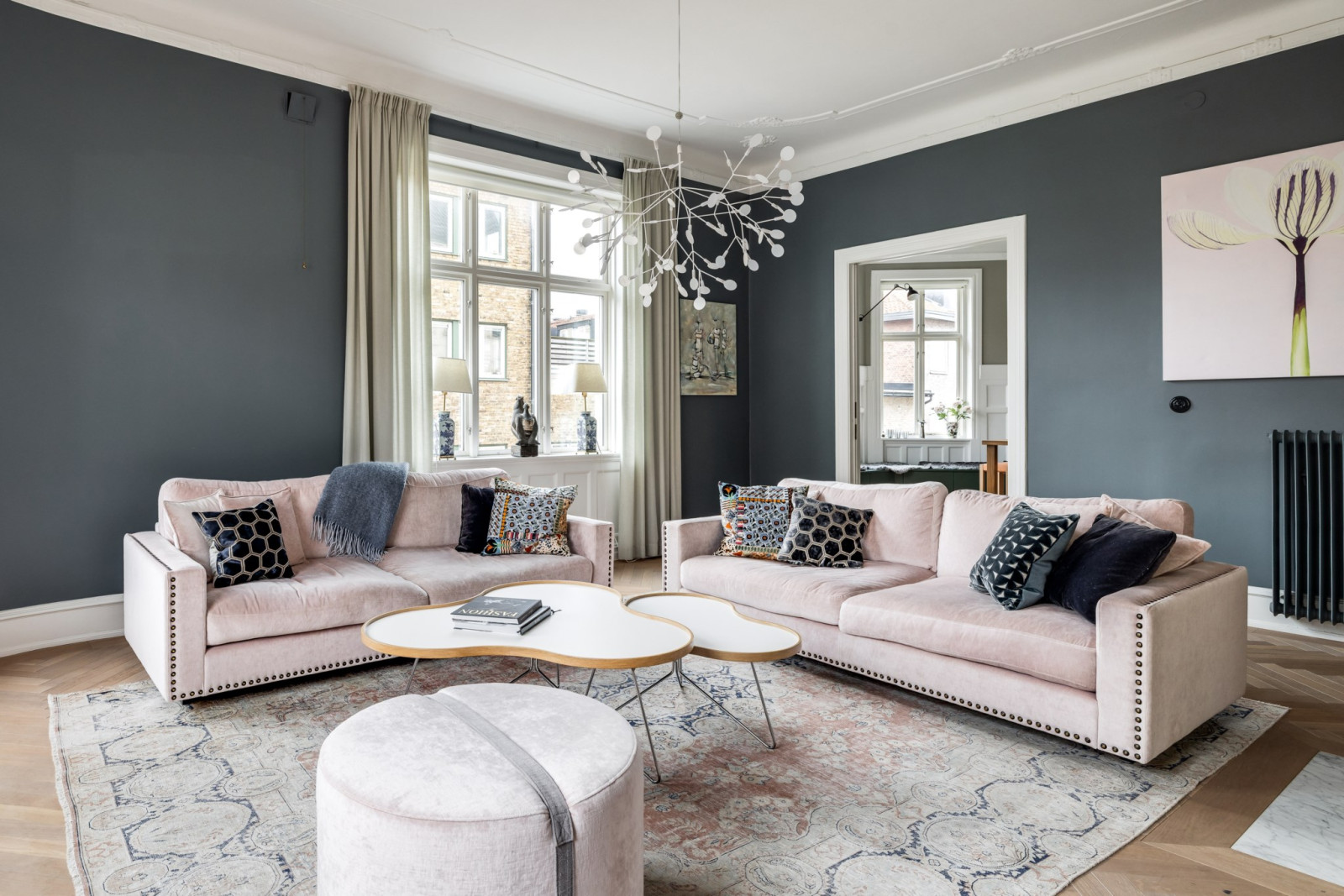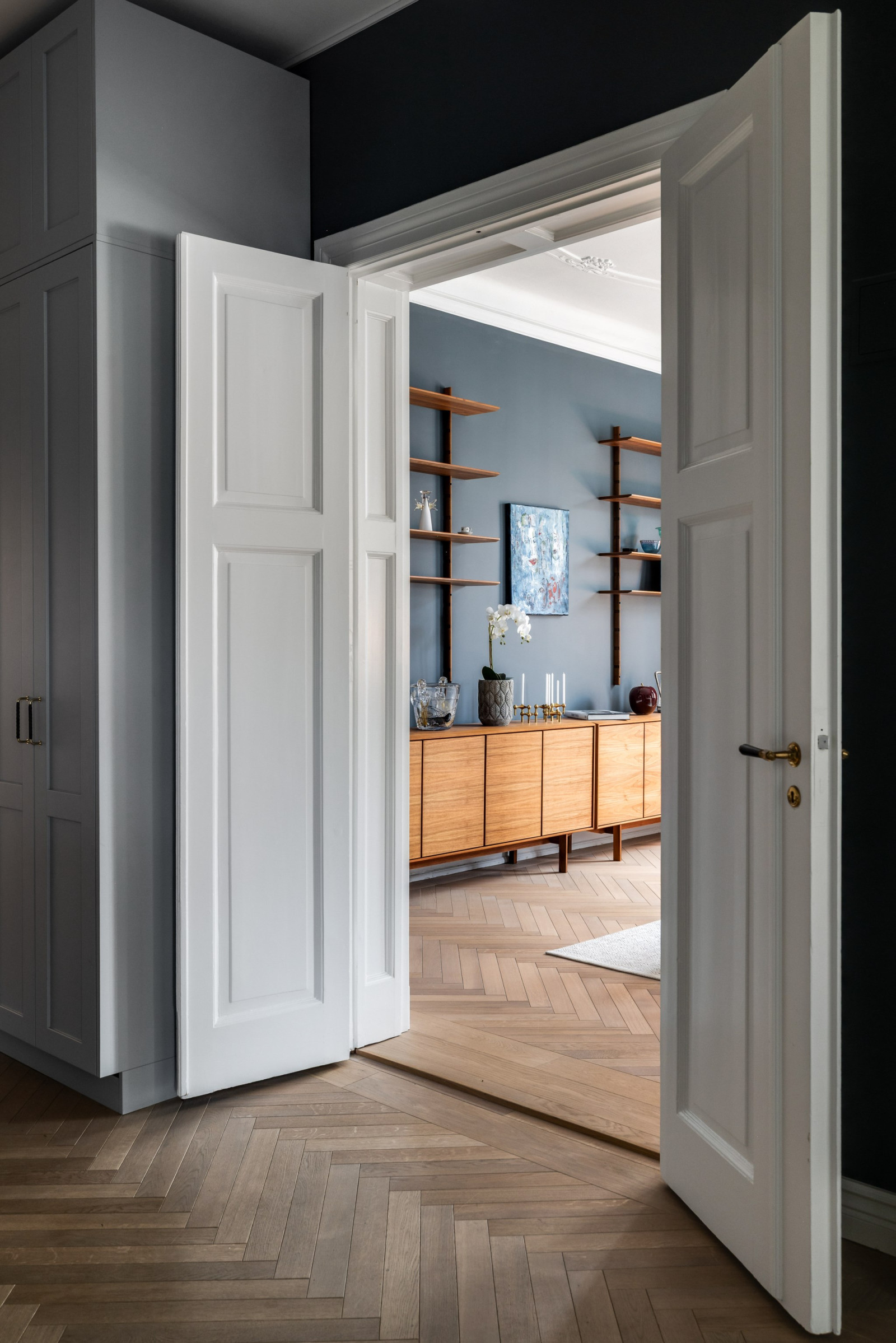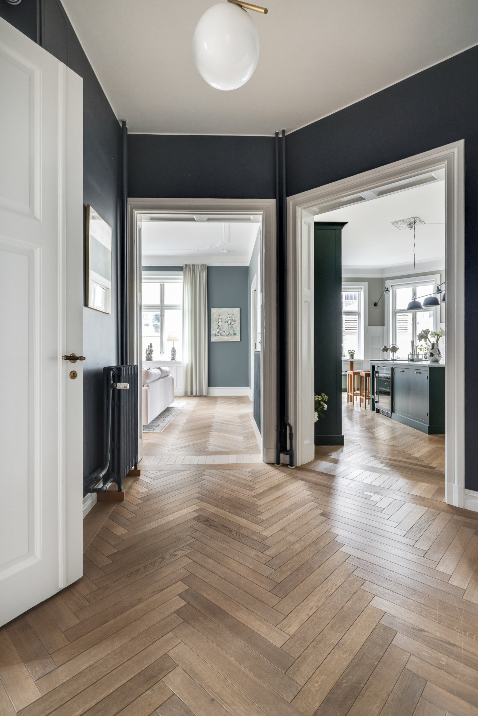 Allt är renoverat i lägenheten med högsta möjliga standard med målet att få en modern lägenhet med bibehållen sekelskifteskänsla.