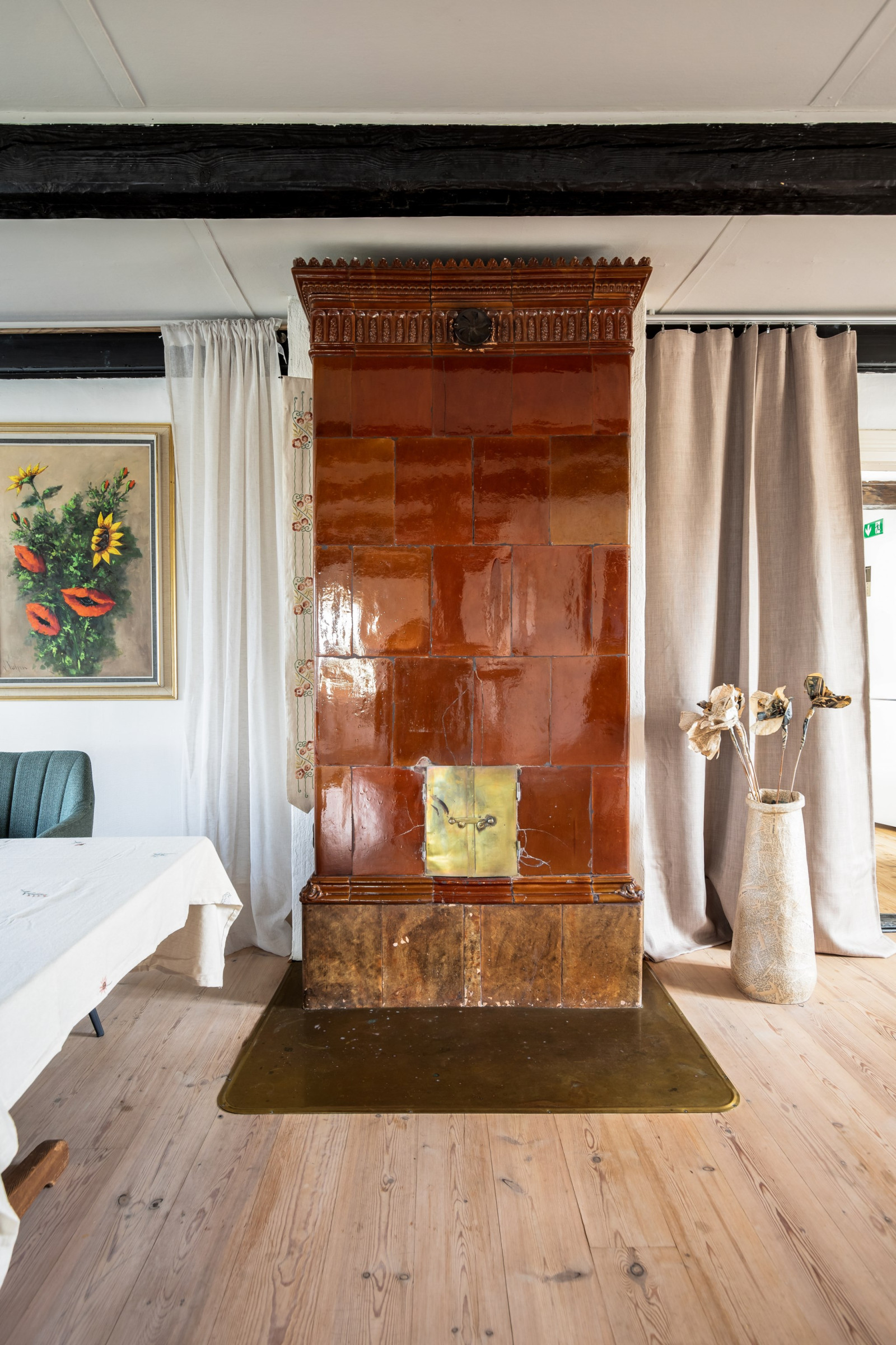 Ett rymligt härligt rum som kan nyttjas helt efter behov. Idag är detta rum inrett till en yogastudio men kan även med fördel användas som vardagsrum och matrum. Se bilder för exempel på båda användningsområdena. Slipat furugolv och vacker kakelugn. Utgång både till uterummet samt den upphöjda terrassen på villans baksida.