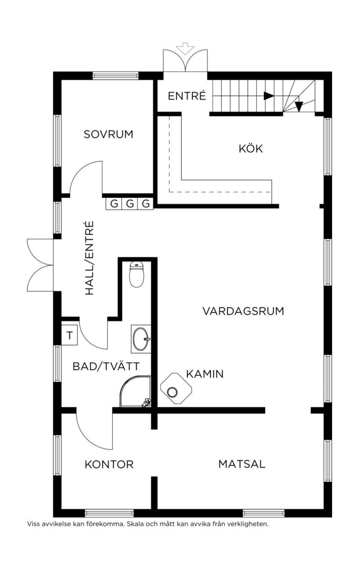 Inkluderar vissa inredda delar av vinden. Källare ej inräknat.