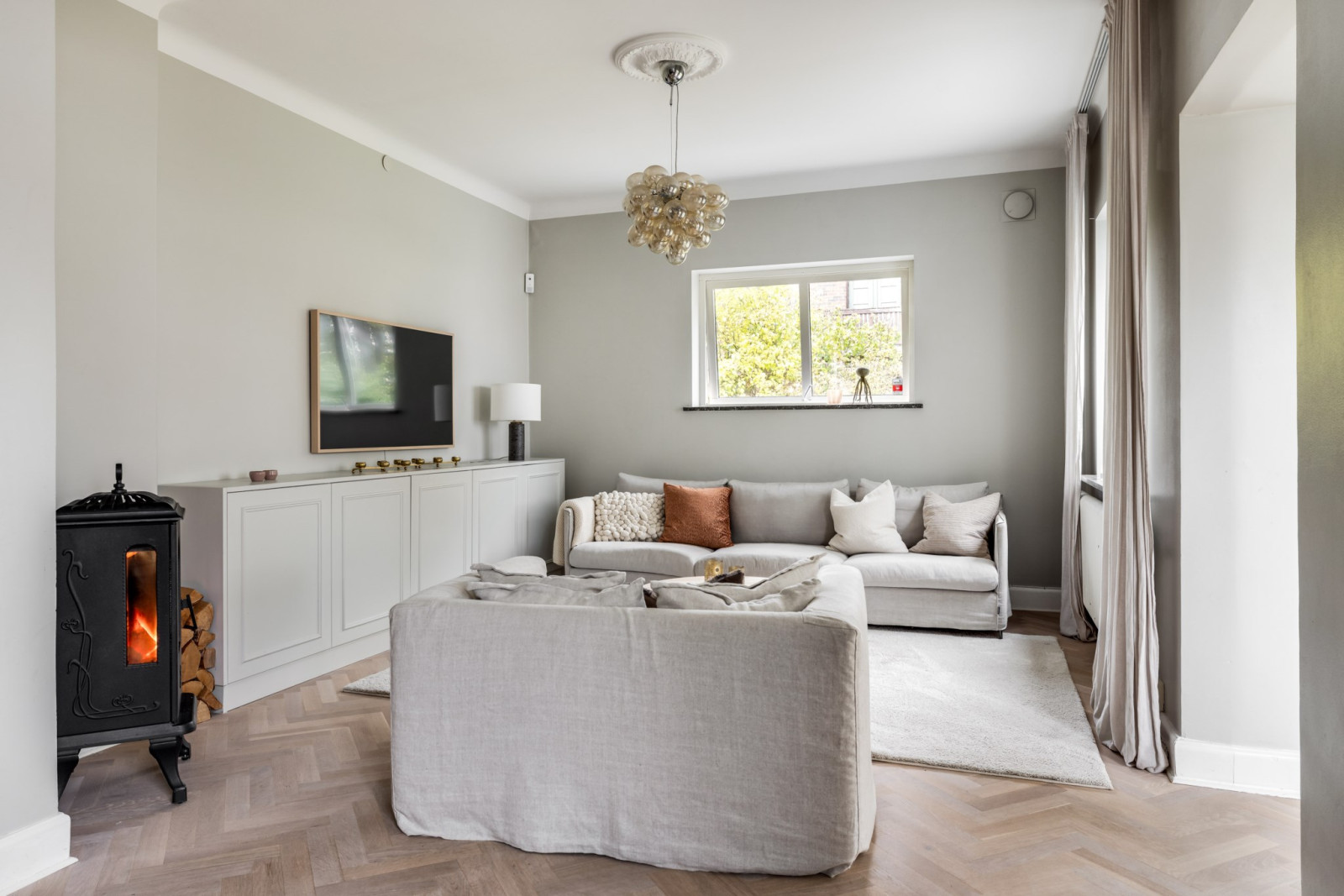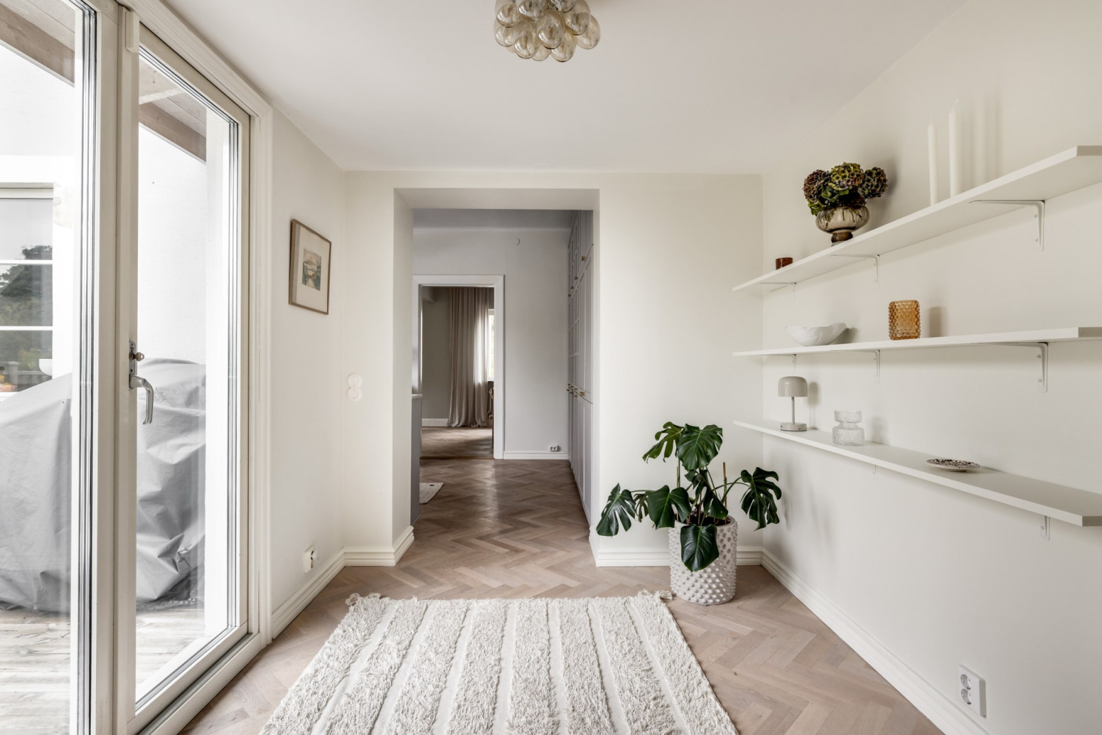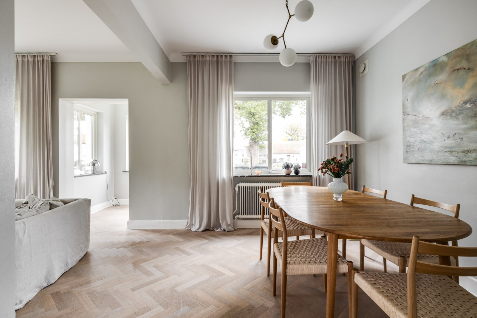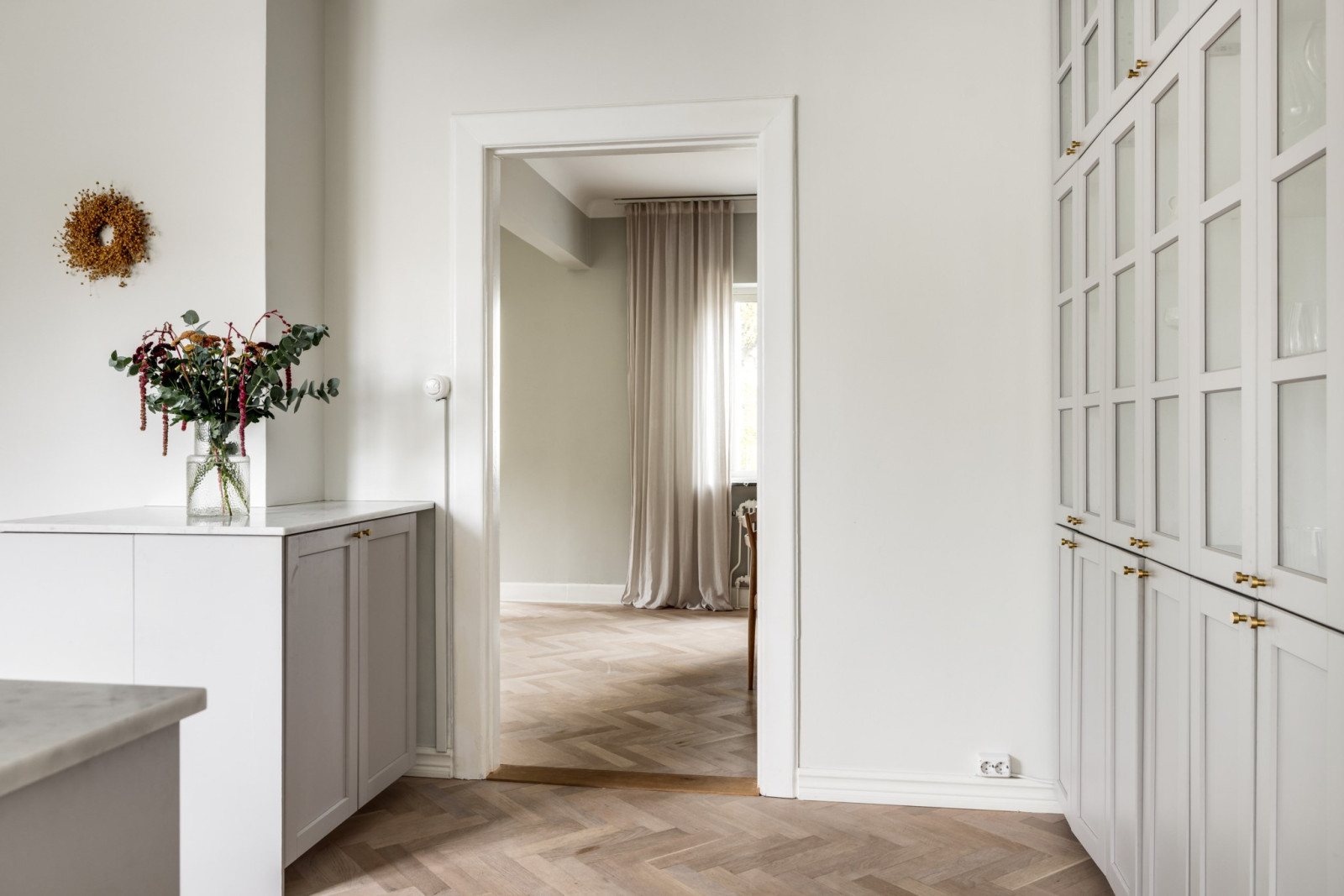 - Fiskbensparkett genomgående i hela huset från Bjelin.