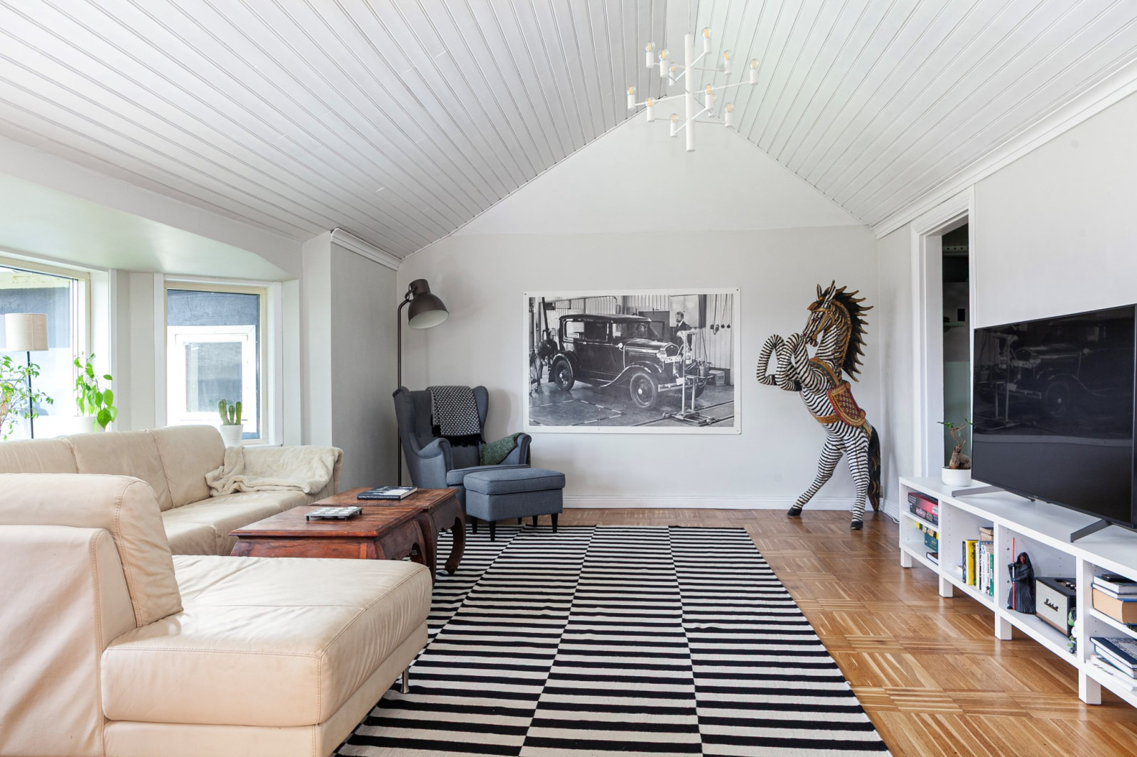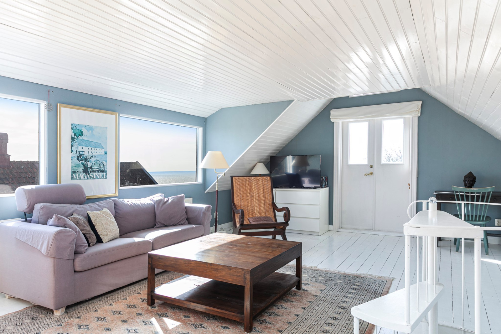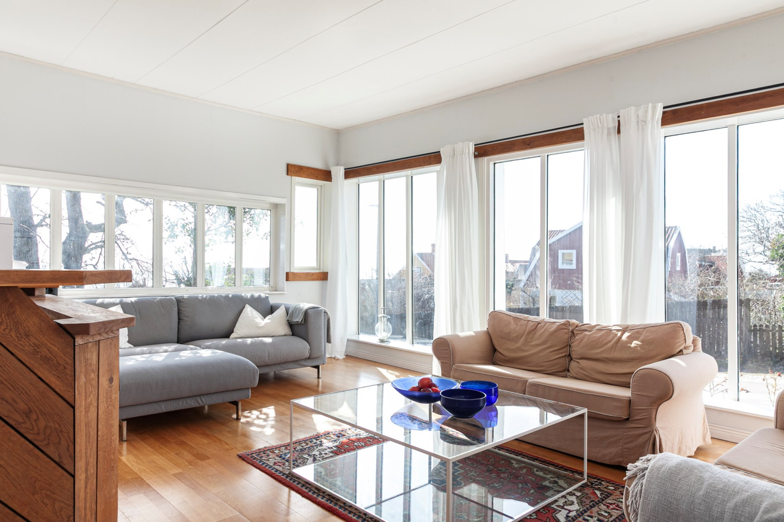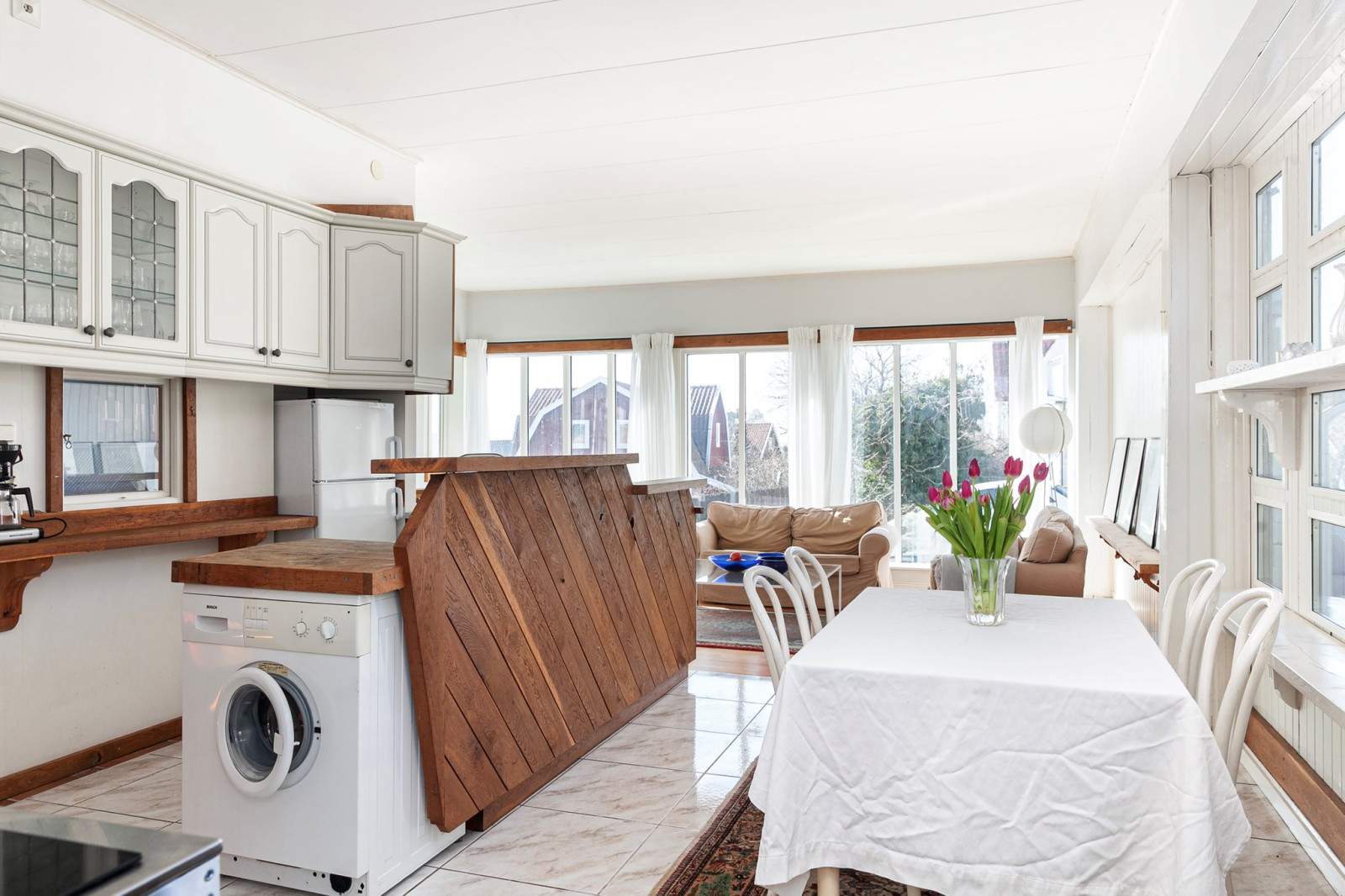 Ljus och trevlig sällskapsyta med generösa fönsterpartiet.