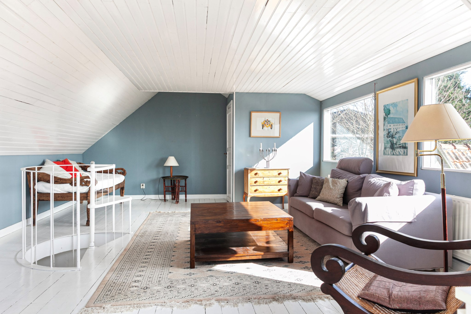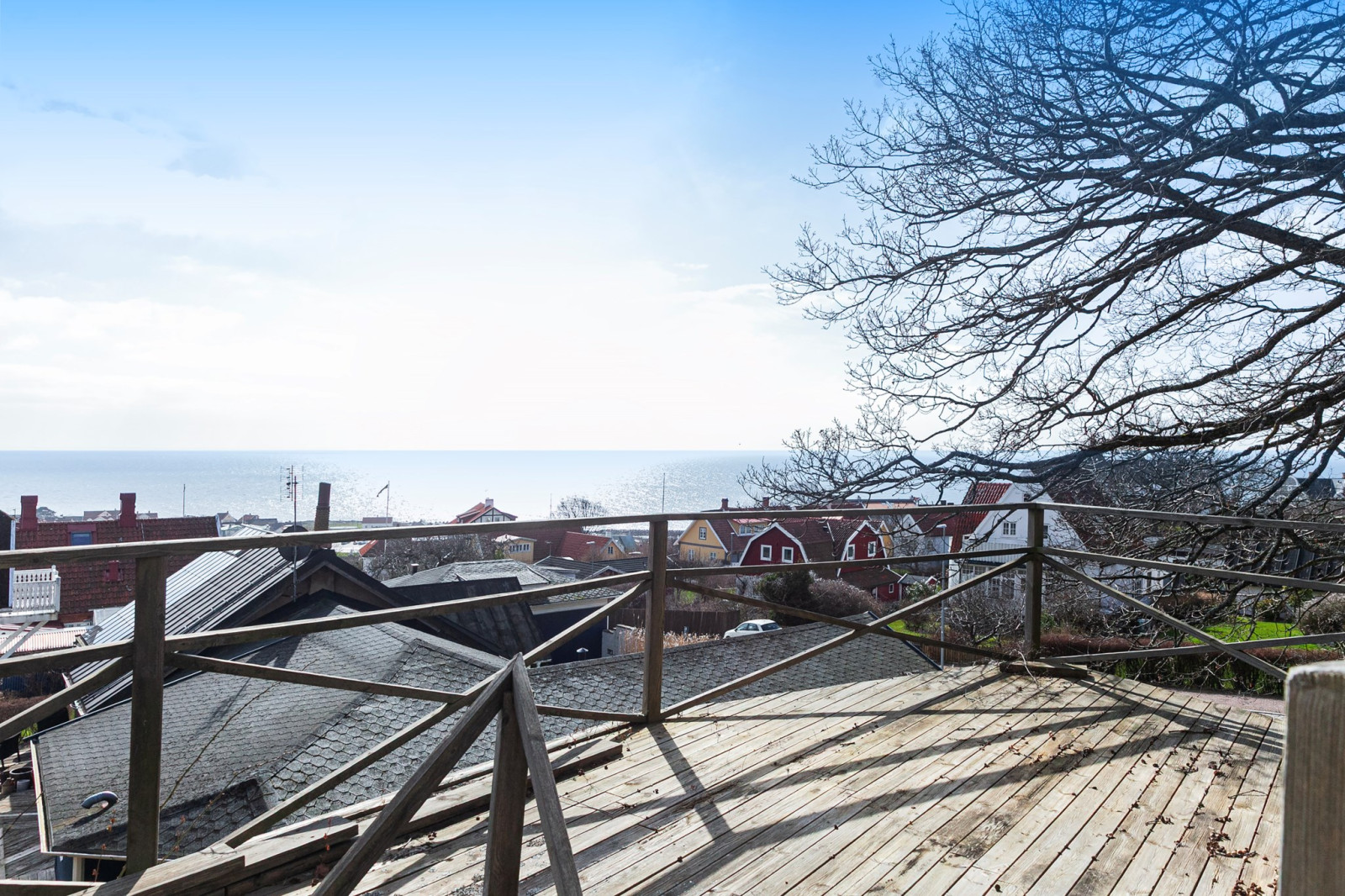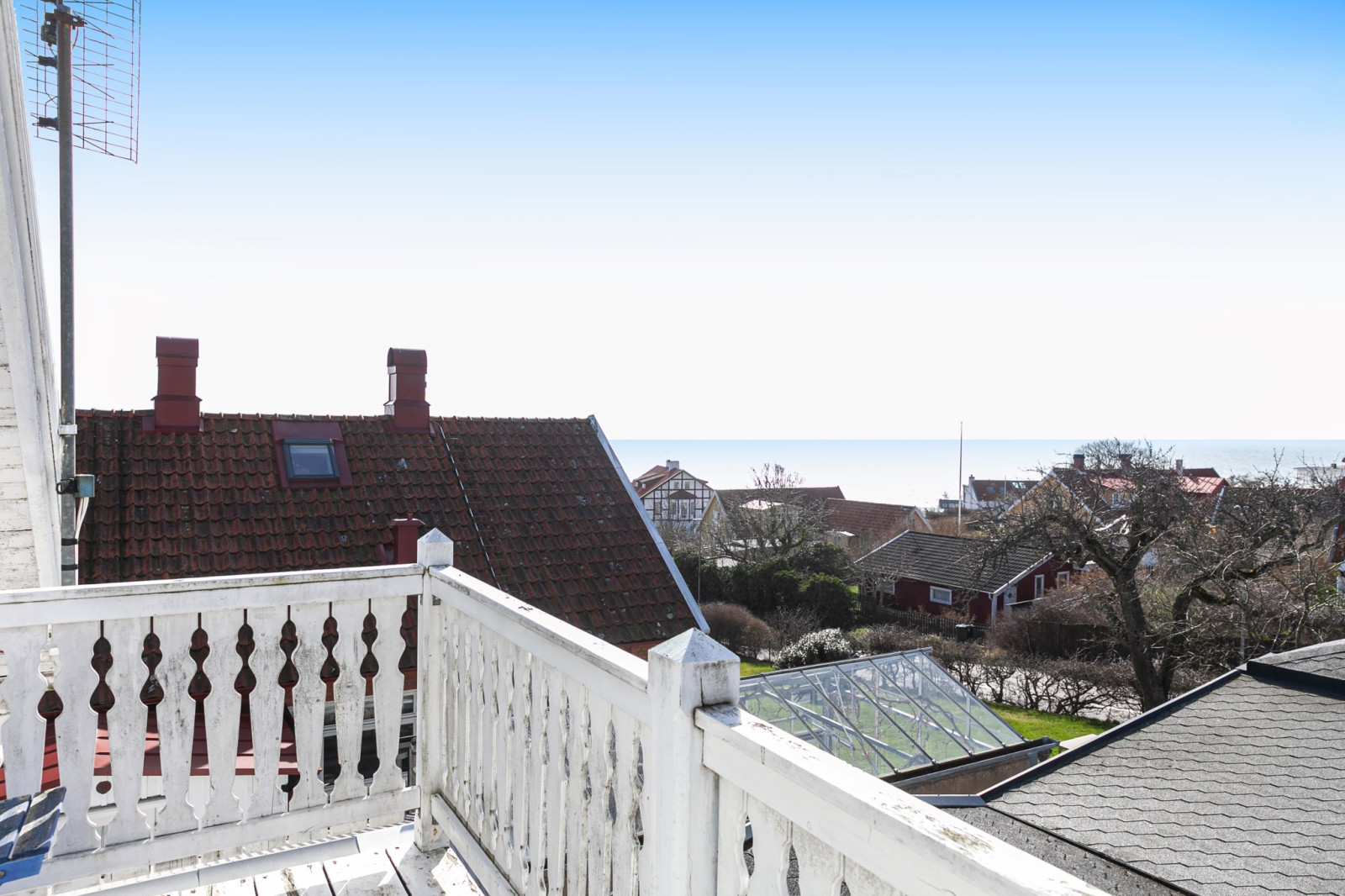 Ovanplanet är idag ett stort vardagsrum som går utmärkt att dela vid behov av fler sovrum. Underbar utsikt från både kupan och balkongen.