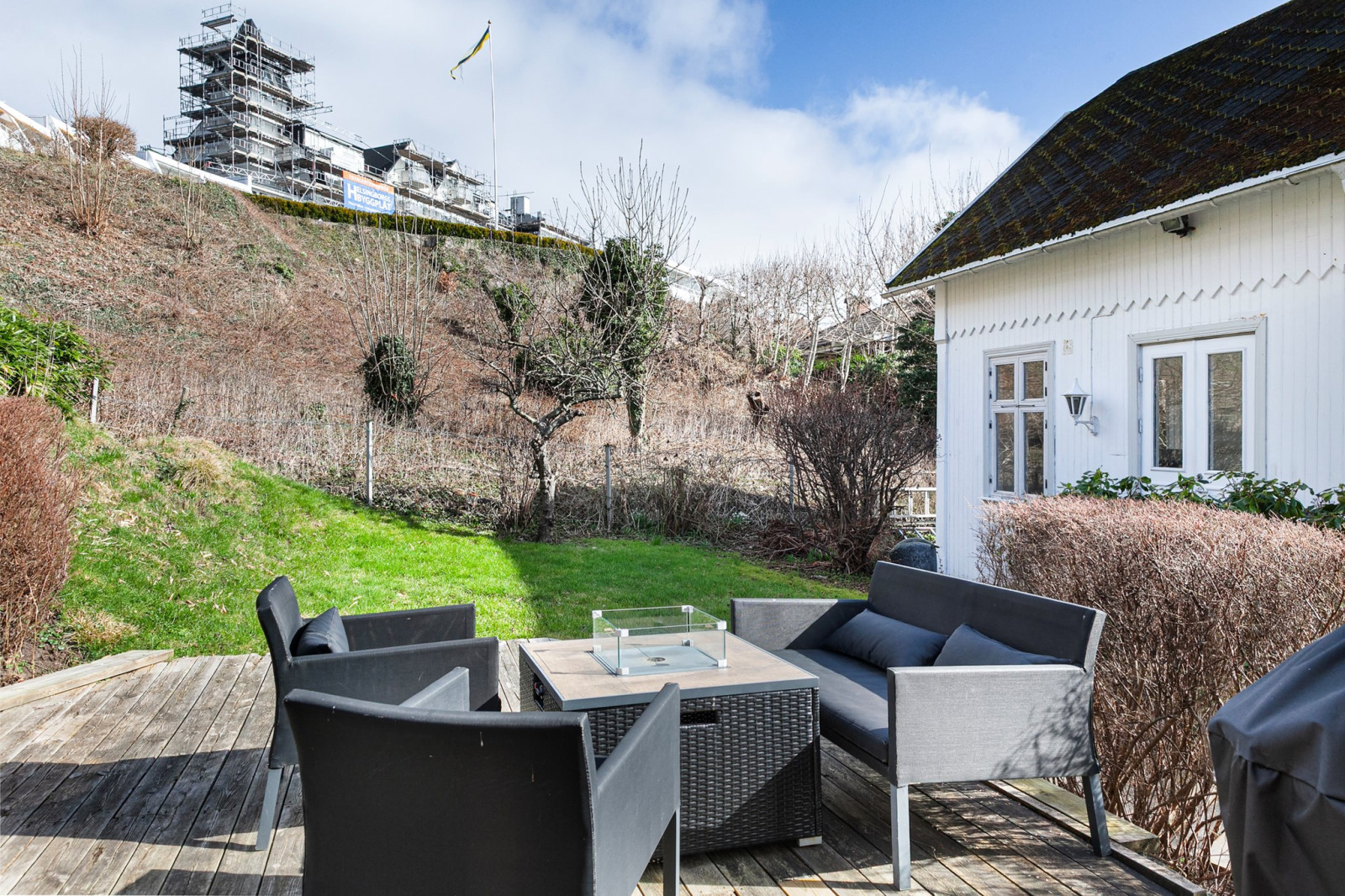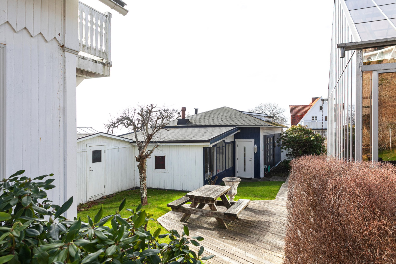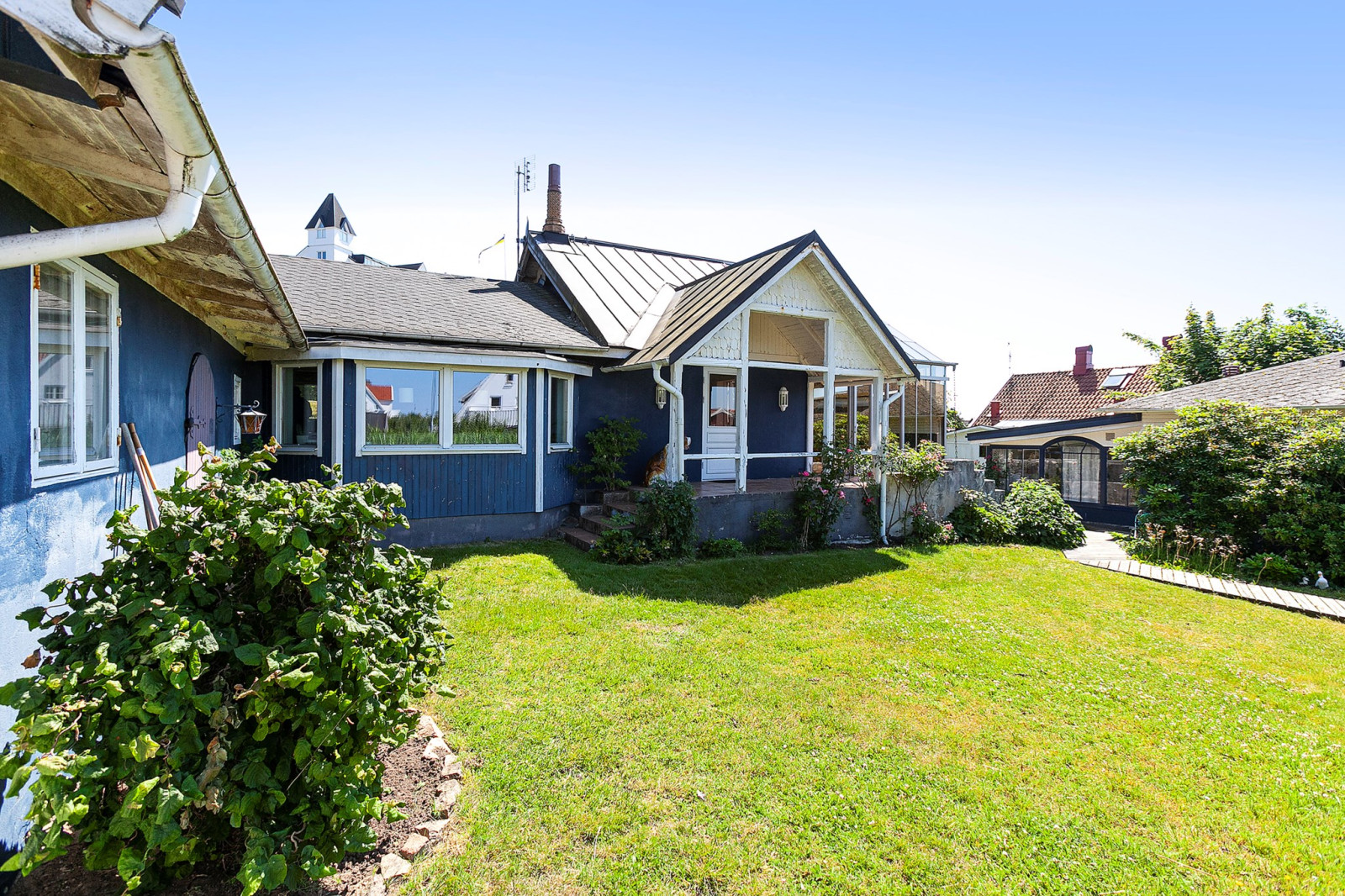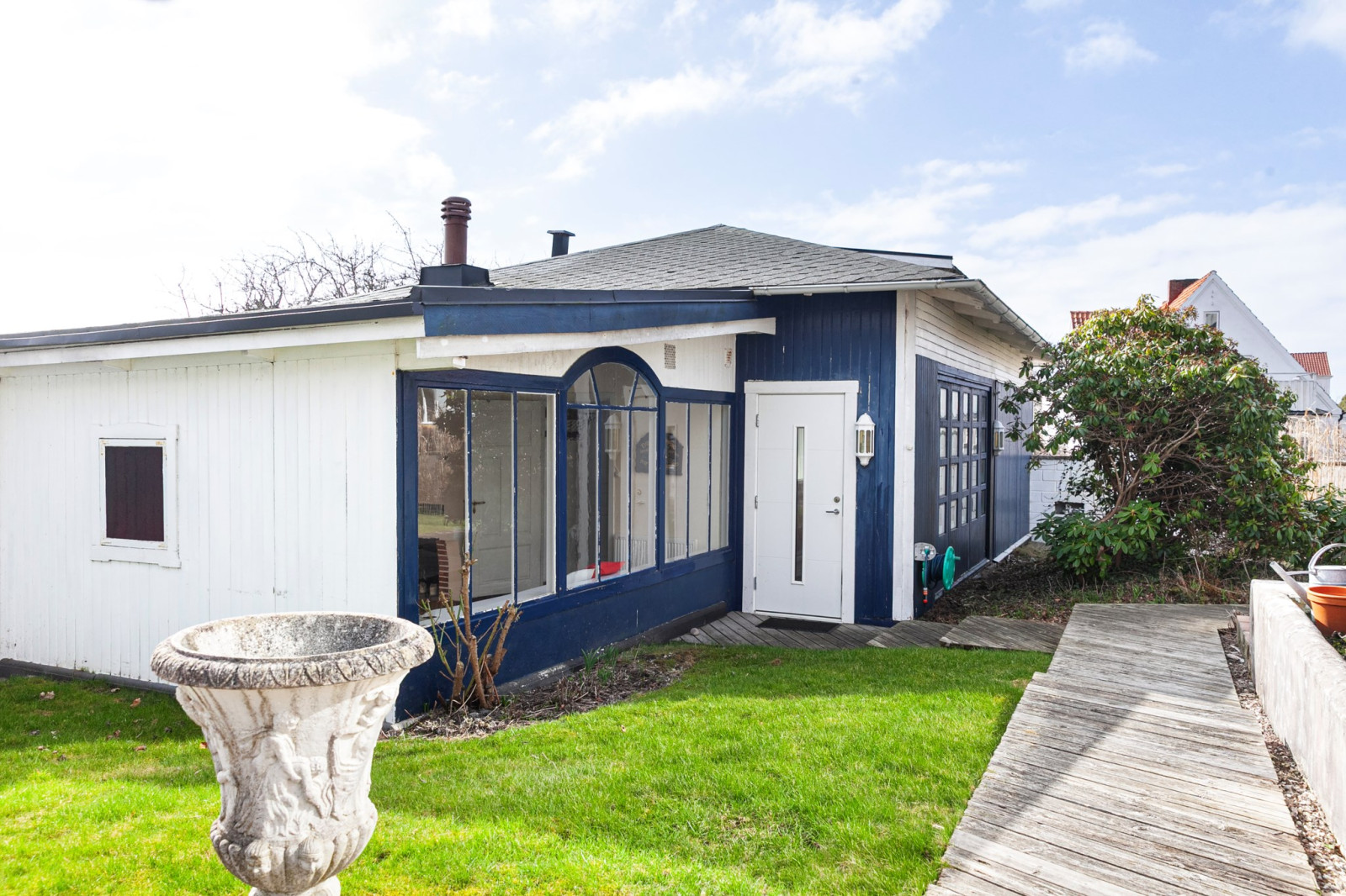 Tomten är lummig och rogivande med vacker havsutsikt som skapar en harmonisk inramning året om. Här bor du med trevligt läge, en kort promenadavstånd till tennisbanor, den charmiga hamnen, salta bad och Kullabergs mäktiga natur med vandring, klättring, golf och natursköna upplevelser.