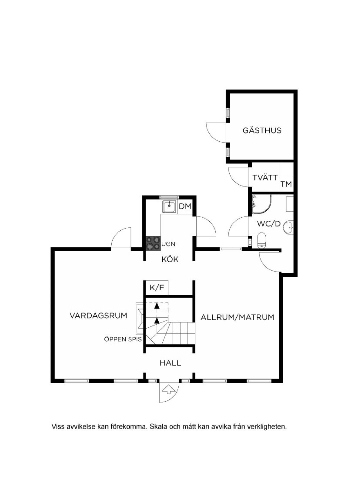 Den uppmätta boytan inkluderar gästhuset. Taxerad boyta 45 kvm.