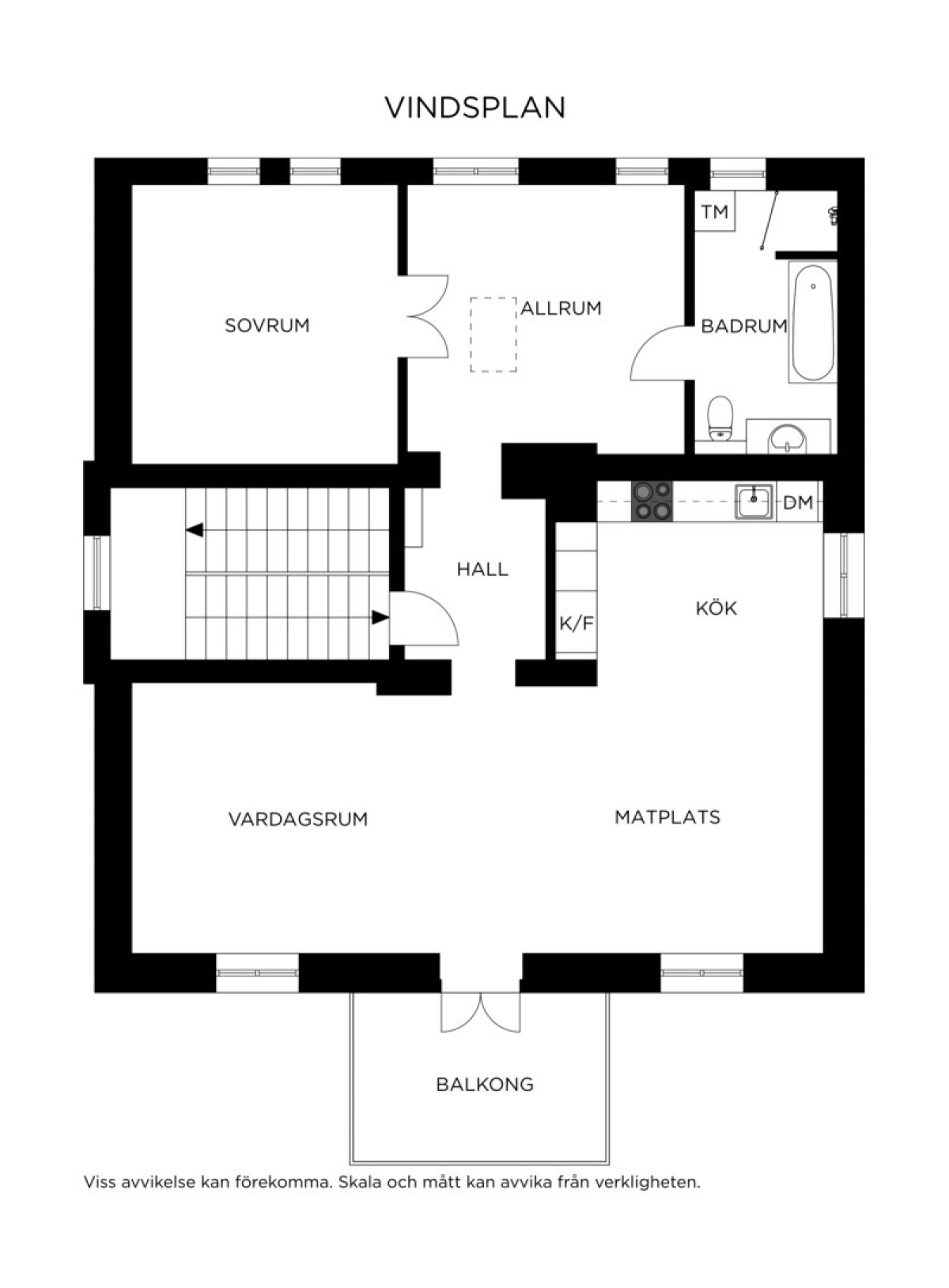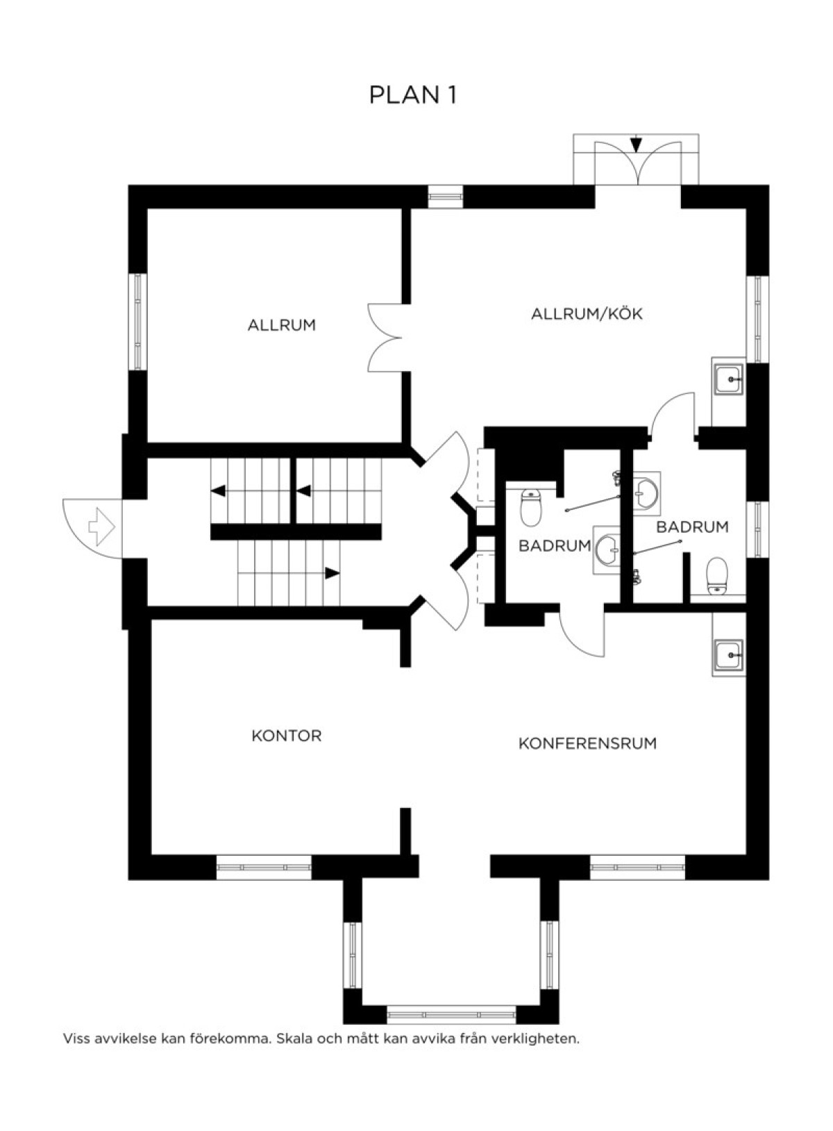 Takhöjd på detta våningsplan är 3 m. Släta målade väggar. Vattenburen golvvärme.
