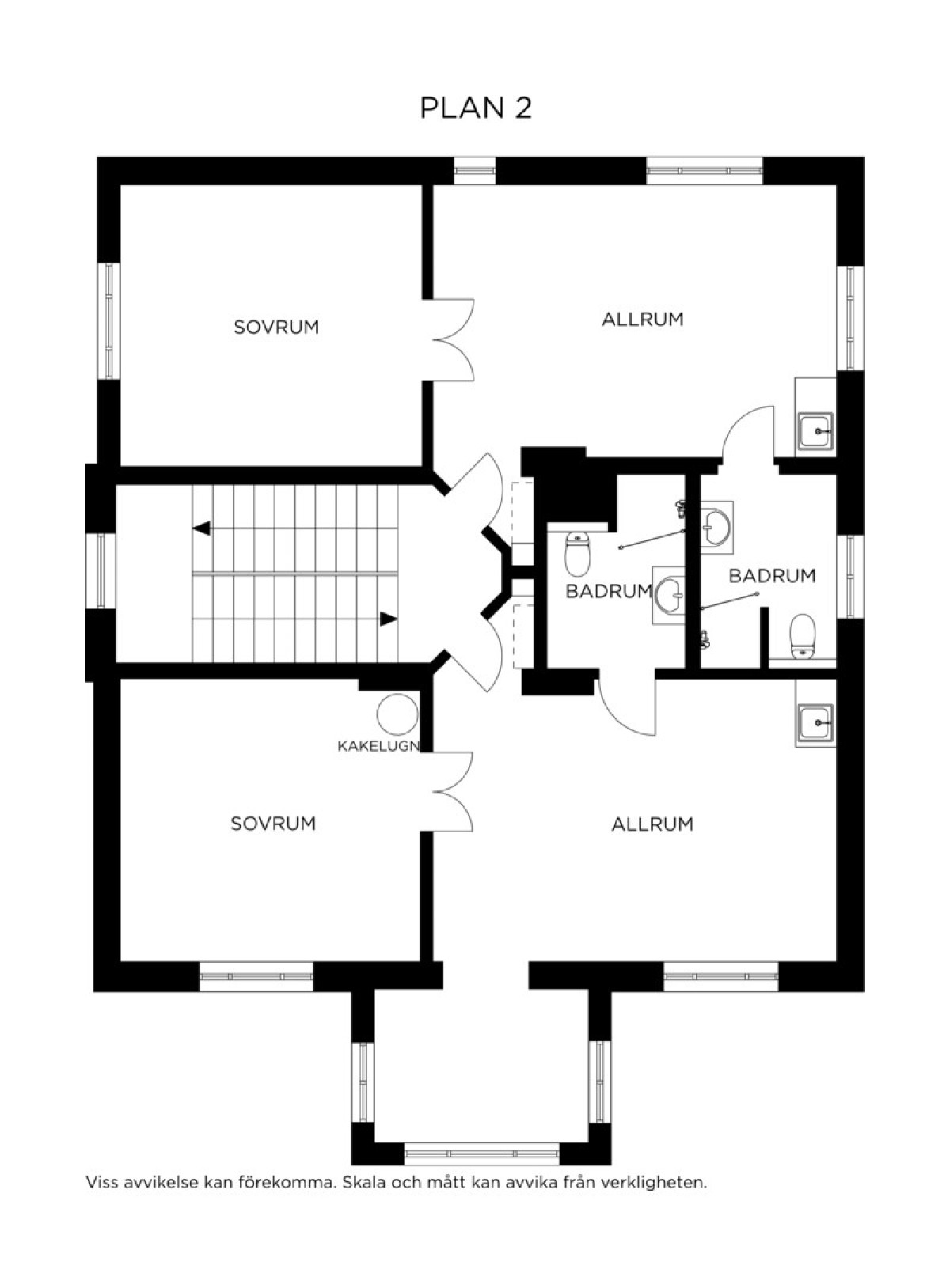 Takhöjd på detta våningsplan är 2,6 m. Släta målade väggar. Vattenburen golvvärme.