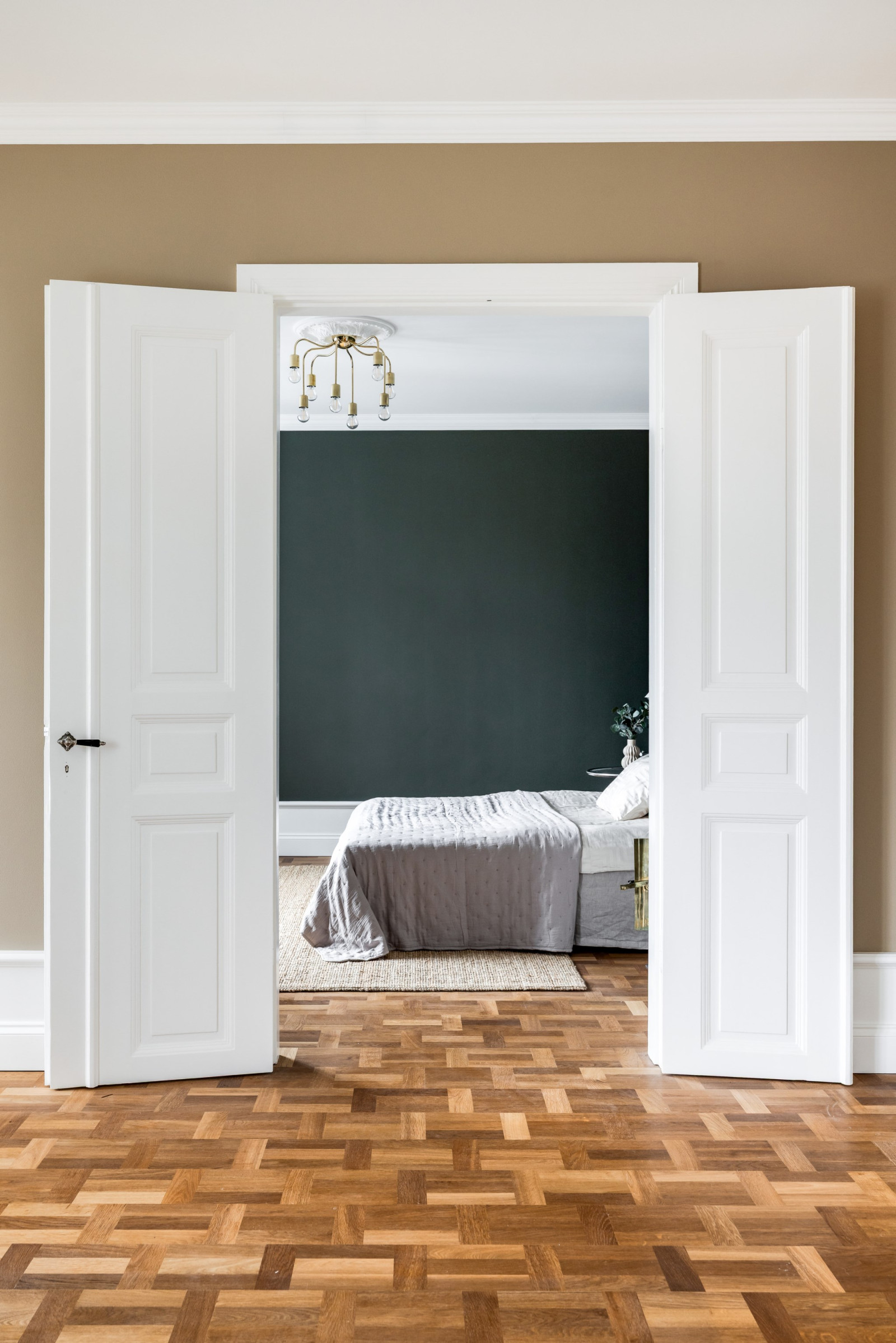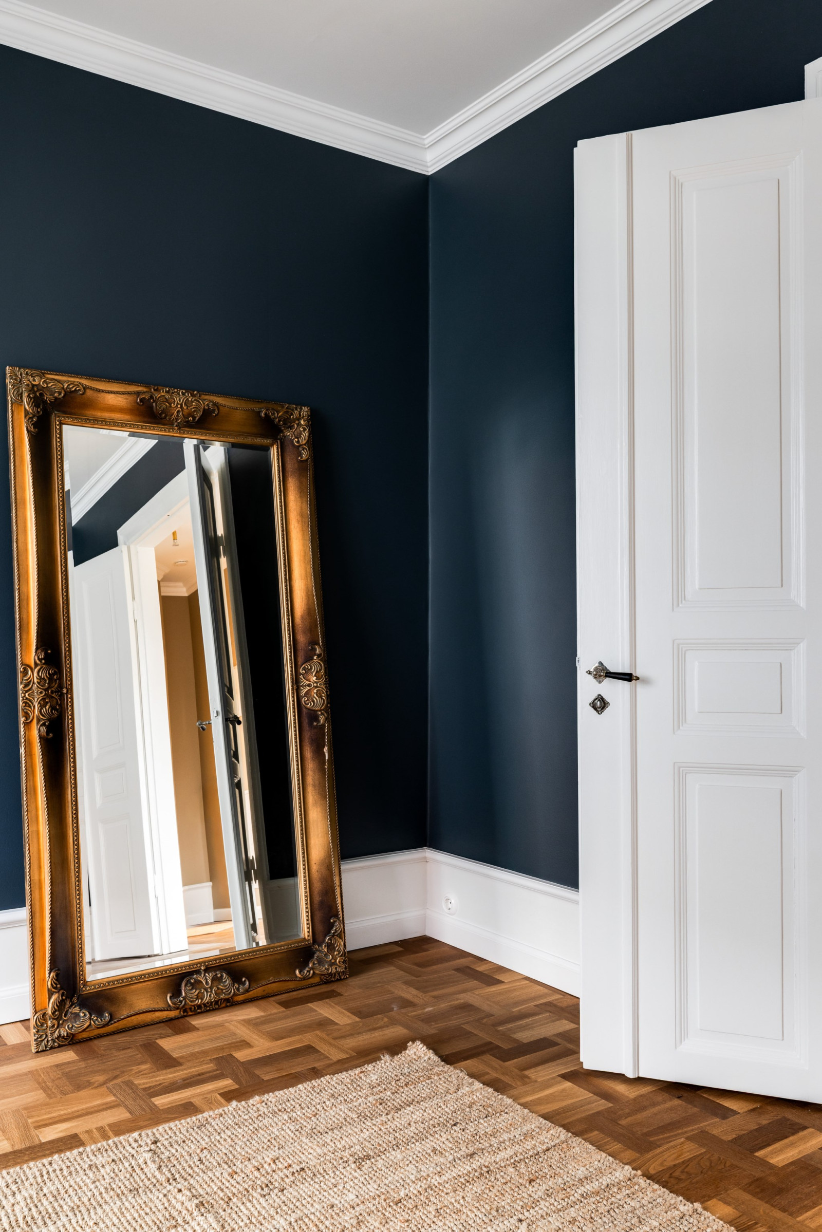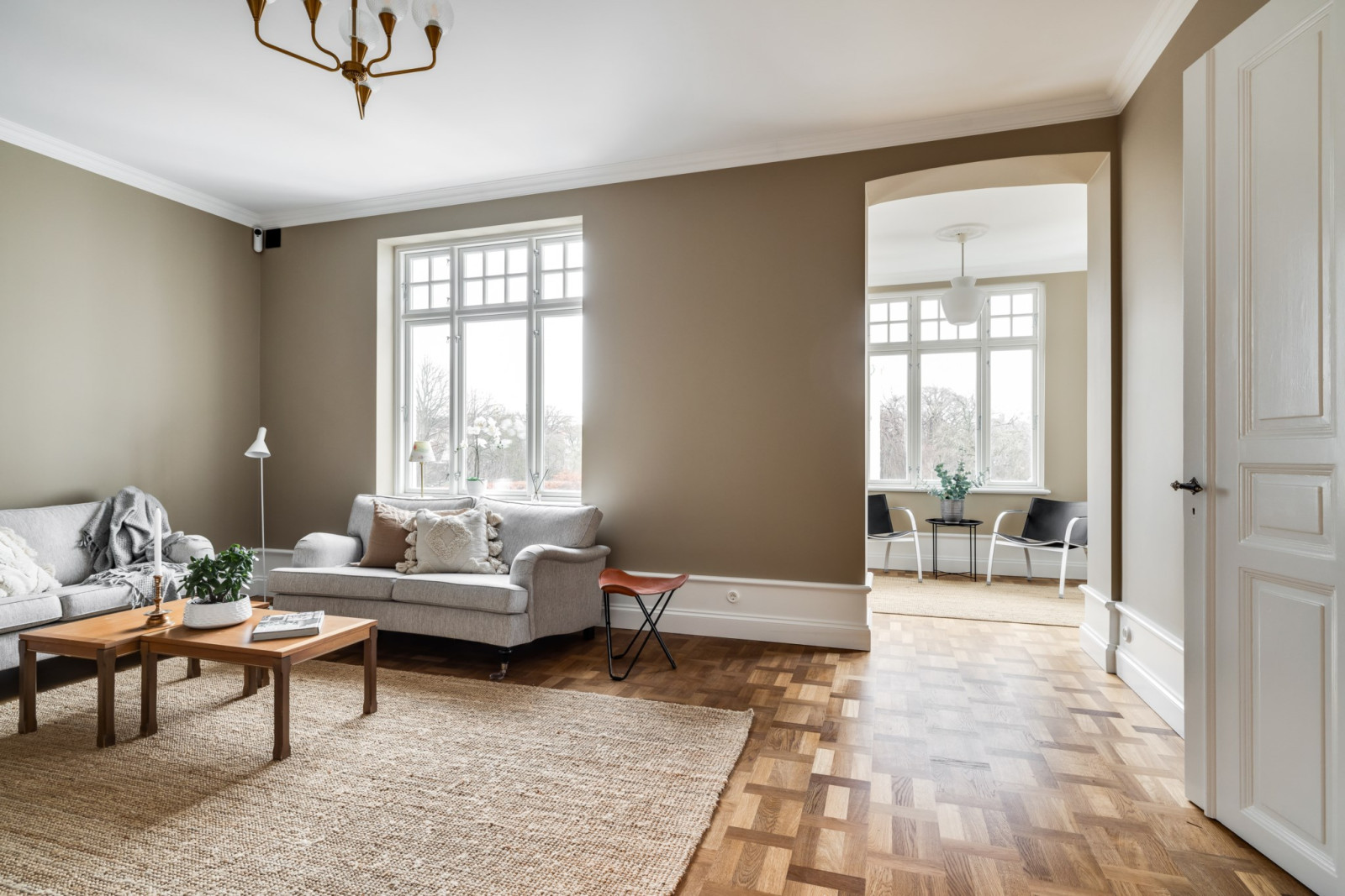 Ekparkett och stuckatur.