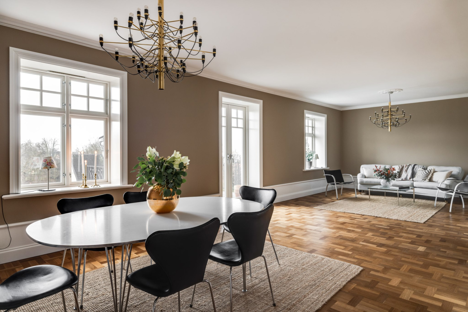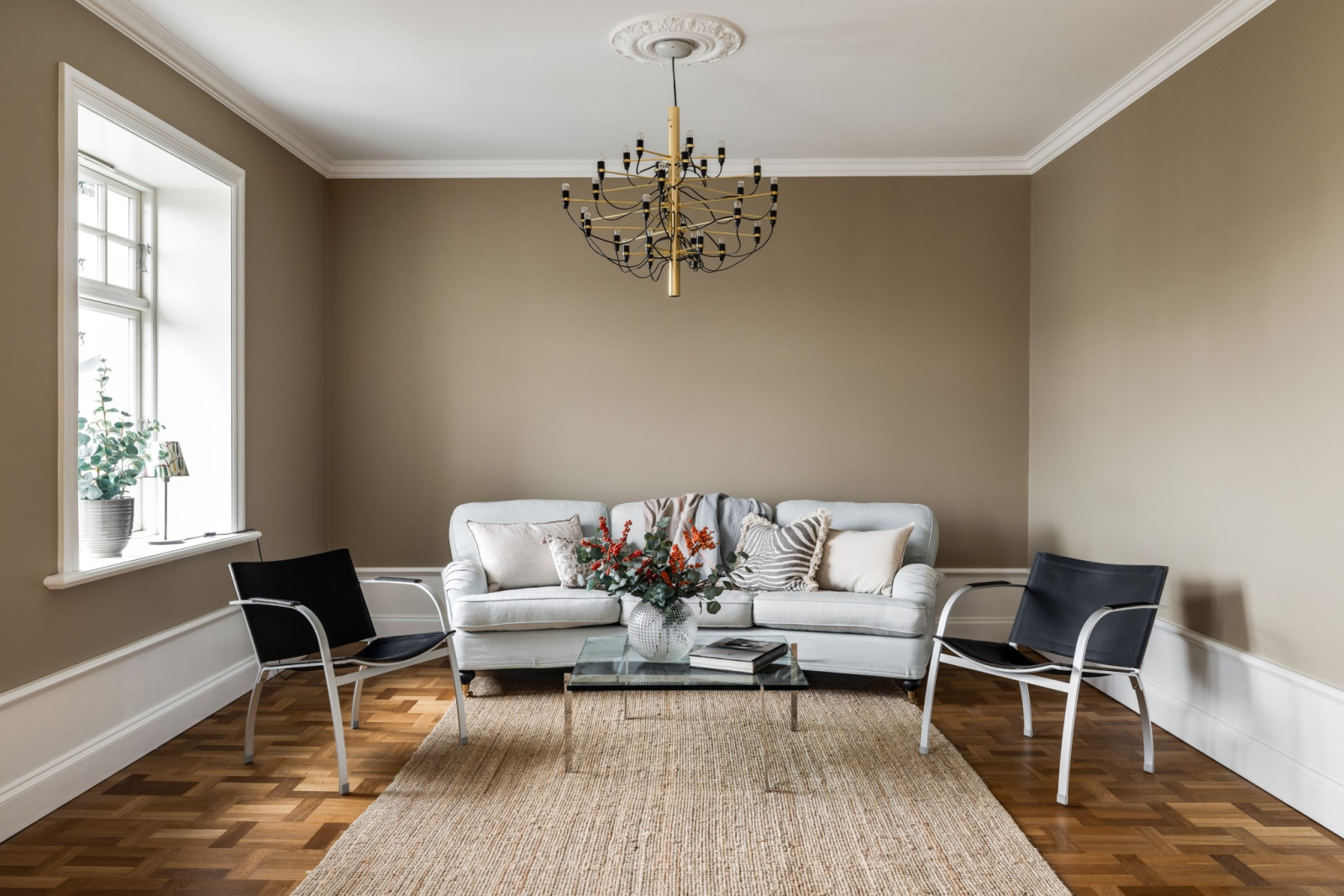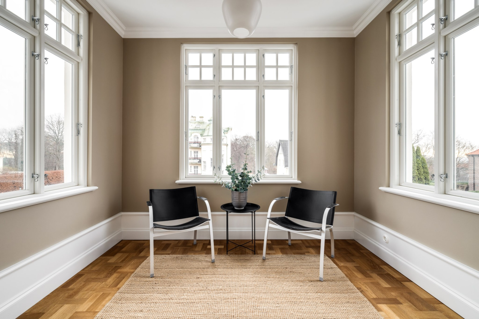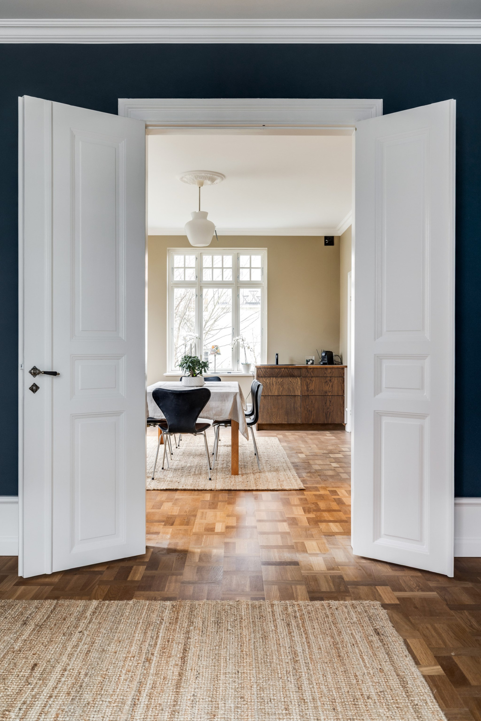 Ekparkett och stuckatur.