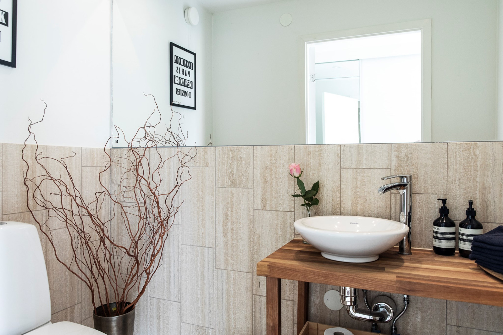 Intill sällskapsytorna finns en smakfull och praktisk gäst-WC – perfekt placerad för både vardag och tillställningar. Här möts stil och funktion i ett genomtänkt utförande som bidrar till helhetsintrycket av ett hem med omtanke i varje detalj.