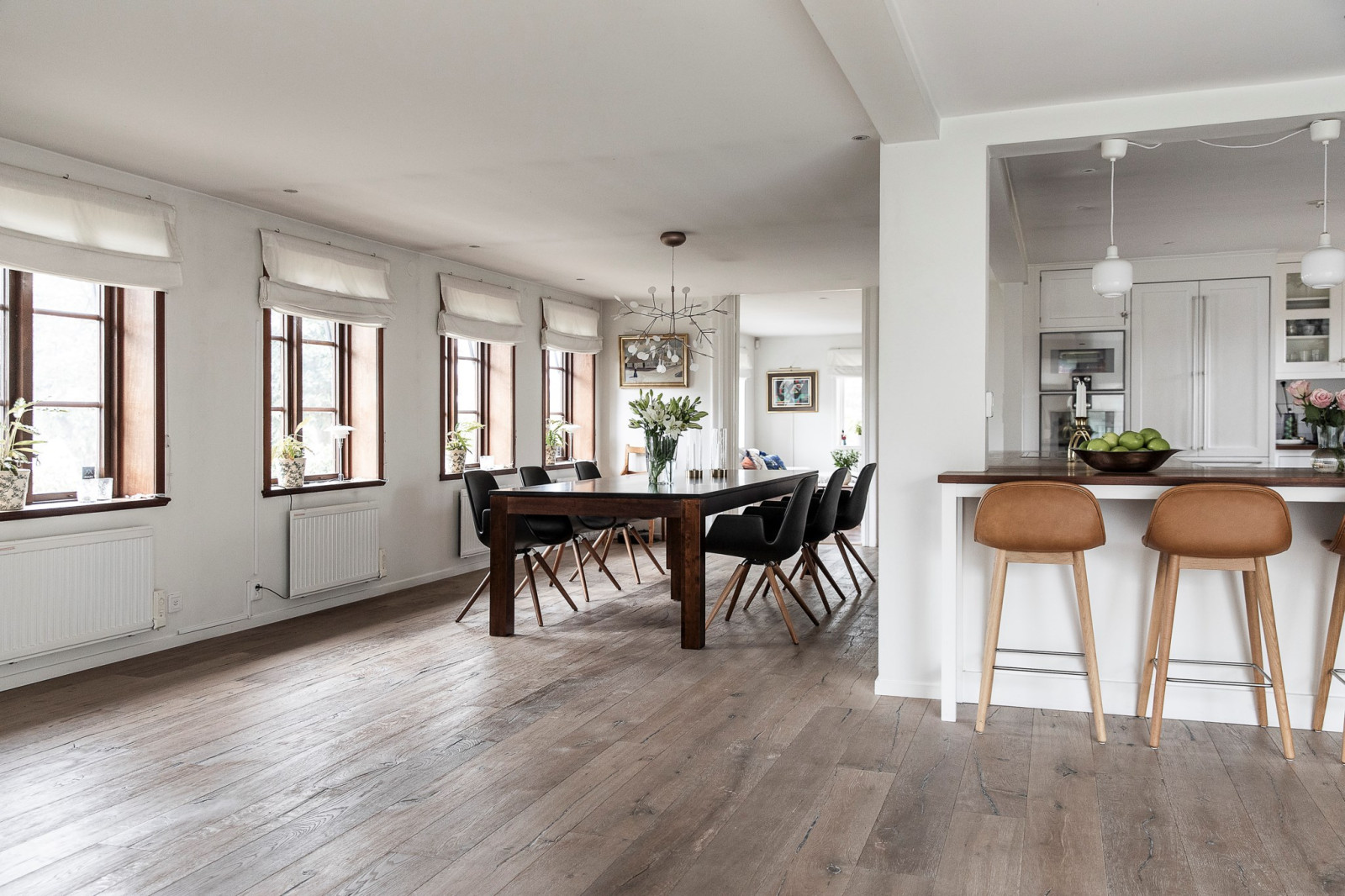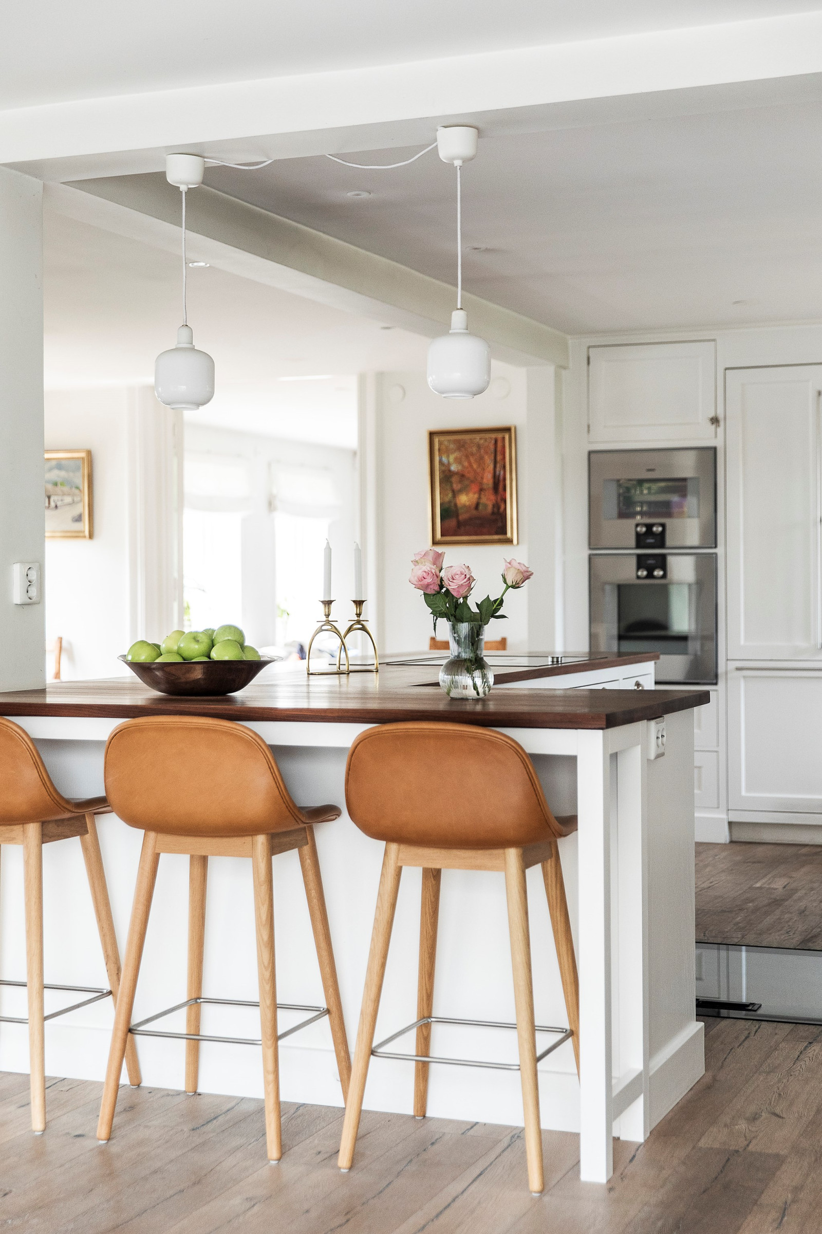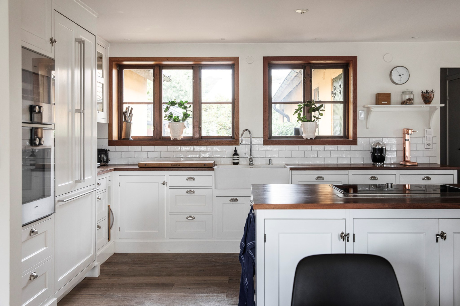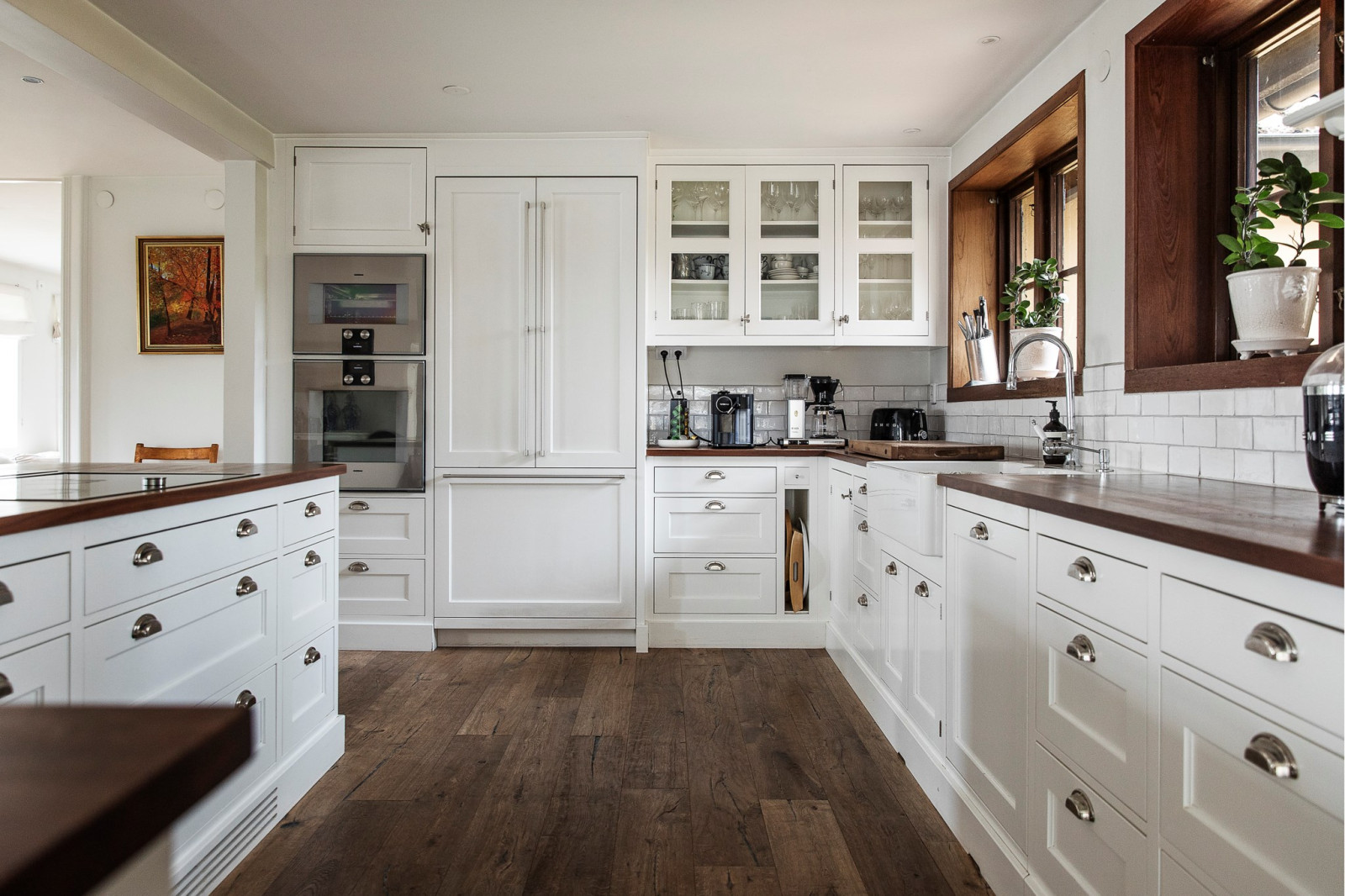 Hemmets hjärta är det stora, inbjudande köket från Kvänum – ett kök som kombinerar klassisk elegans med modern funktionalitet. Här finns gott om arbetsyta tack vare en generös köksö, samt plats för ett stort matbord där hela familjen får plats. Köket har fin utsikt mot baksidan och erbjuder en härlig kontakt med sällskapsytorna, vilket skapar ett socialt flöde mellan matlagning, måltider och umgänge. Den exklusiva maskinparken är noggrant utvald för att möta höga krav på både design och prestanda – ett kök att trivas i varje dag.