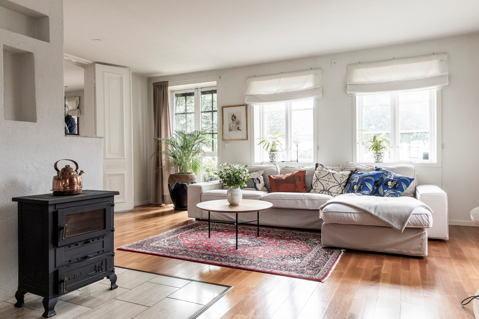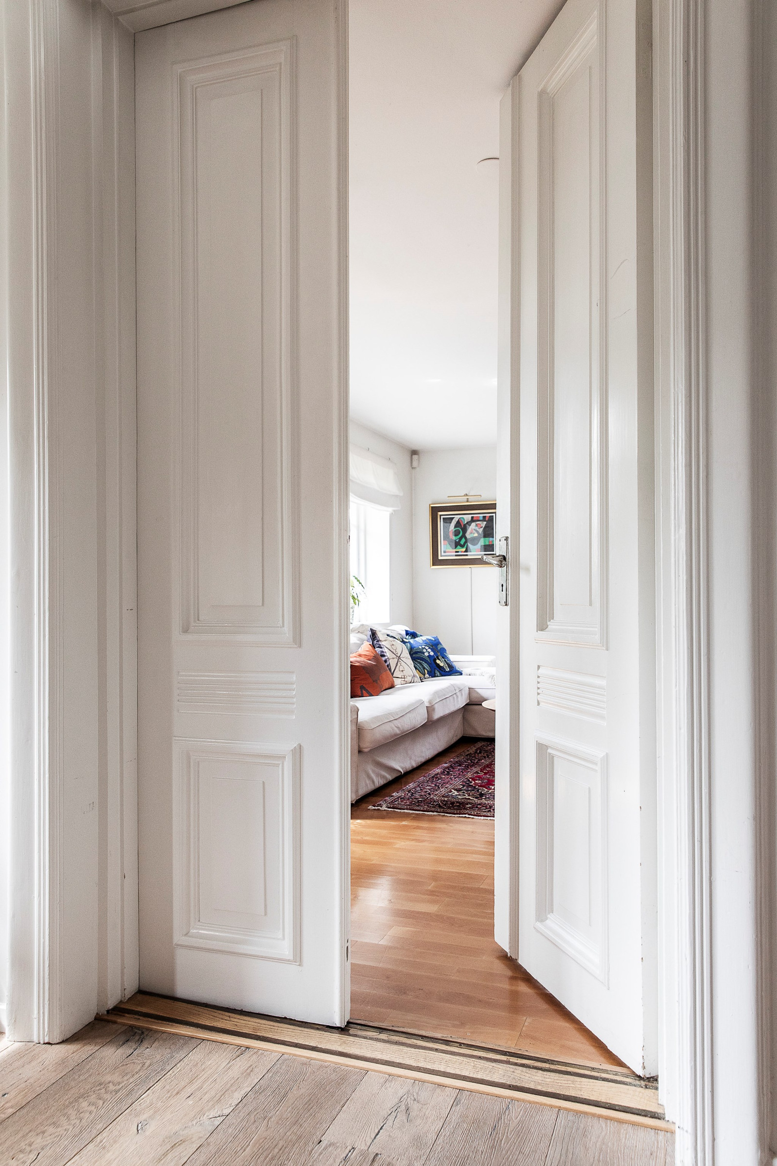 Ett komplett boende som kan fungera som en egen del eller som en del av det större huset beroende på behov. En unik och hemtrevlig bostadsdel, där det mindre huset med egen själ binds samman med det större via eleganta pardörrar – en vacker detalj som skapar både funktion och charm.