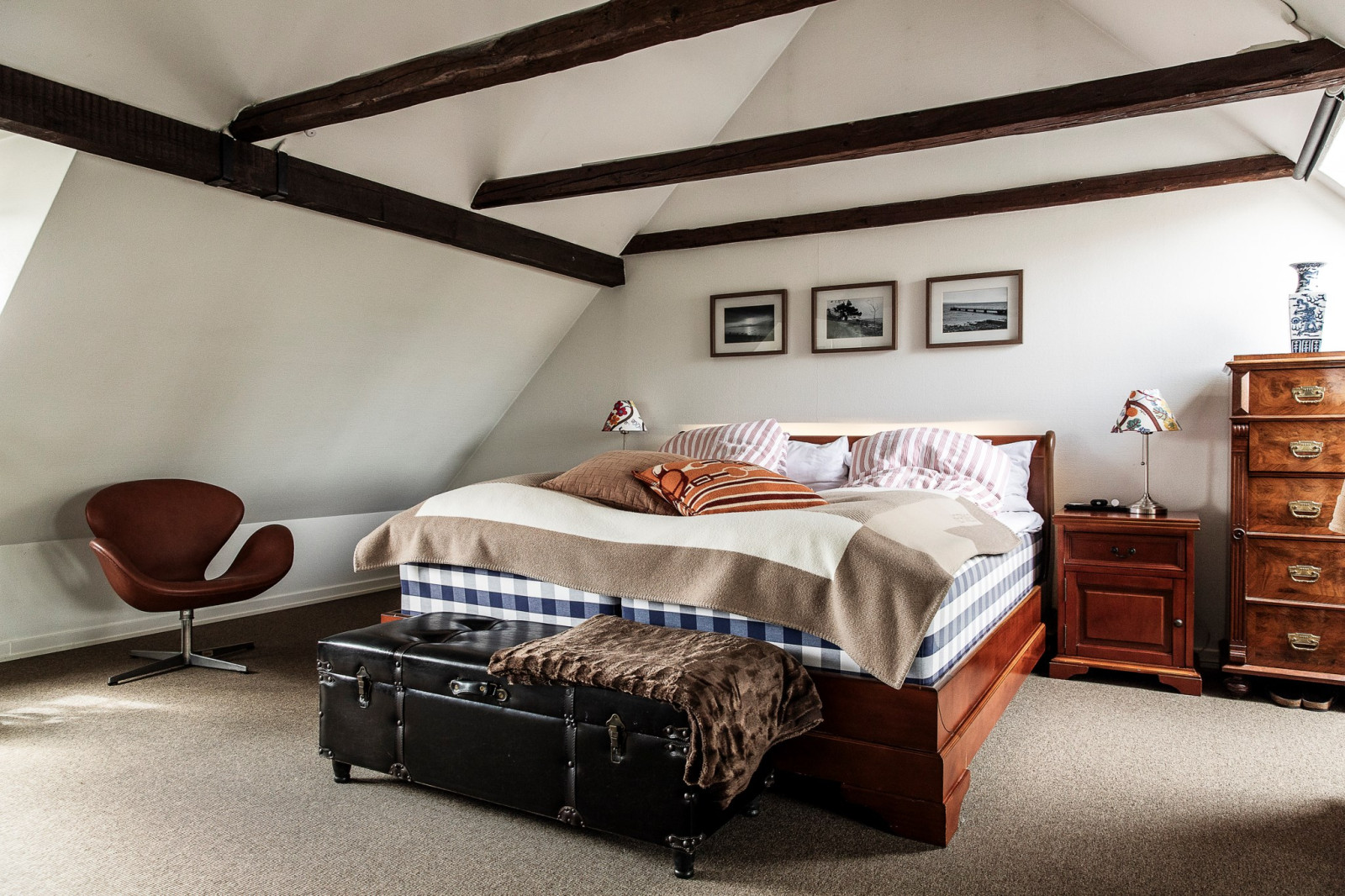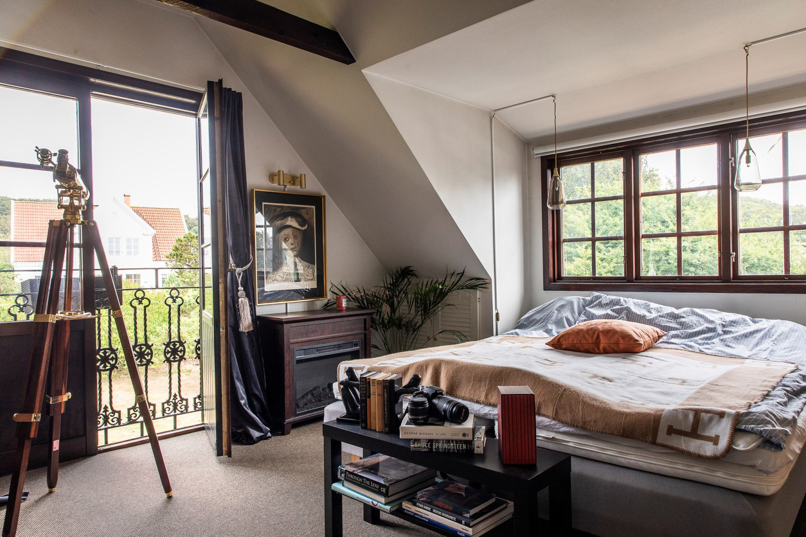 Ett generöst tilltaget sovrum som är lugnt beläget och erbjuder en privat oas att koppla av i. De vackra takbjälkarna ger rummet karaktär och en varm, ombonad känsla. Här finns fransk balkong och gott om plats för både stor säng och förvaring, och den rofyllda miljön gör det till en perfekt plats för vila och återhämtning.