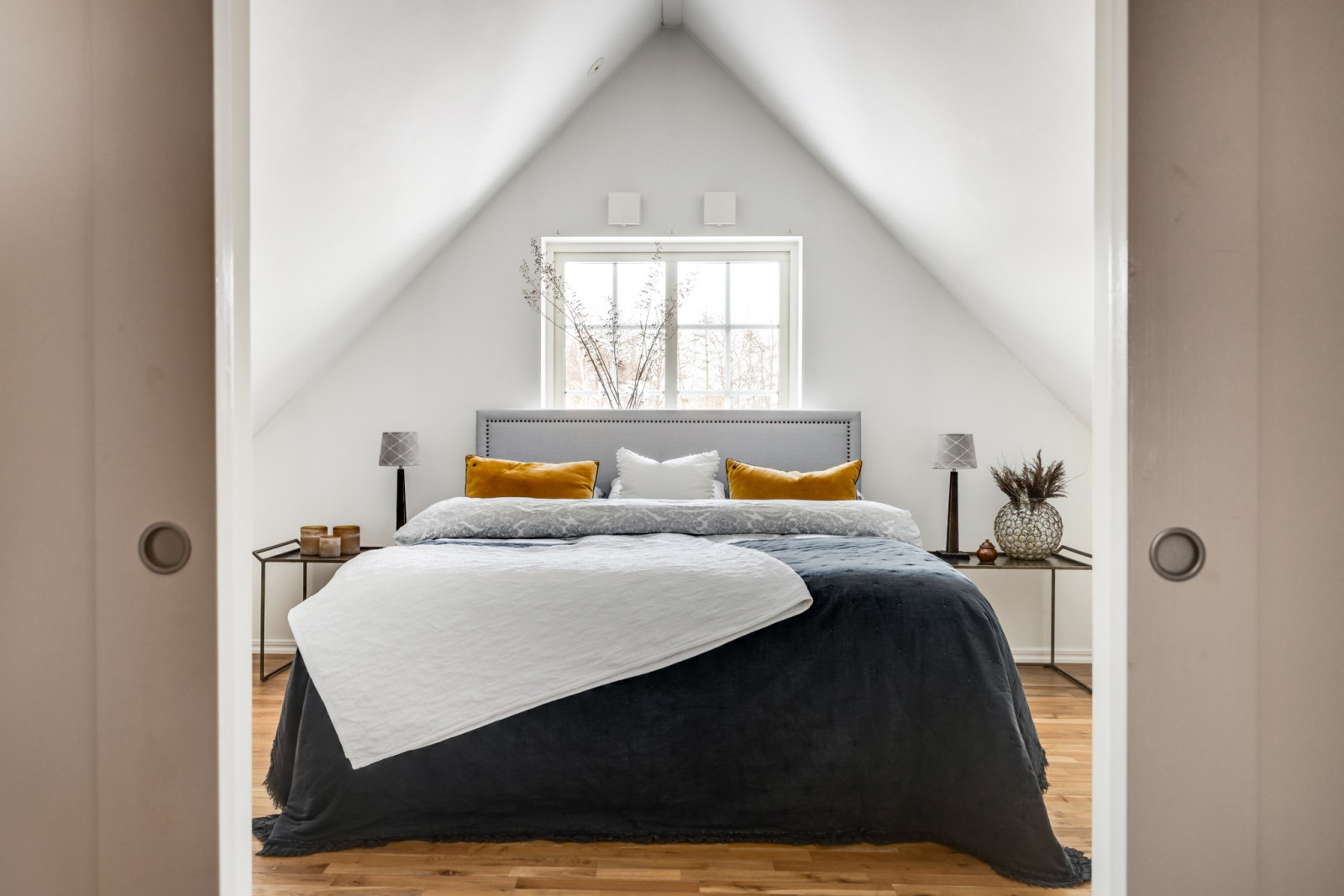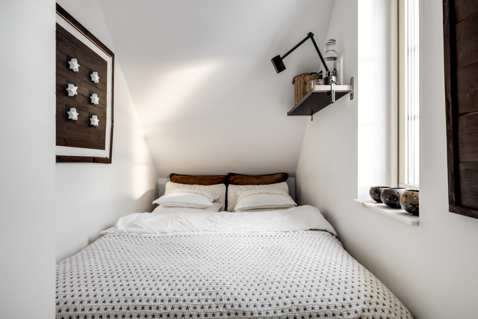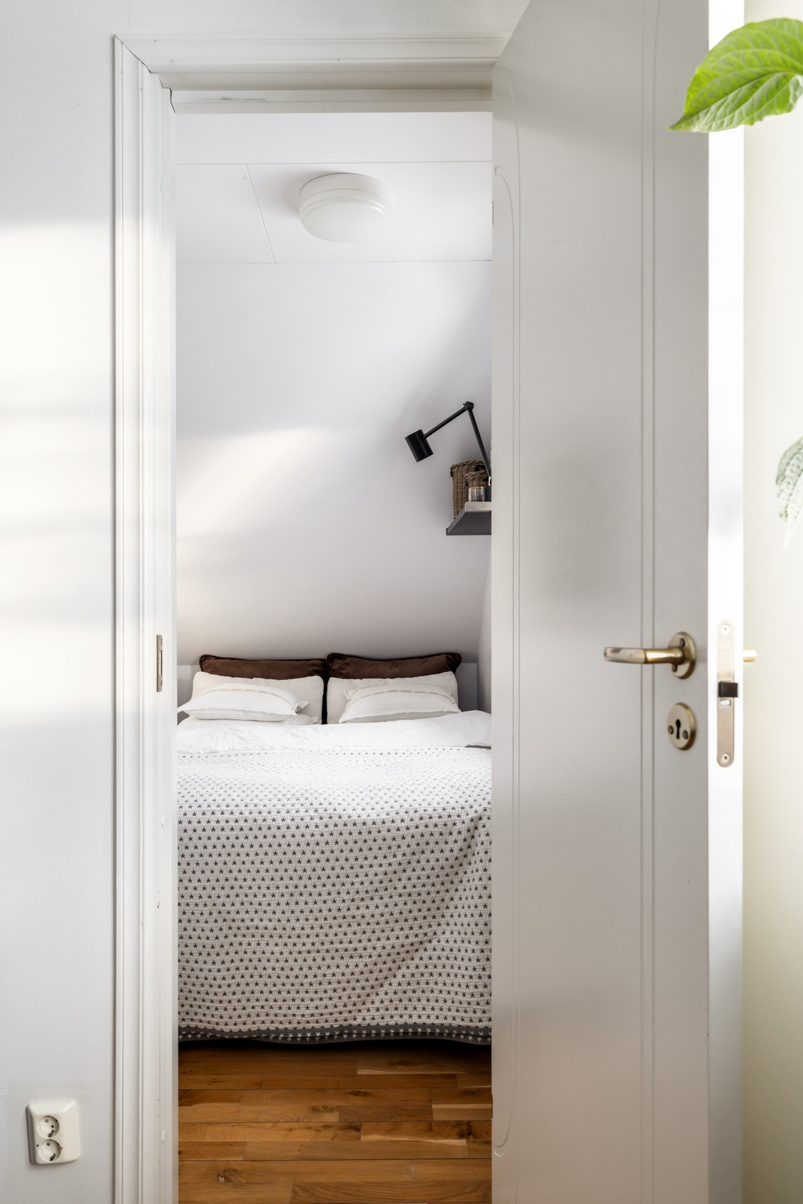 med skeppsgolv och klädkammare (idag används klädkammaren till "sovrum" för att frigöra plats i rummet)