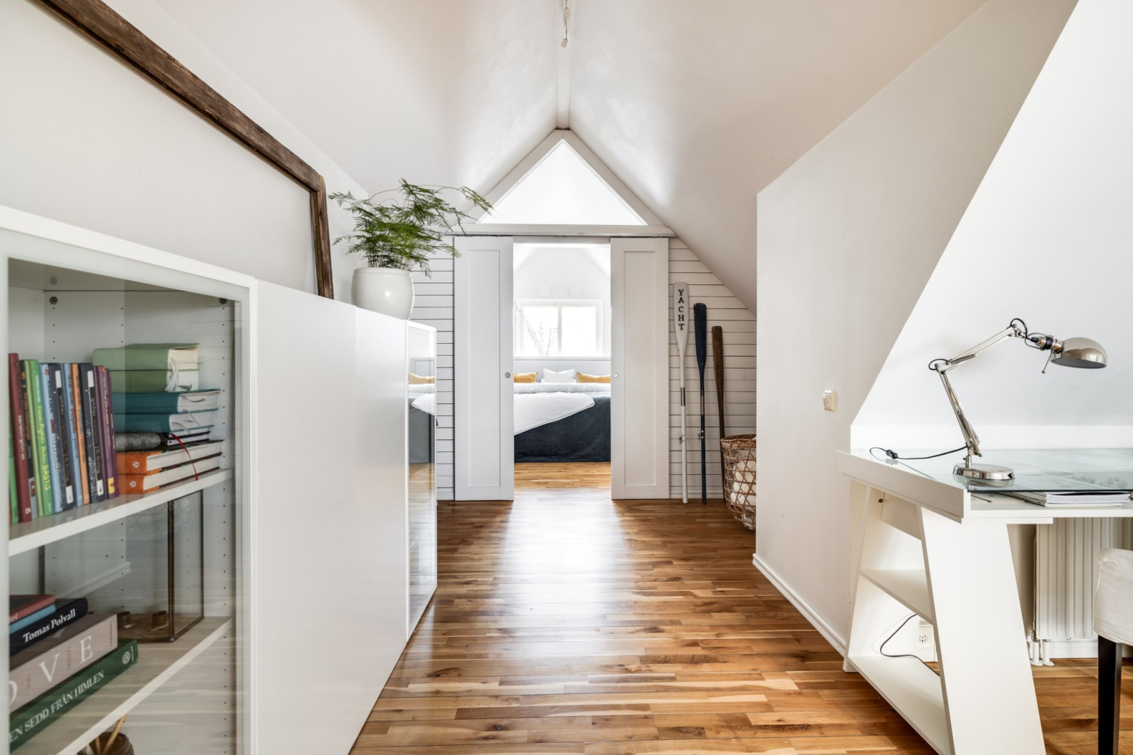 rymlig med fönster och går därför också bra att använda till kontor eller gästrum