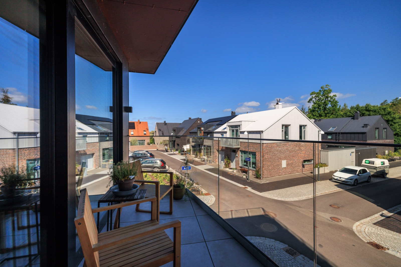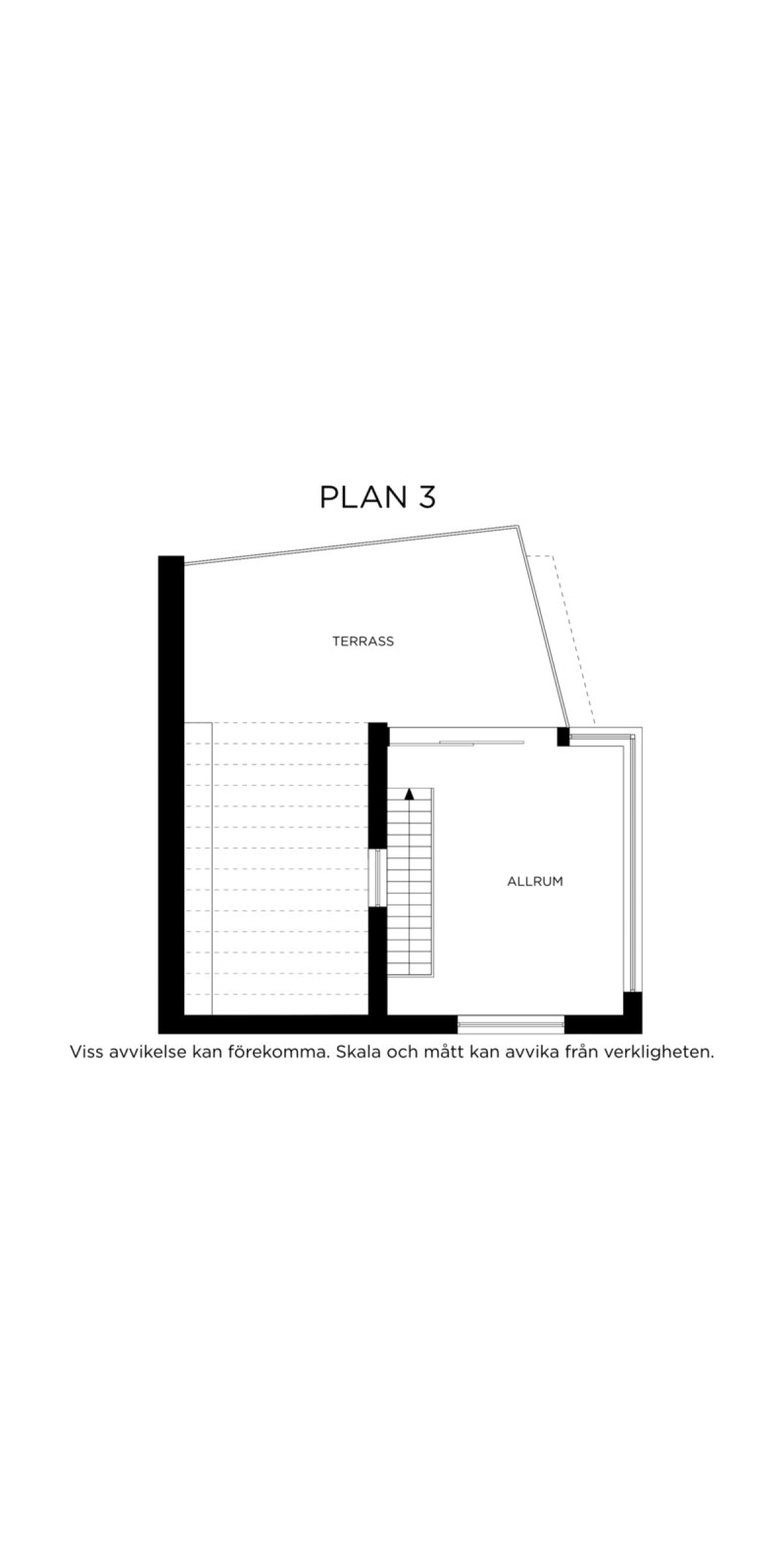 På husets tredje plan möts ljus, rymd och modern arkitektur. Här finns ett mindre kök med diskmaskin, vilket gör våningen perfekt som lounge, gästdel eller hemmakontor. Genom en altandörr nås en stor terrass och fantastiska vyer över takåsarna och Öresund – en plats som bjuder in till både avkoppling och sociala stunder.