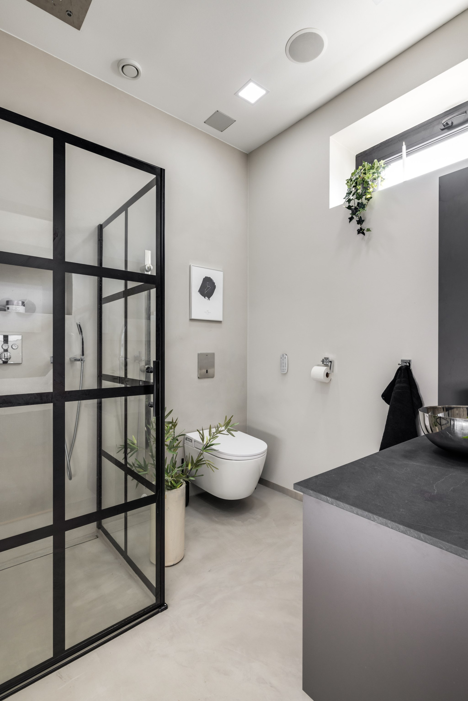 Även denna våning håller samma höga standard som resten av huset, med vattenburen golvvärme, inbyggda takhögtalare och flexibla belysningsskenor.