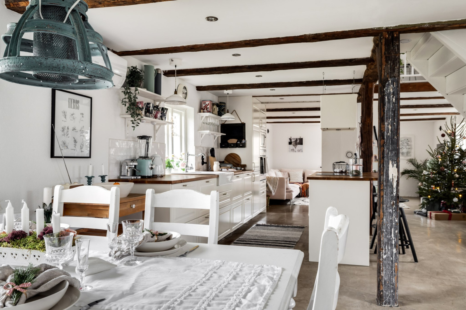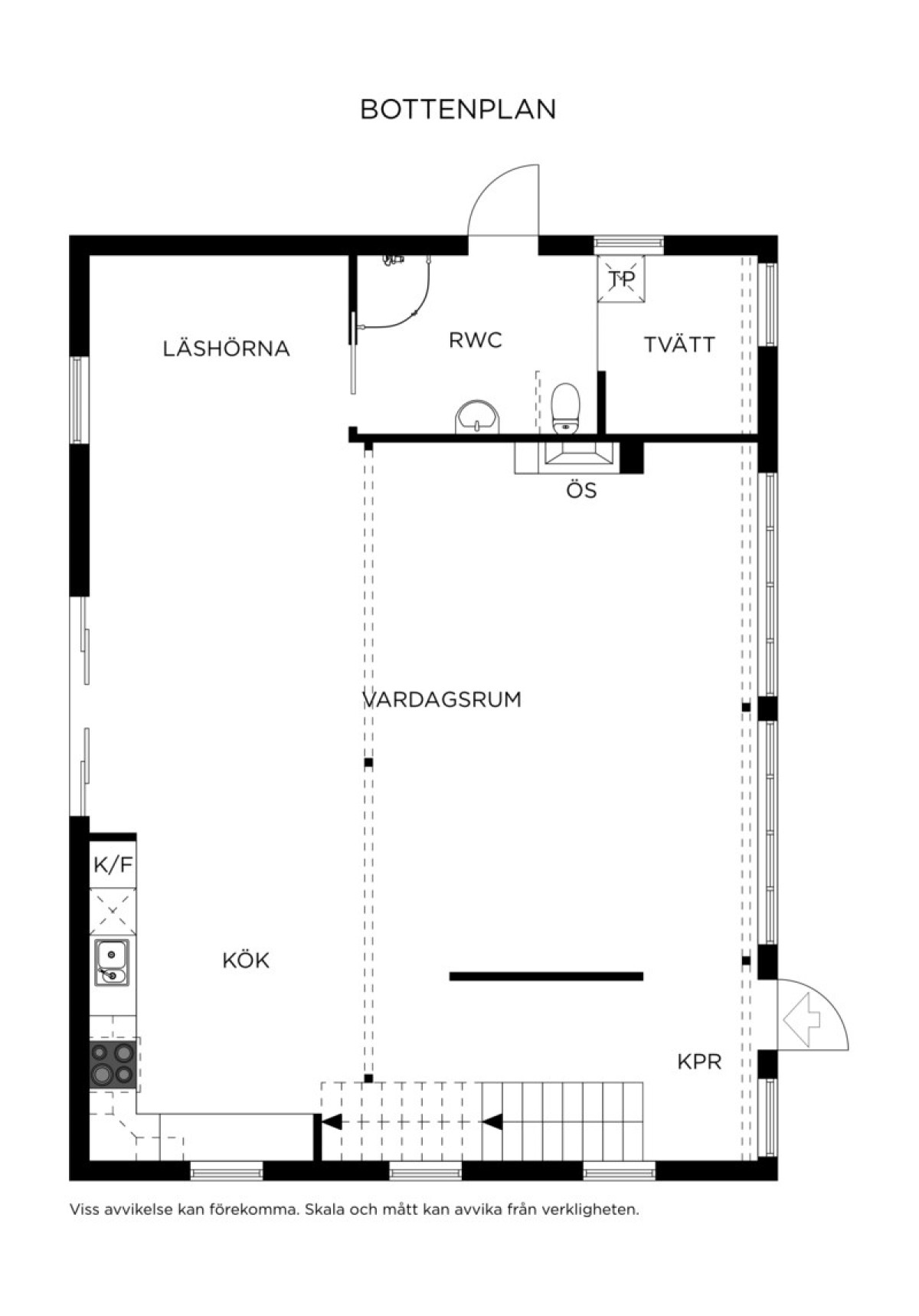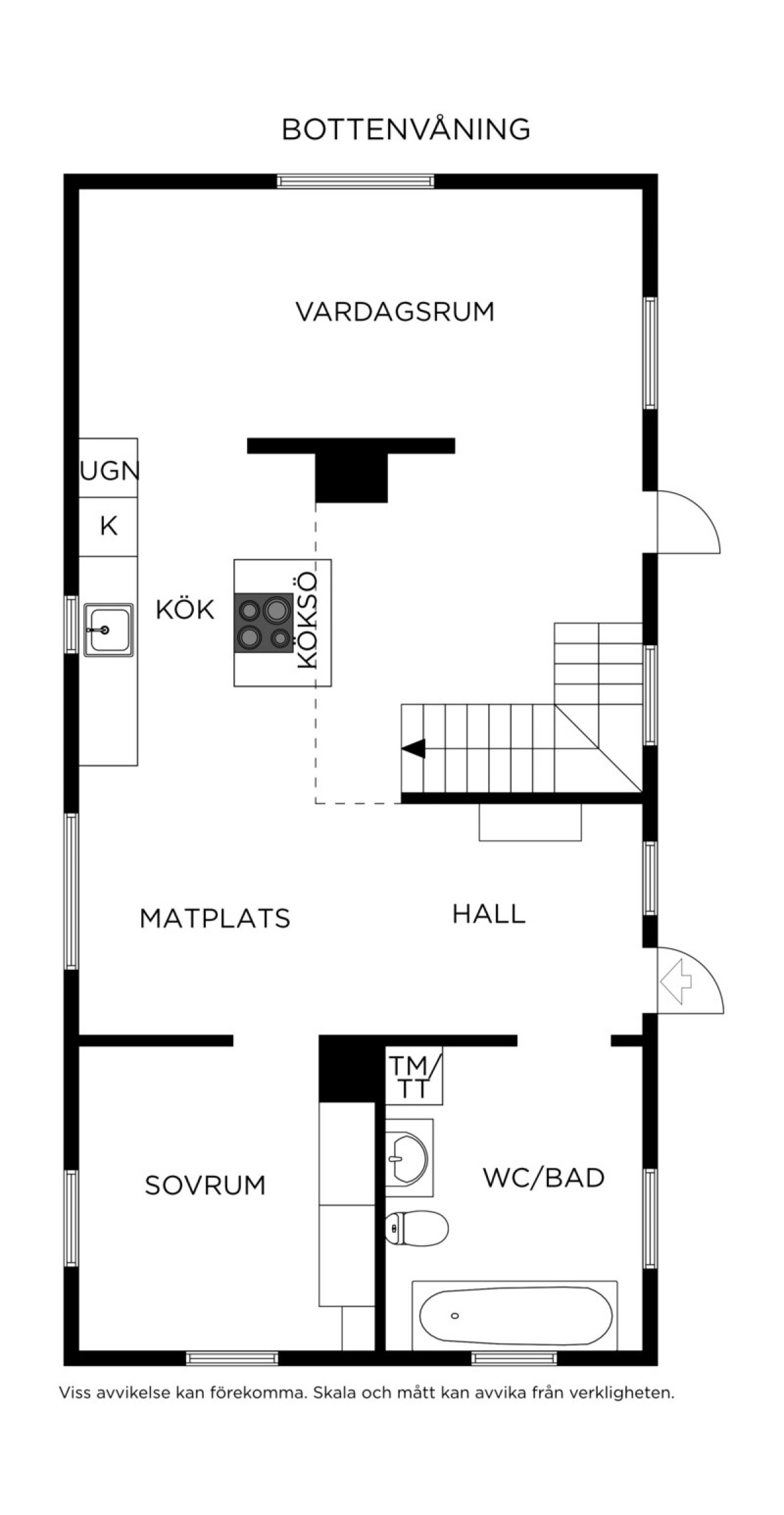 • Öppen planlösning med vardagsrum, matplats och kök