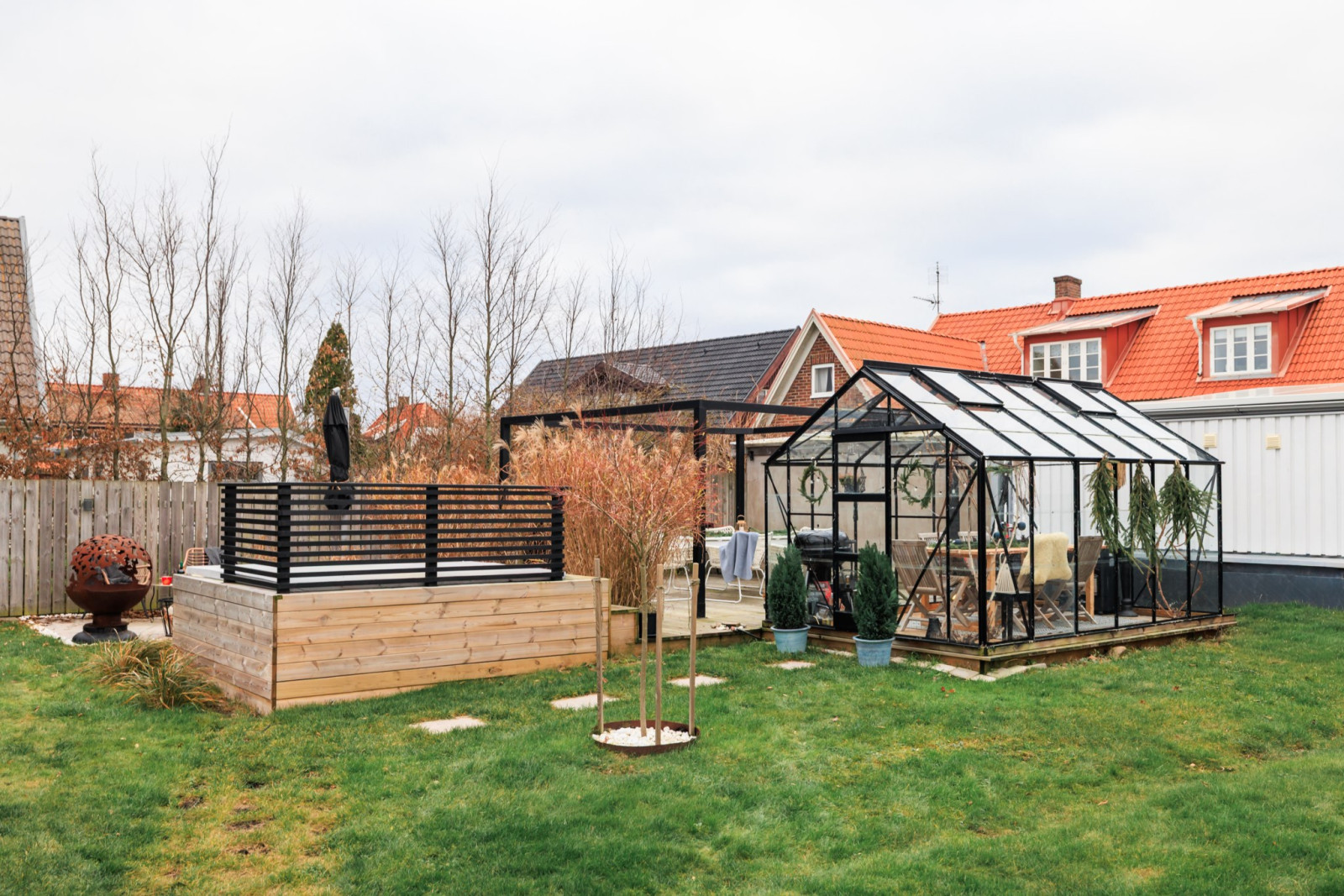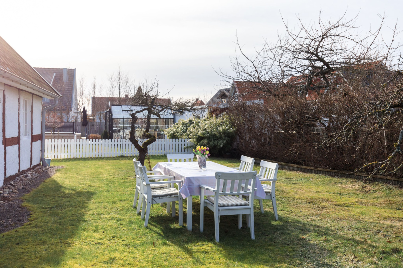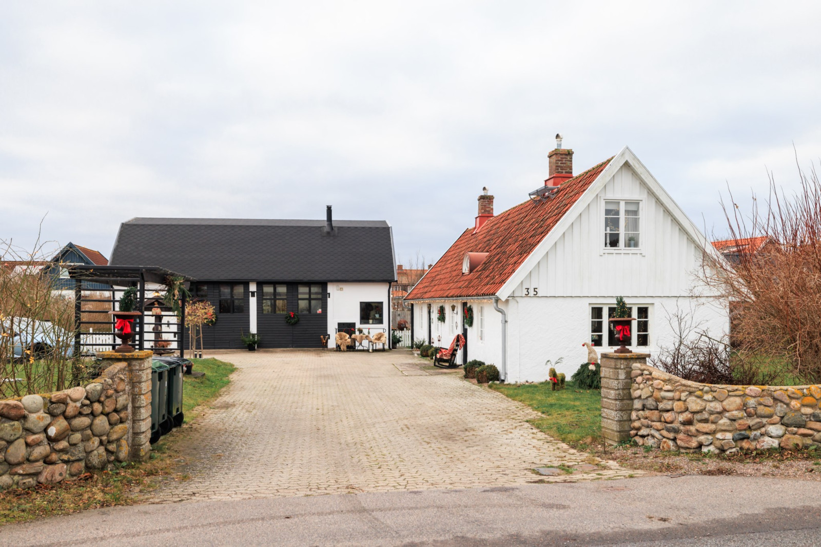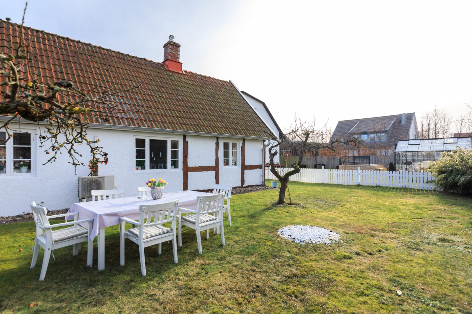 • Med 2 stora skjutdörrspartier mot trädgårdens framsida (Bygatan).