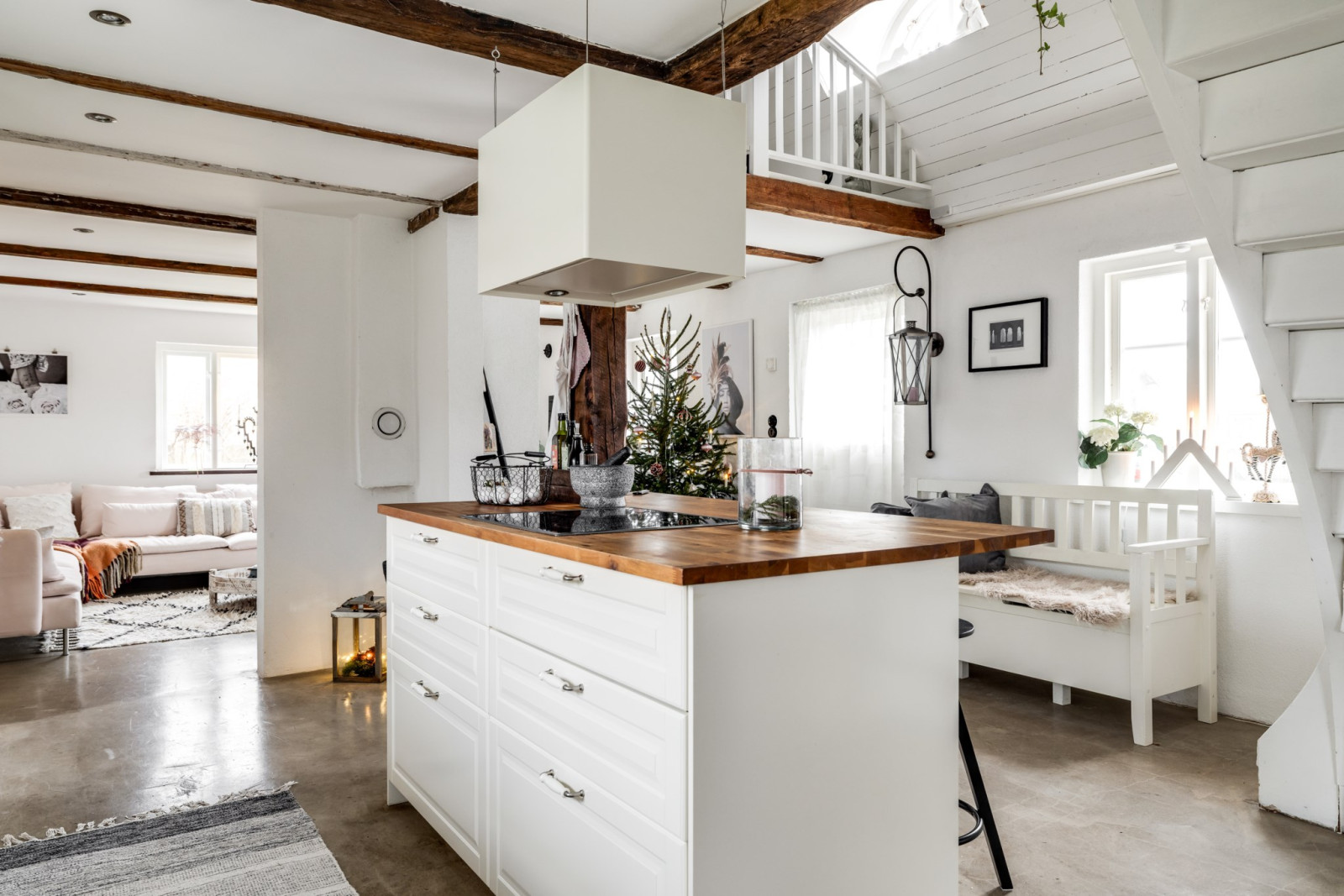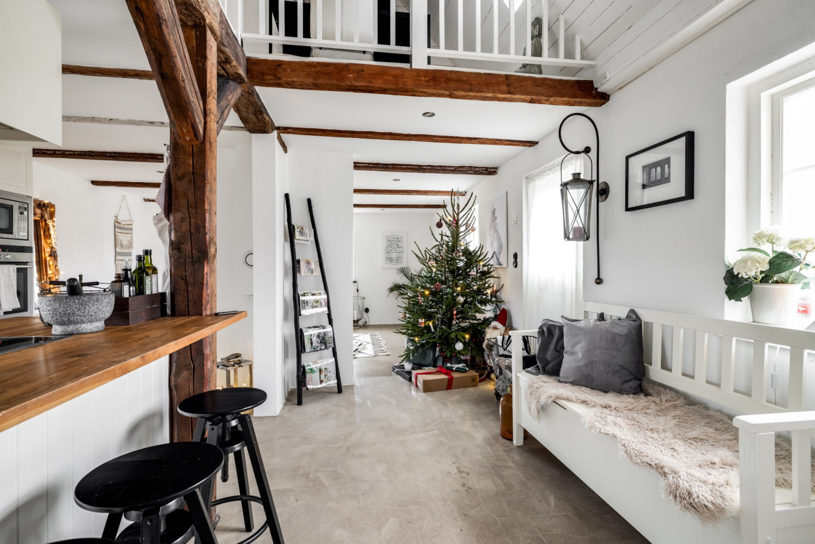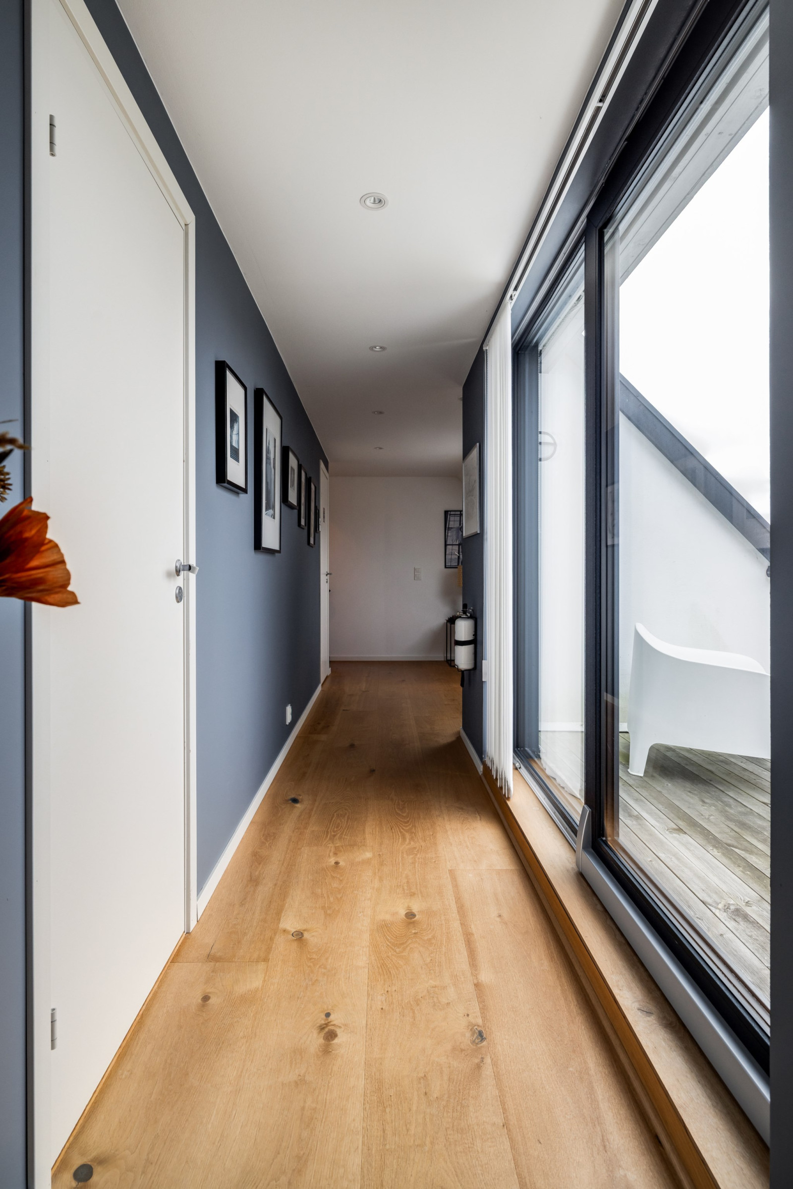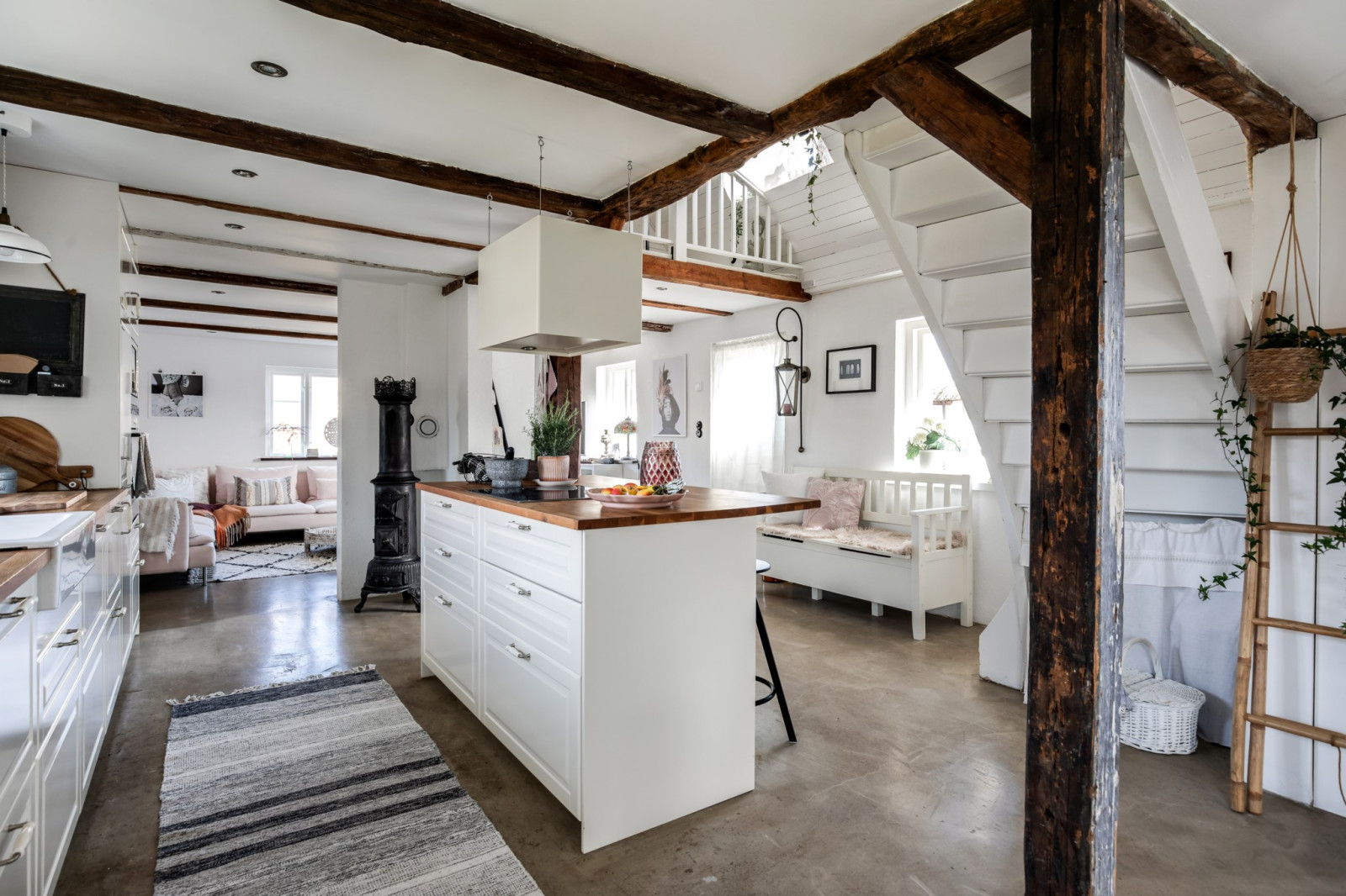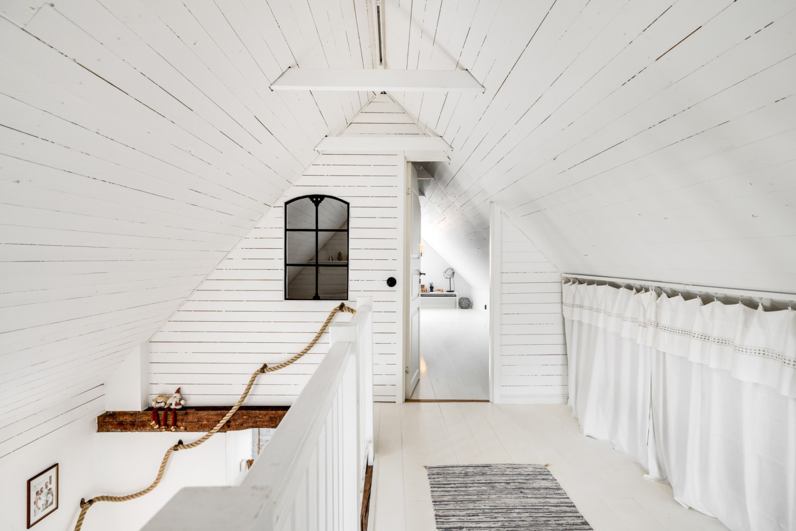 • Leder från trappa via alla rum och balkong