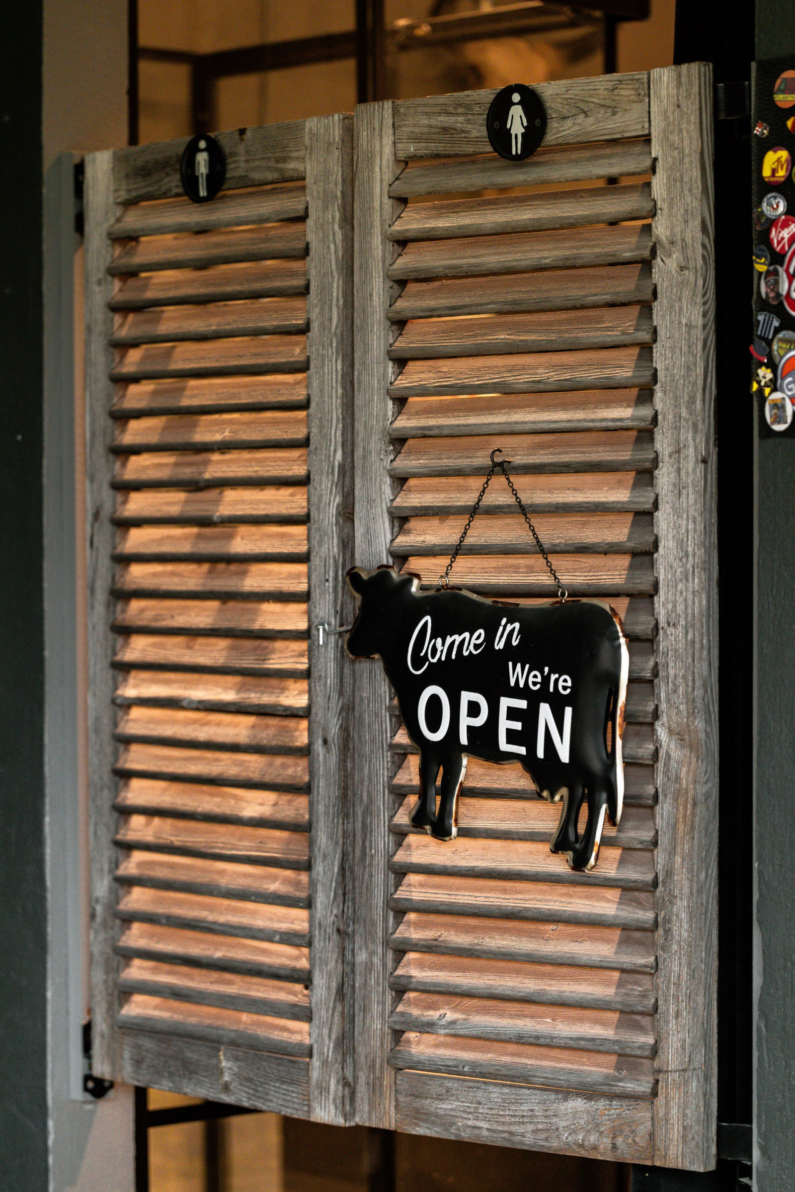 • Skjutdörr, vit, byggd av gammalt virke från bostaden (2016)
