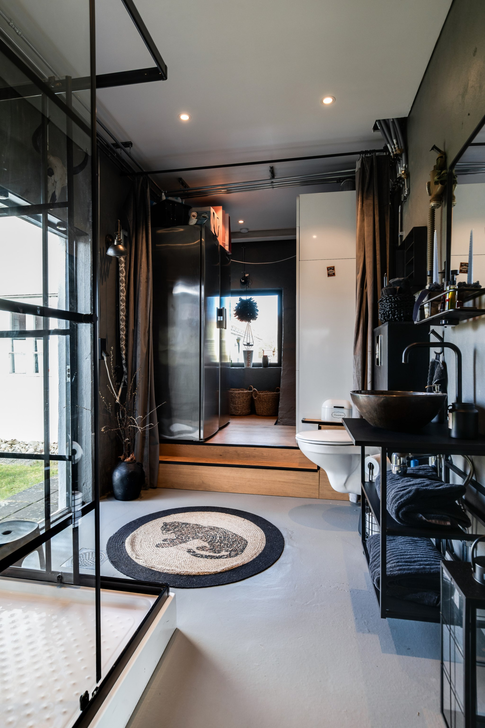 • Walkthrough-passage bakom rumsavskiljare med garderober?