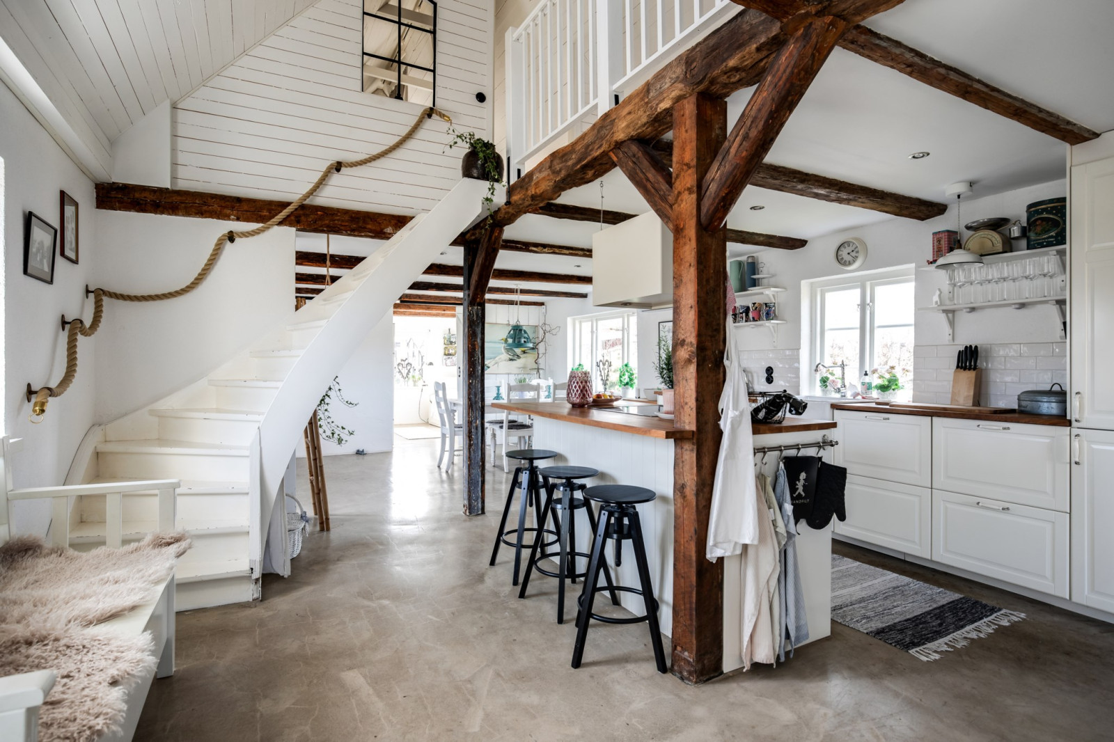 • Vitmålade, putsade väggar