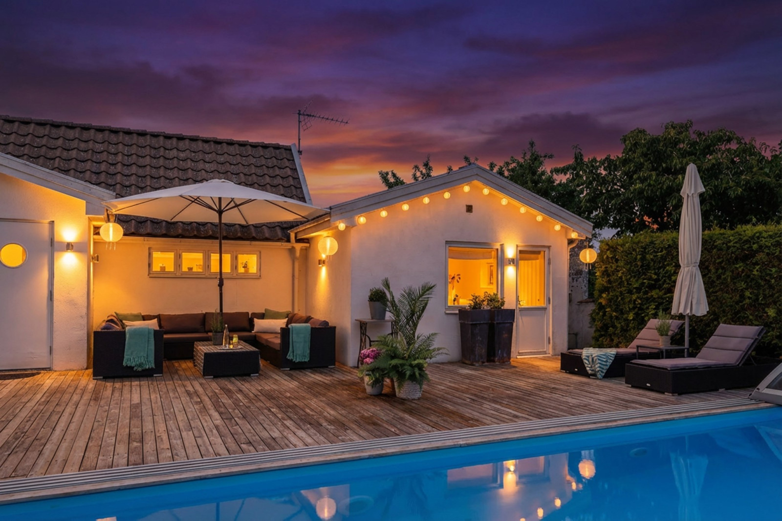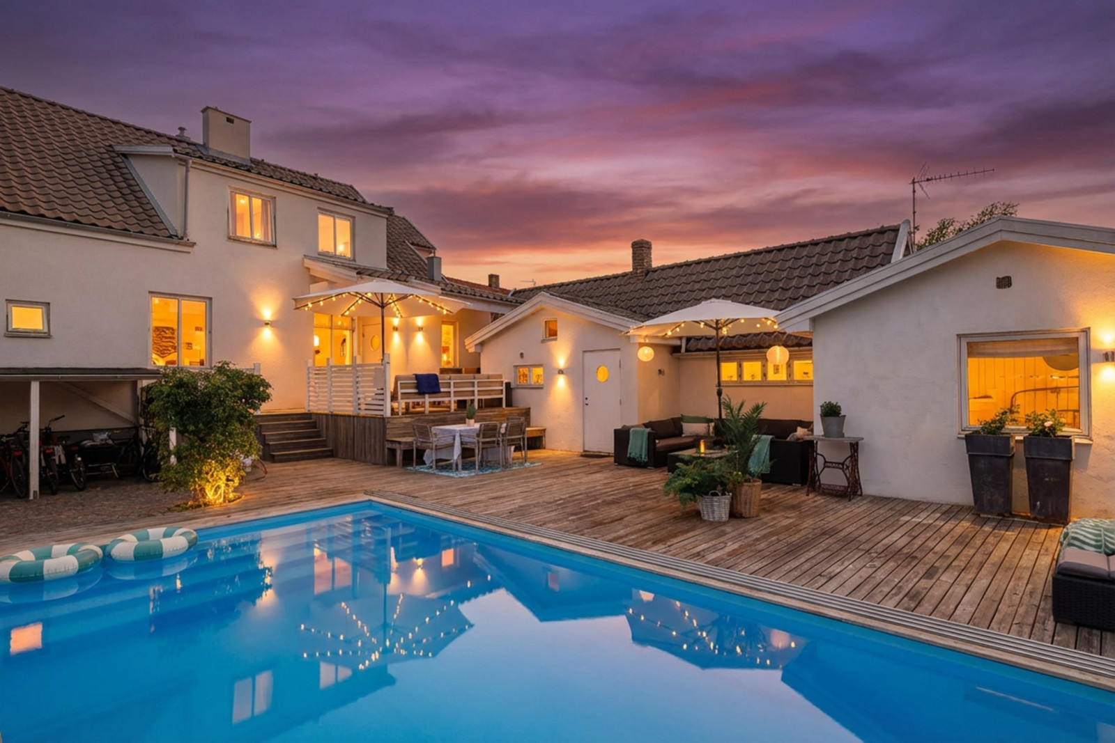 2014 Anläggning av pool (uppvärmd med värmeväxlare) och pooltak. Ny diskmaskin. Staket altan och pooldäck.