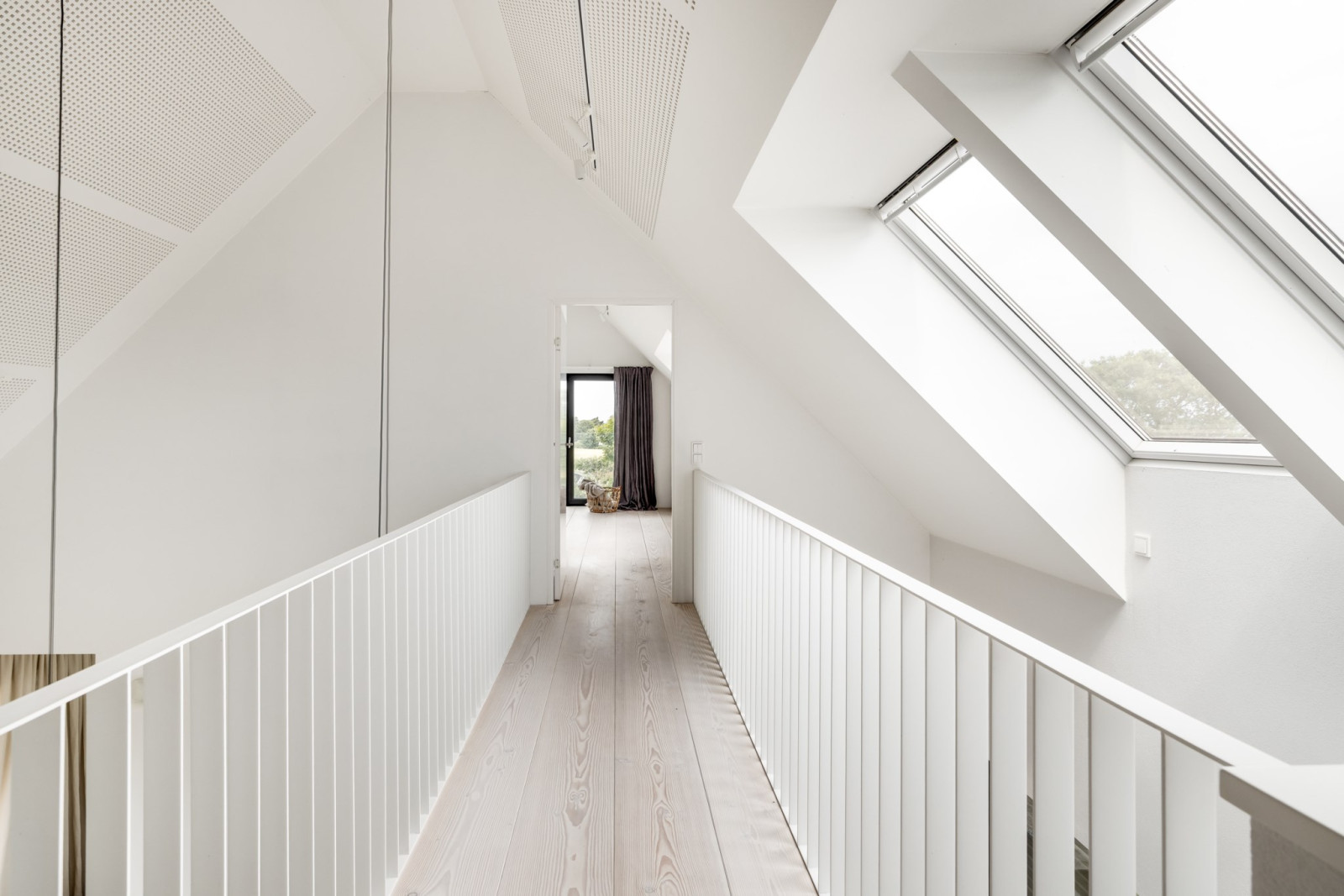 Med elva takfönster badar ovanvåningens ytor i ljus och rymd. Sällskapsytorna är ljusa och inbjudande, skapade för både vardag och fest.