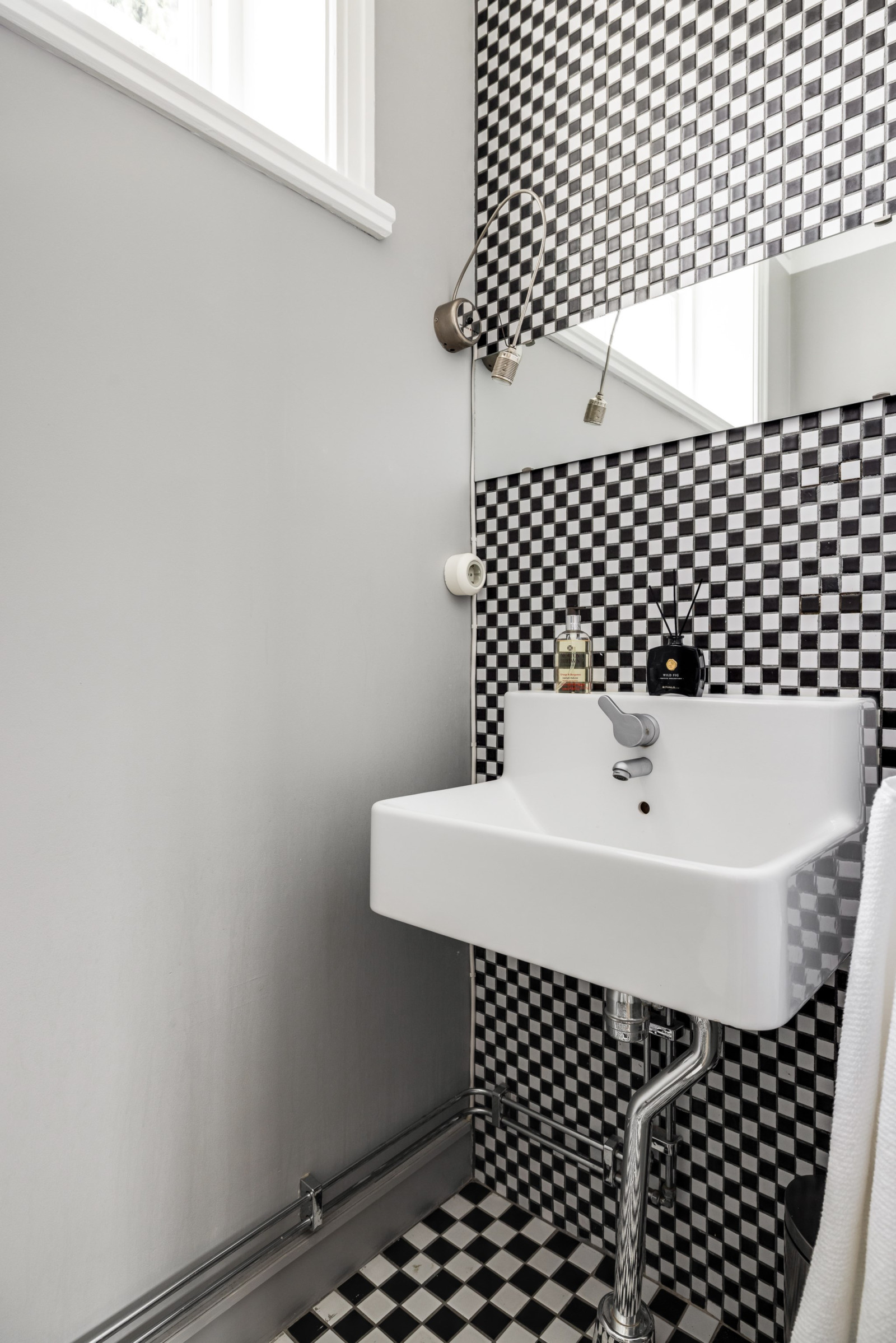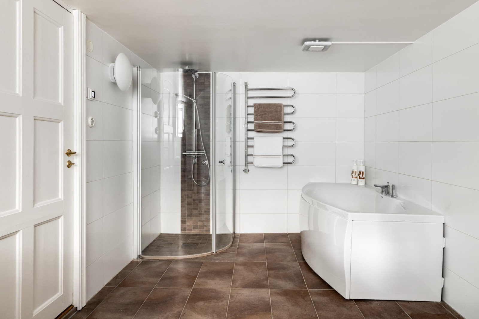 2023 ny dusch, duschvägg, kommod och spegelskåp i badrum övervåning
