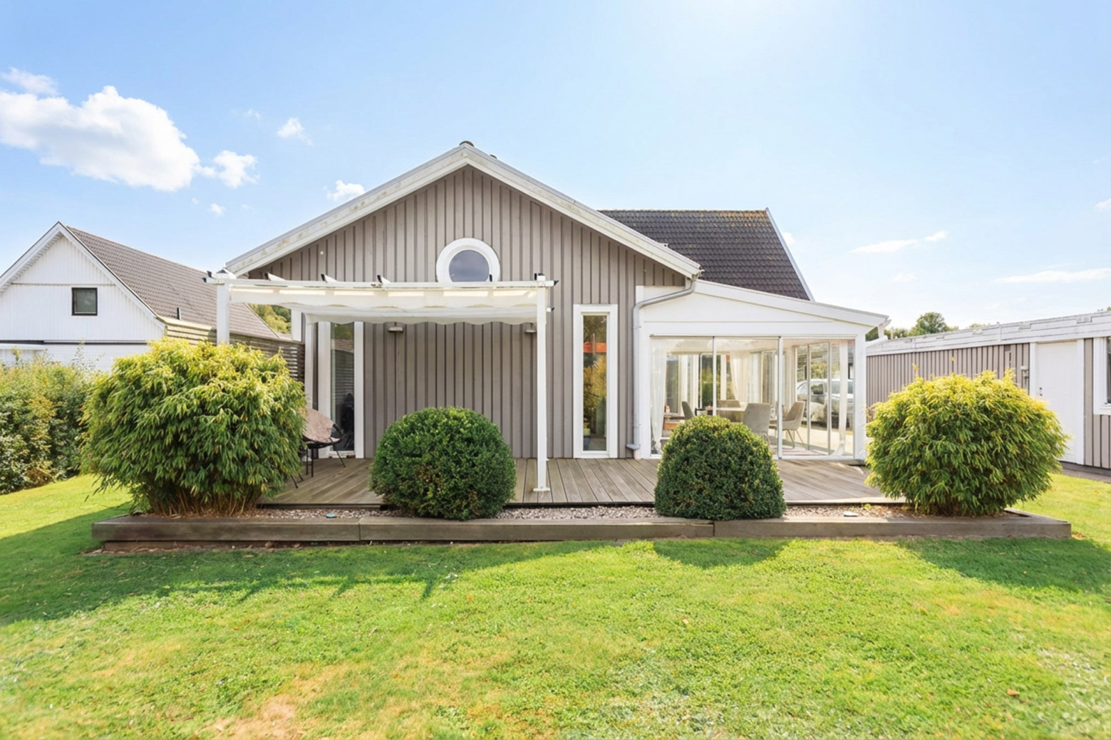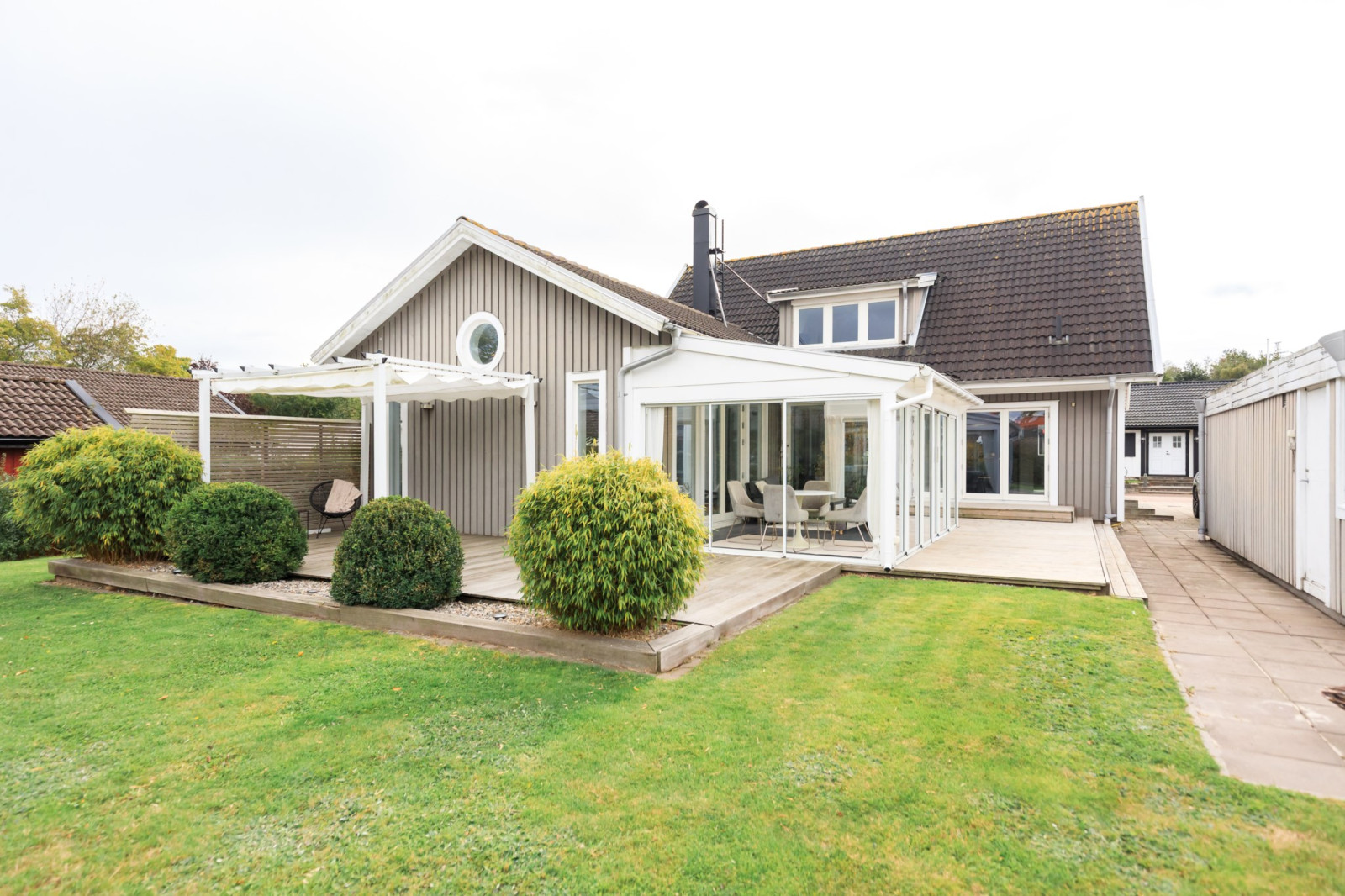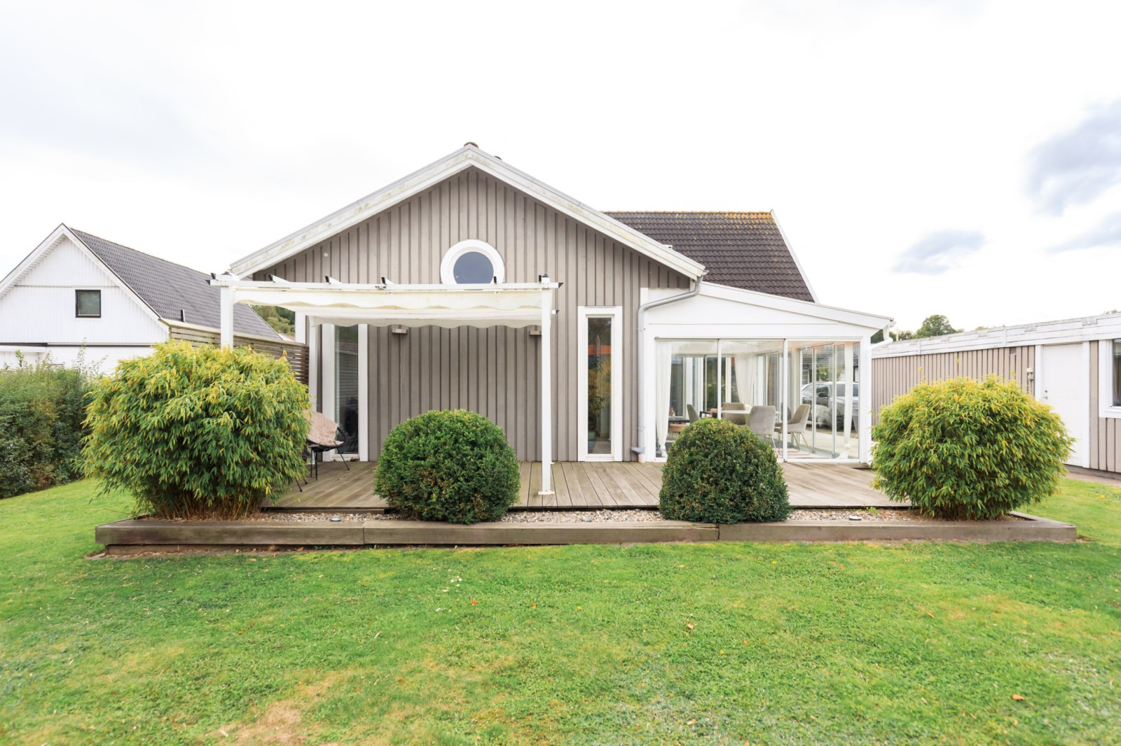 Det inglasade uterummet blir en naturlig förlängning av vardagsrummet – en plats att njuta av oavsett årstid. Här ryms både middagar och stilla stunder, omgiven av grönska och ljus. De generösa glaspartierna kan öppnas upp från alla håll, vilket suddar ut gränsen mellan ute och inne och skapar en luftig, trivsam atmosfär. Ett rum att leva i – från tidig vår till sen höst