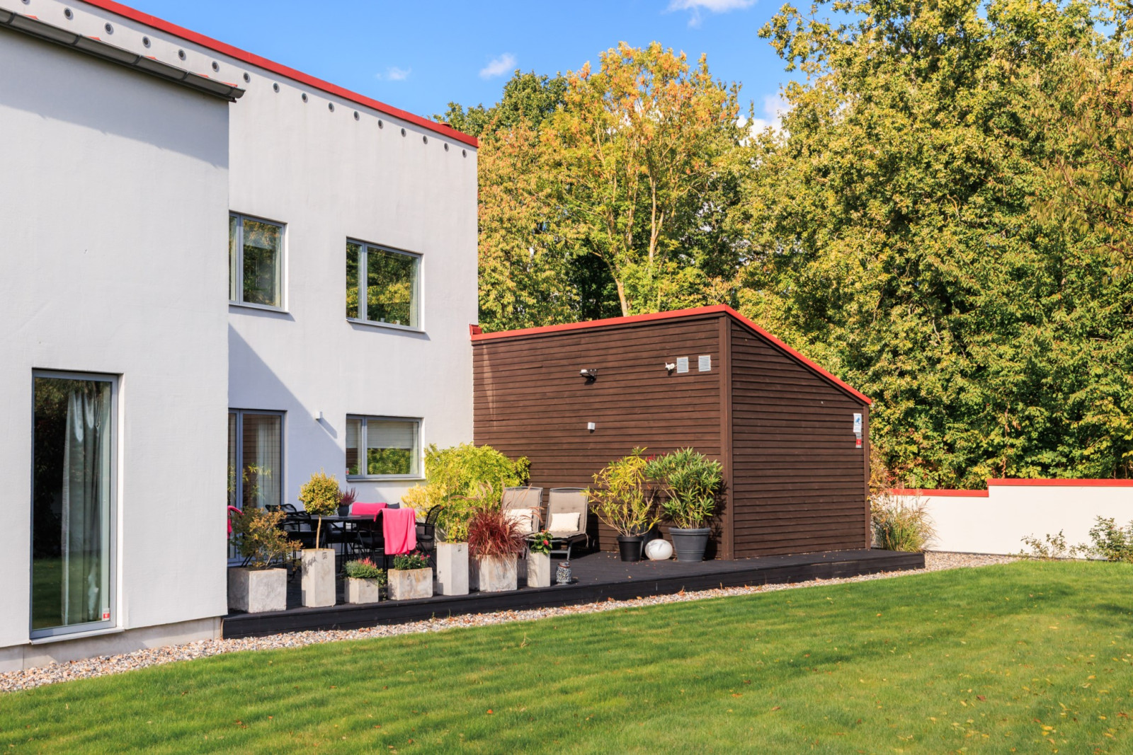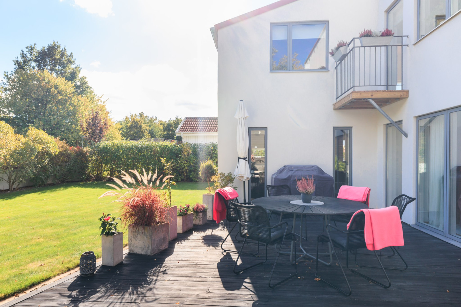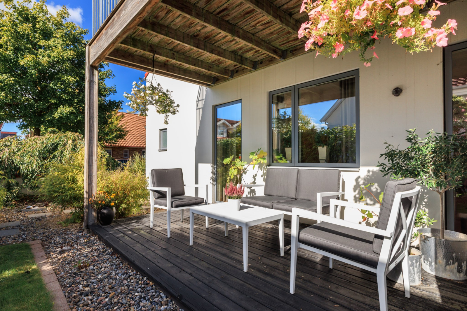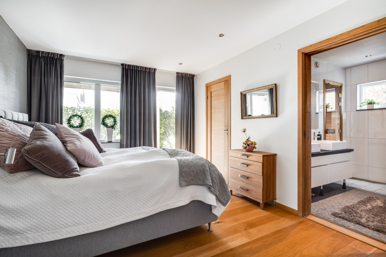 Ekparkettgolv. Infälld belysning i tak. Skjutdörrsgarderober. "Walk in closet". Ingång till eget badrum. Utgång till uteplats.