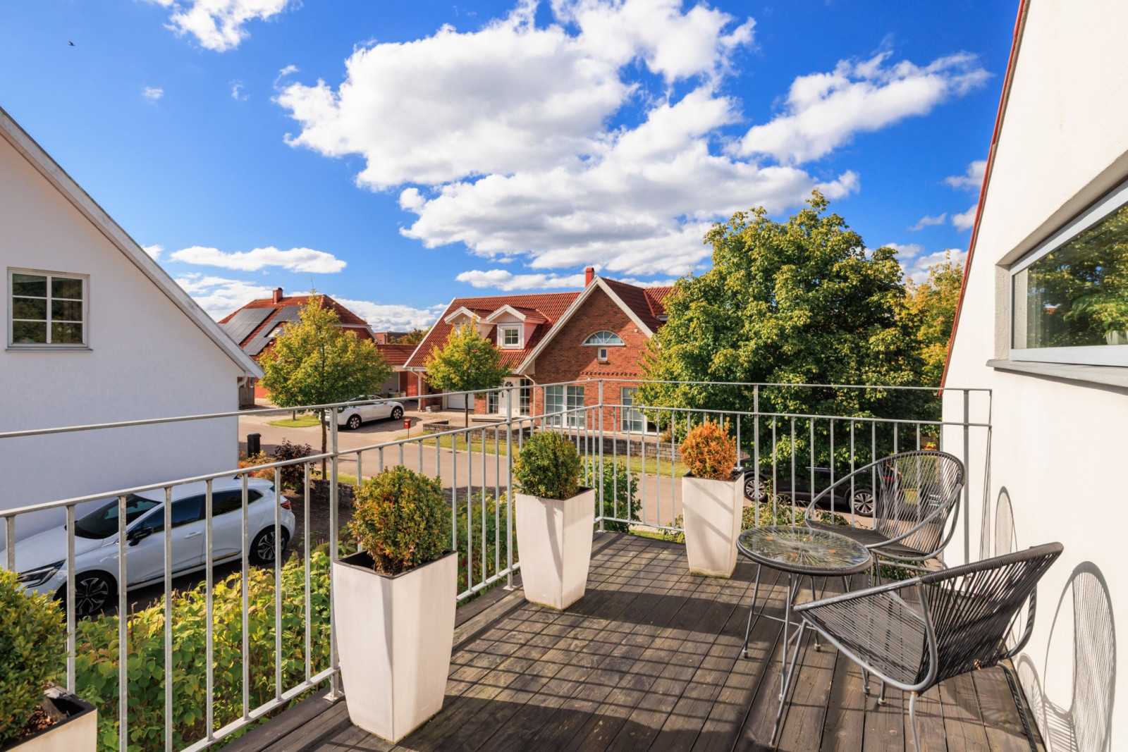 Ekparkettgolv. Utgång till balkong. Infälld belysning i tak.