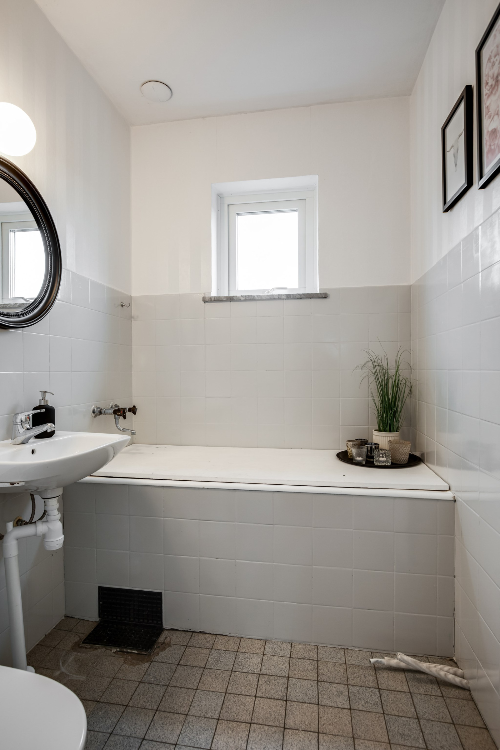 Klinker i stora rummet i källare.
