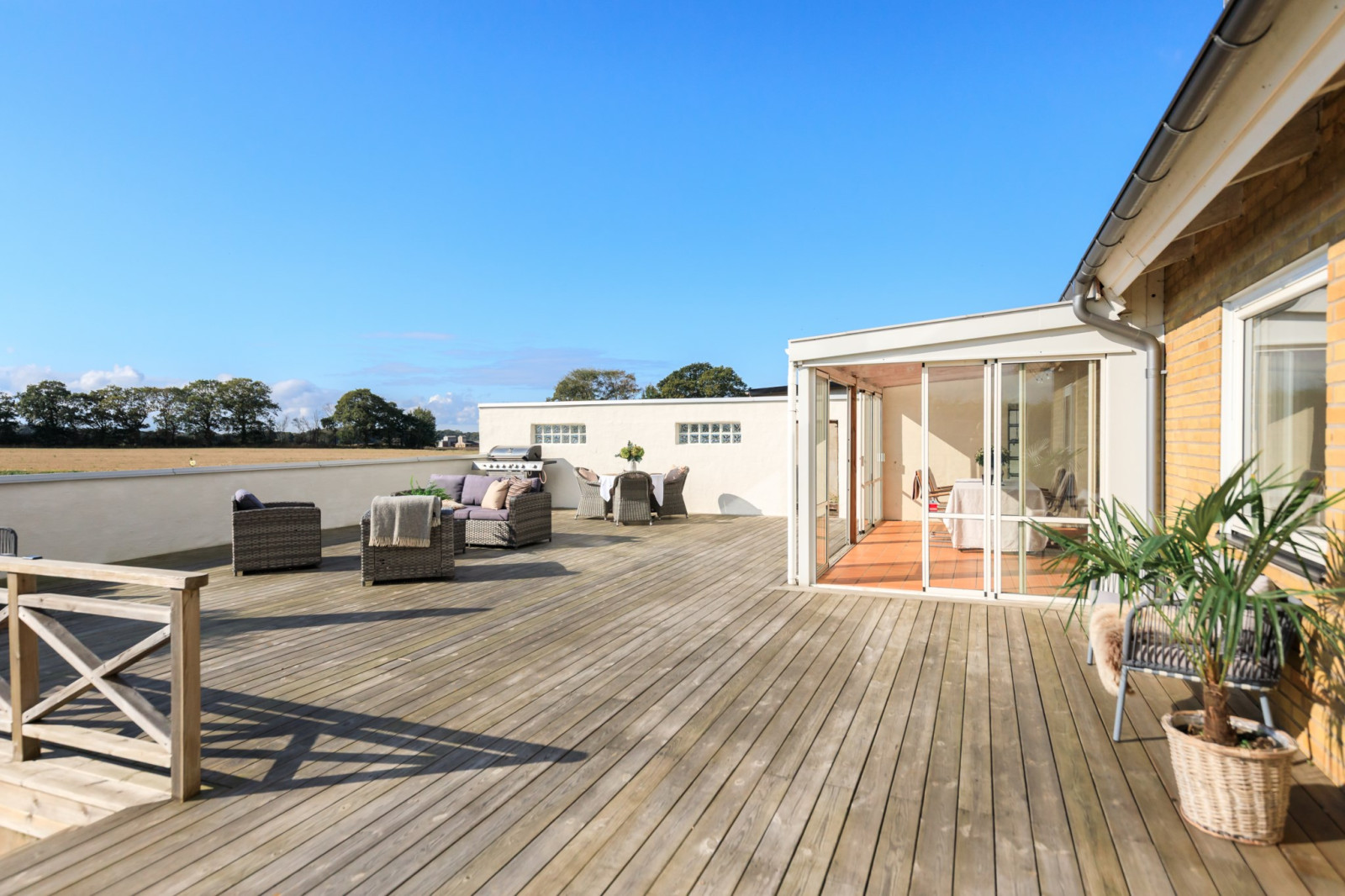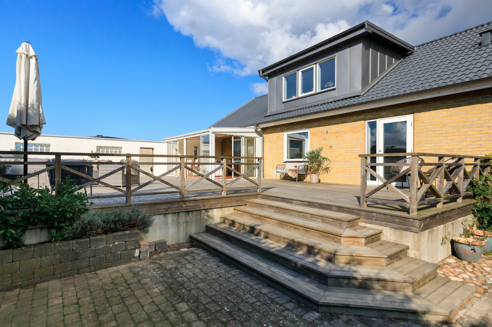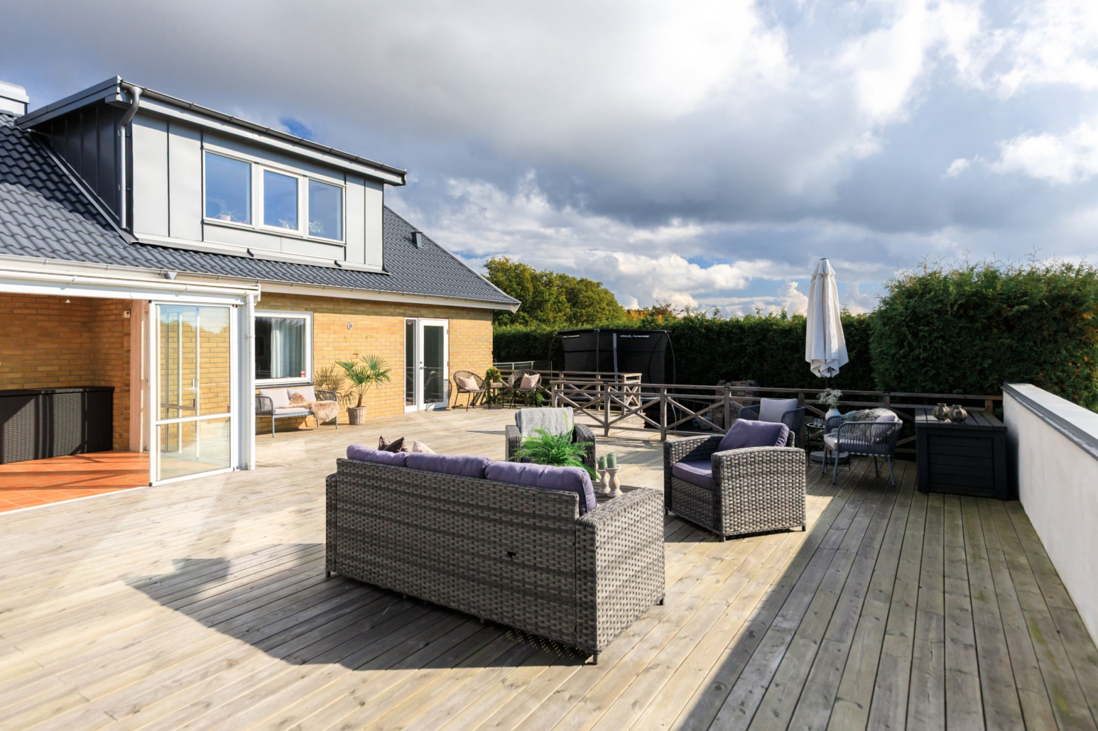 Terrassen är uppreglad och byggd över en tömd pool som ägarna bestämde sig för att inte nyttja mer.