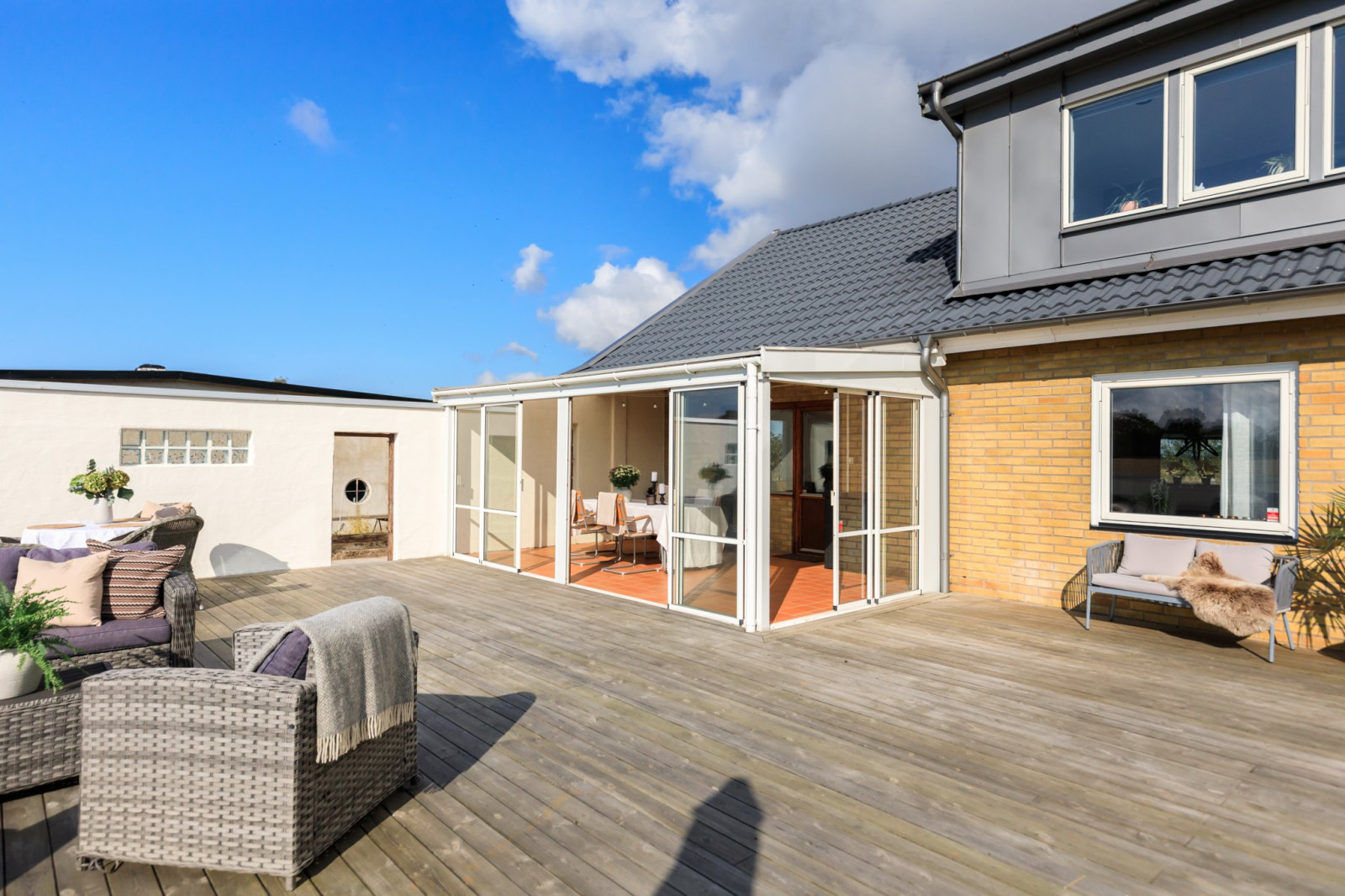 2023 - Nytt tak med papp, läkt, tegelpannor och plåtarbete. Nytt tak på uterum samt ny plåt utvändigt.