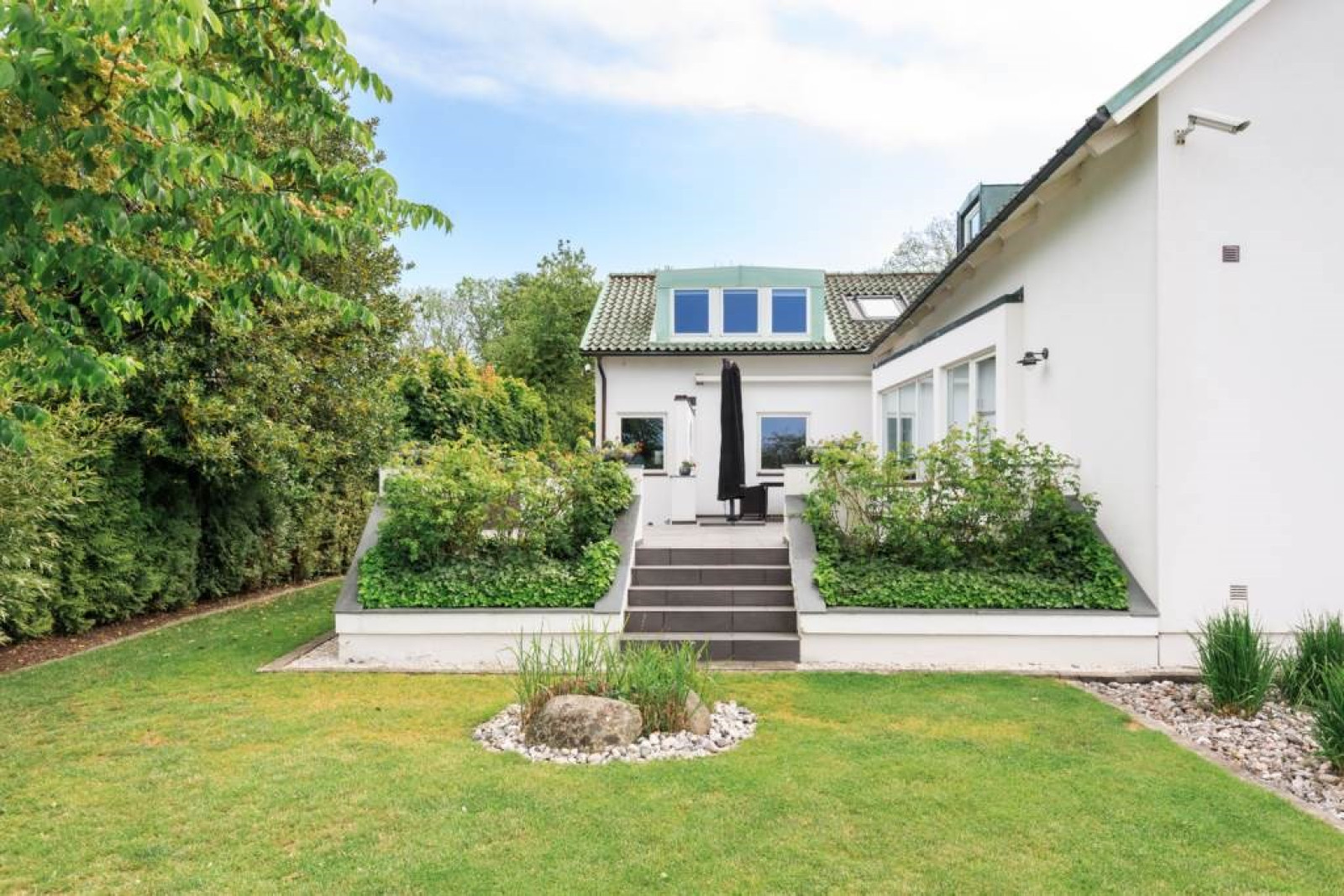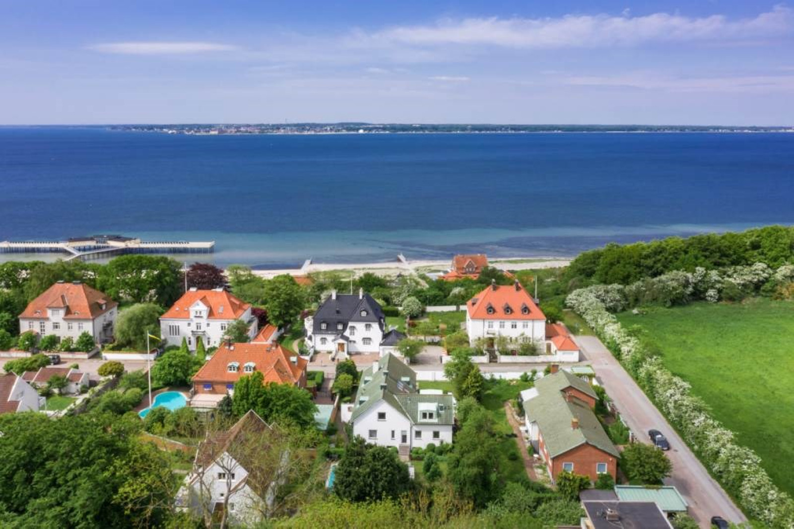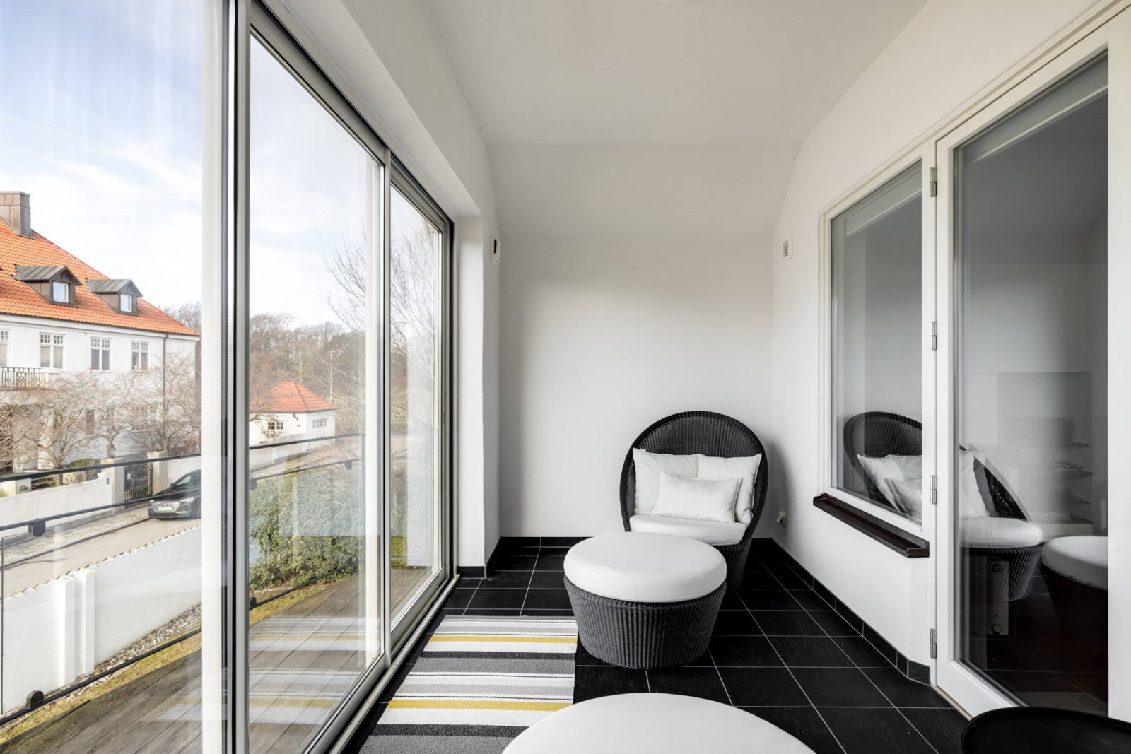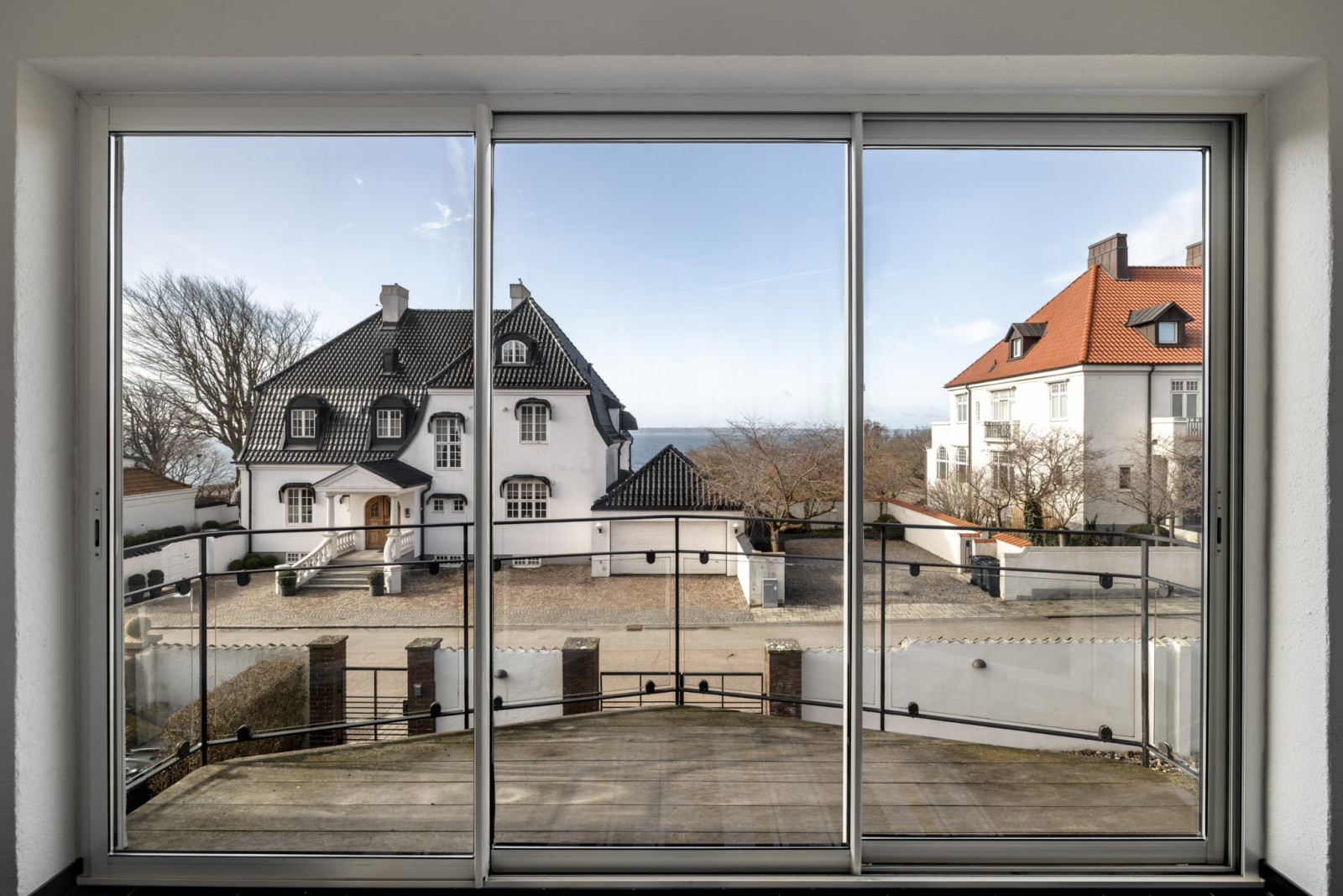 ALLRUM/BIORUM med fiskbensparkett och utgång till inglasad balkong med klinker och isolerglas. Fin sundsutsikt. Kabelsystem för ljudanläggning/projektor/duk.