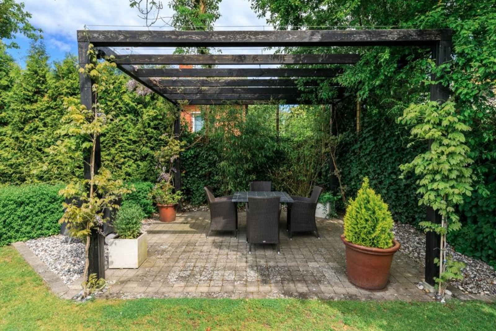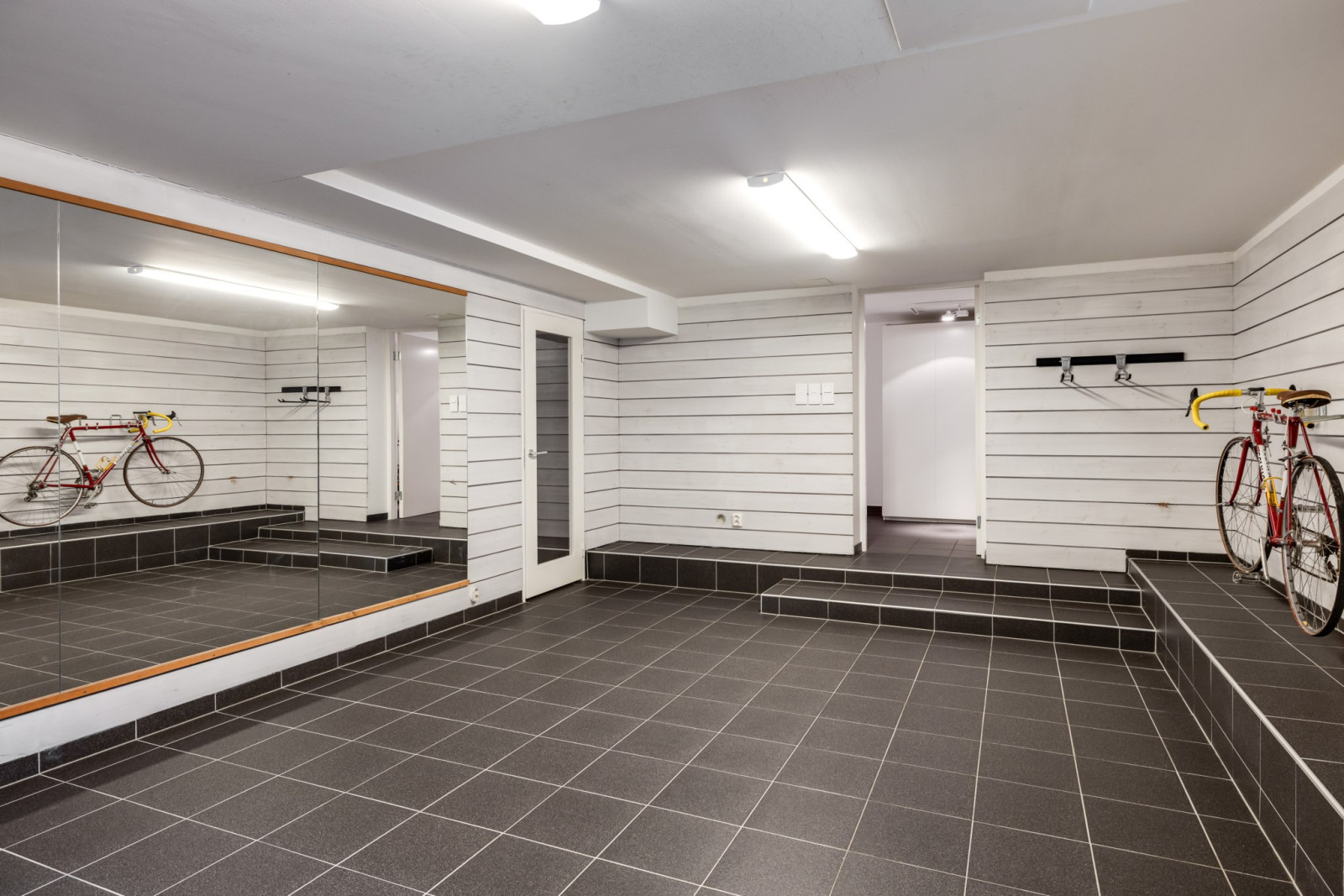 HOBBY/TRÄNINGS RUM med klinker och utgång till trädgård.