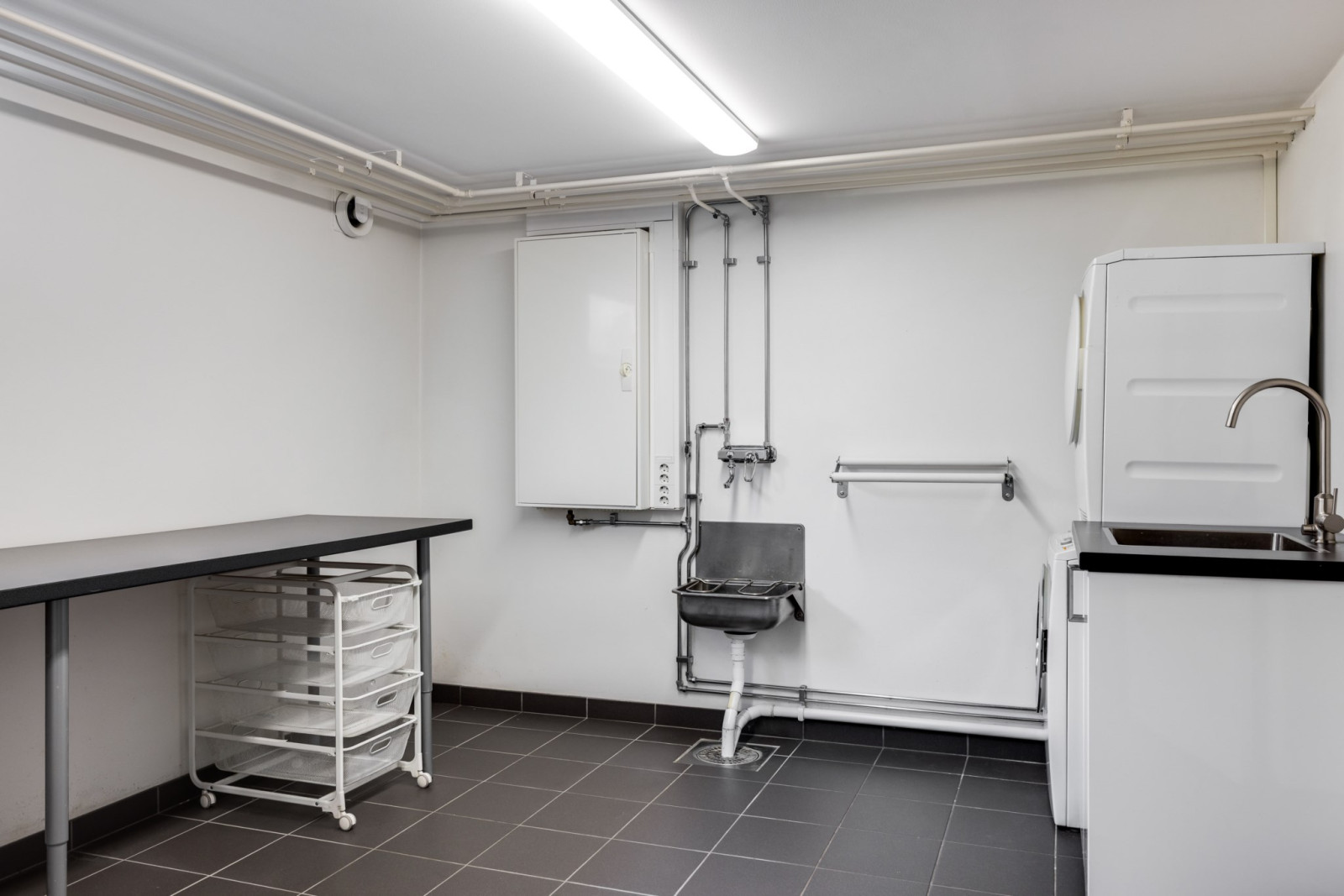 FÖRRÅD med klinkergolv och fjärrvärmeväxlare.