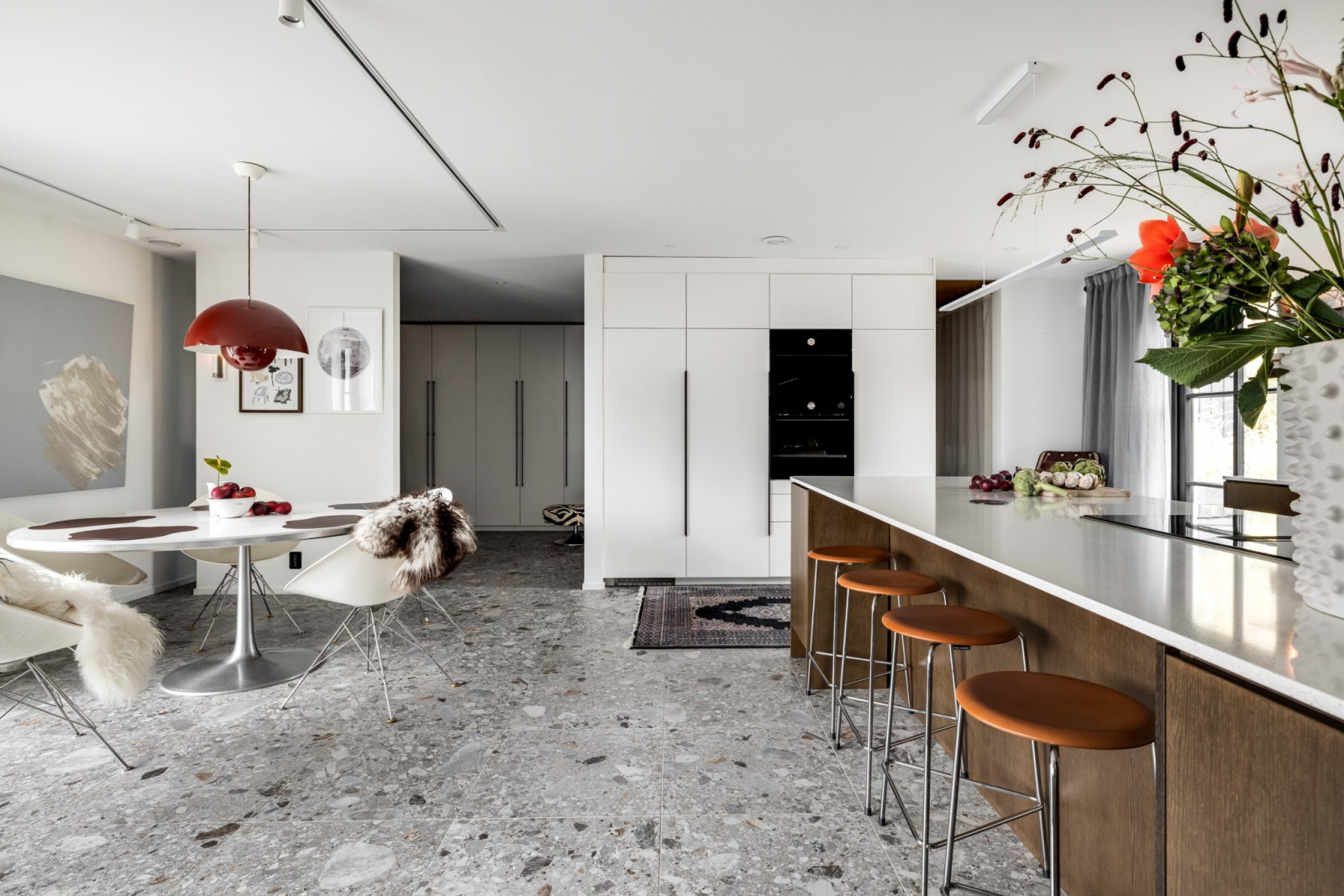 • Nytt kök från Marbodal med kyl, frys, ugn och kombiugn från IKEA samt diskmaskin från Siemens och spishäll med inbyggd fläkt från Neff.