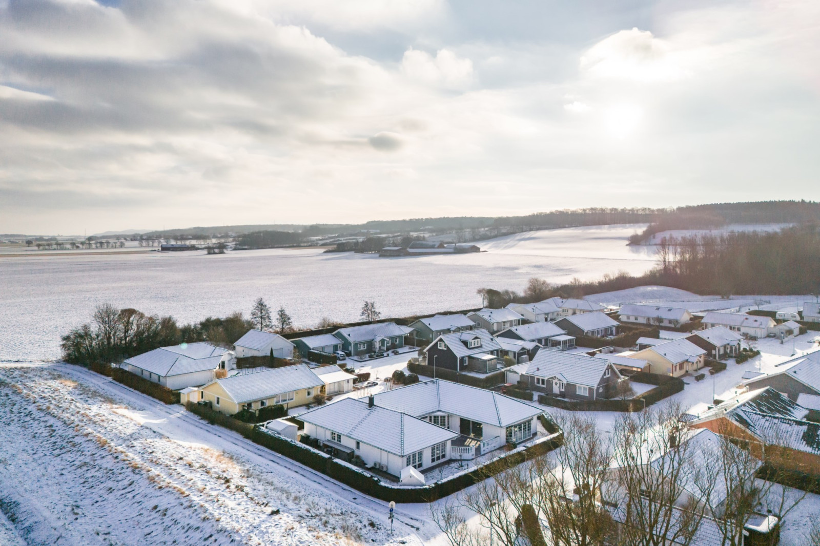 Direkt innanför ytterdörren ligger ett välplanerat sovrum med smidig access till ett av husets badrum – perfekt för gäster eller som ett extra sovrum. Här finns dessutom en skjutdörrsgarderob som ger gott om förvaring och håller rummet både stilrent och funktionellt.