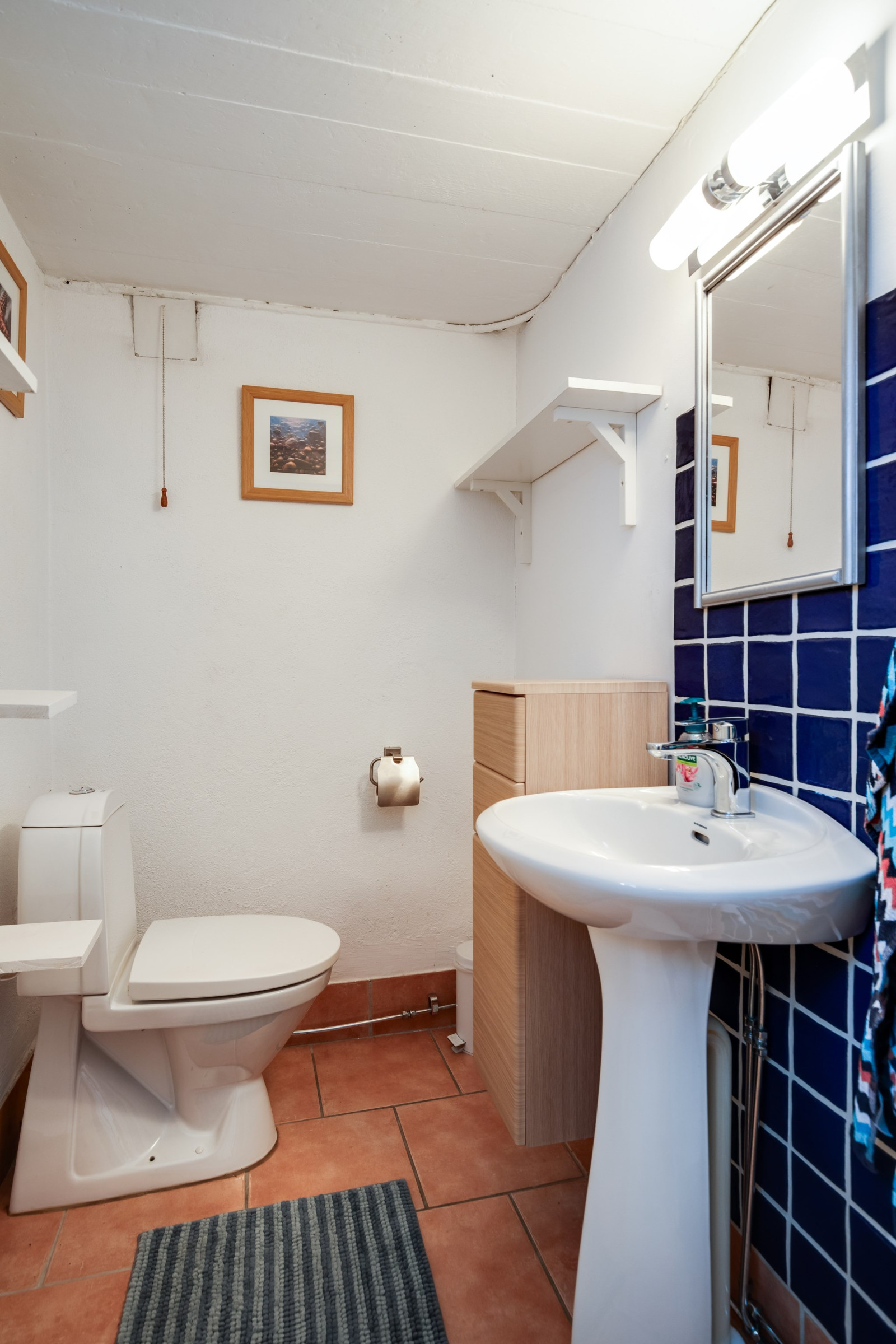 Praktisk och funktionell WC i källaren som kompletterar husets övriga badrum och tvättutrymmen. Enkel åtkomst och bra placering för vardagens behov.